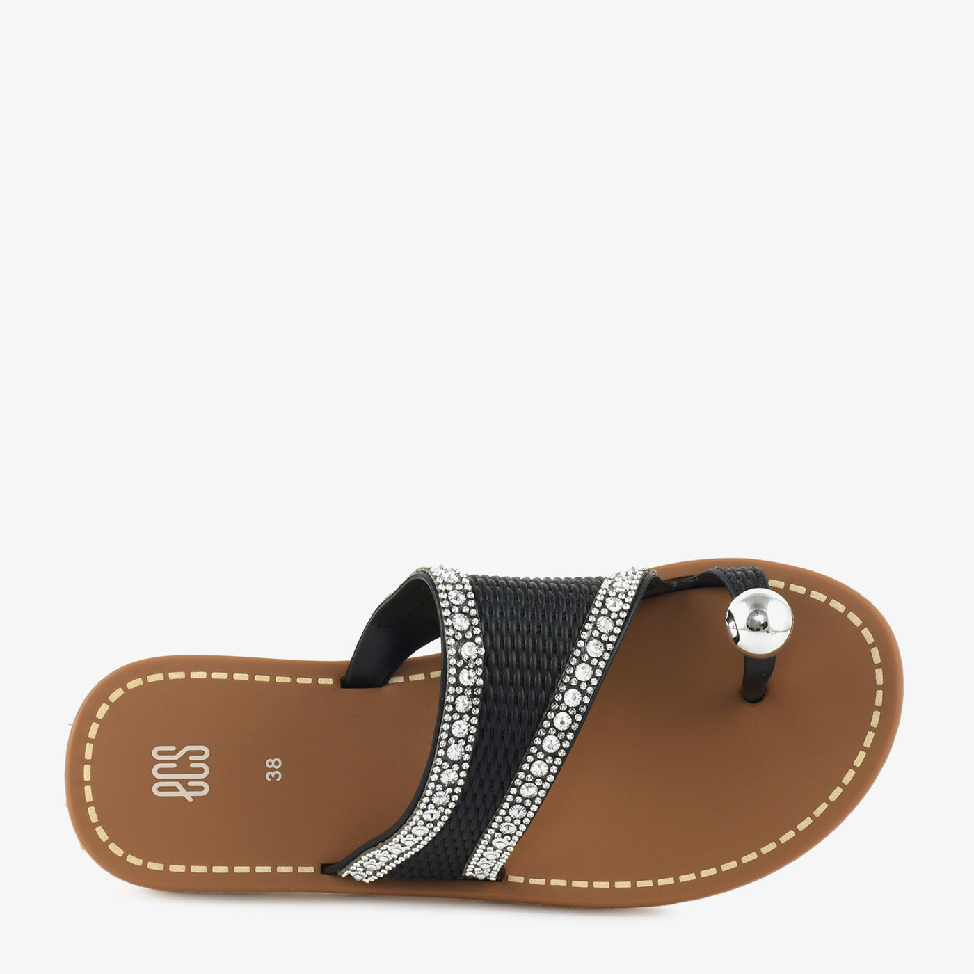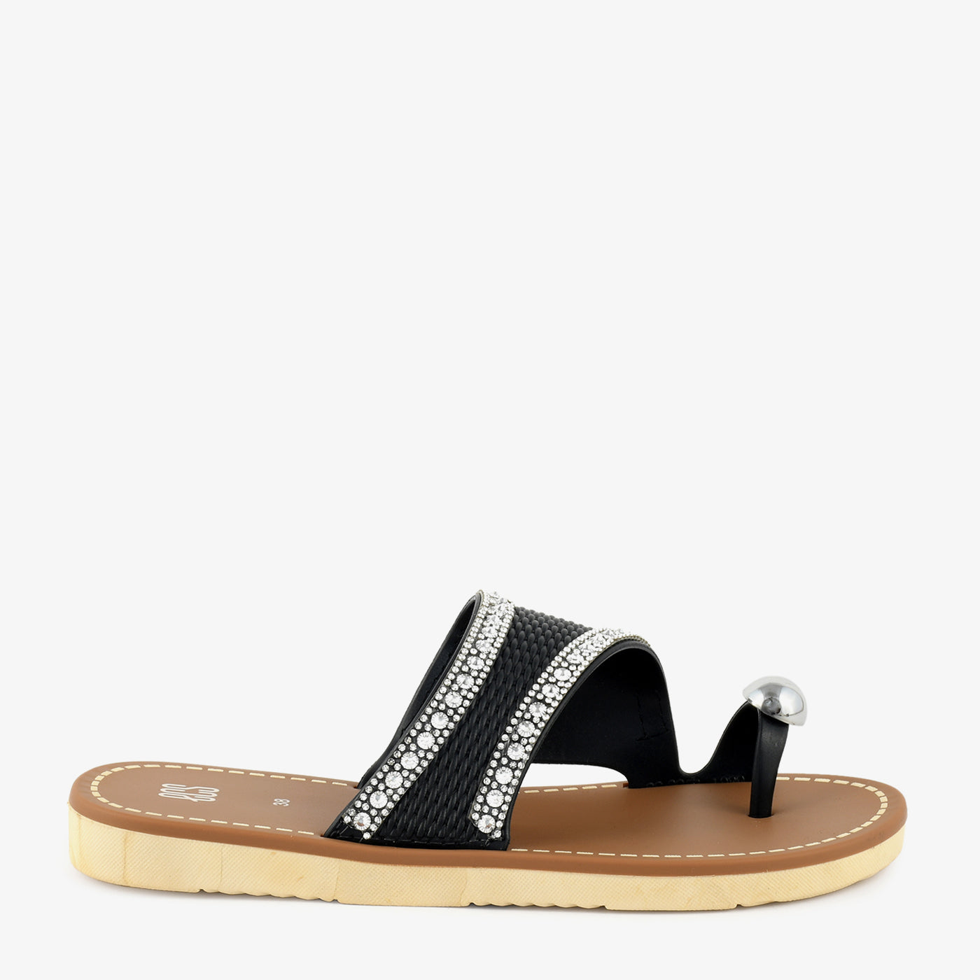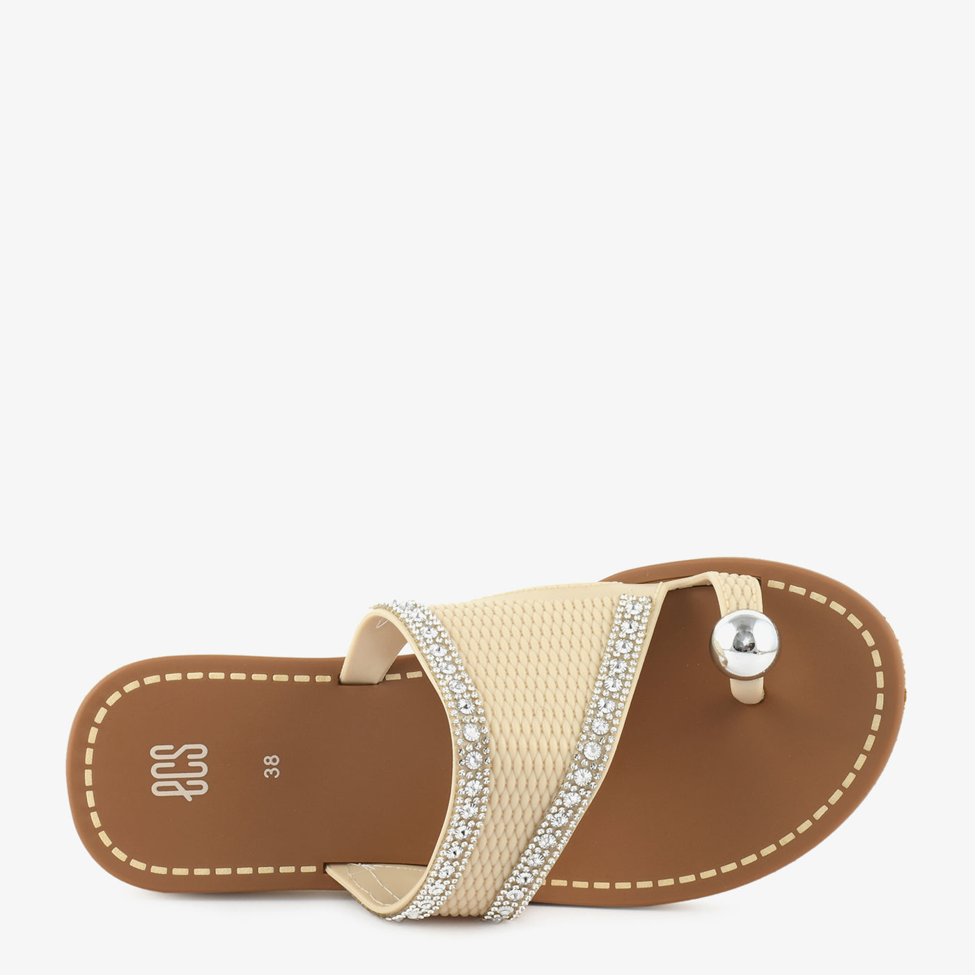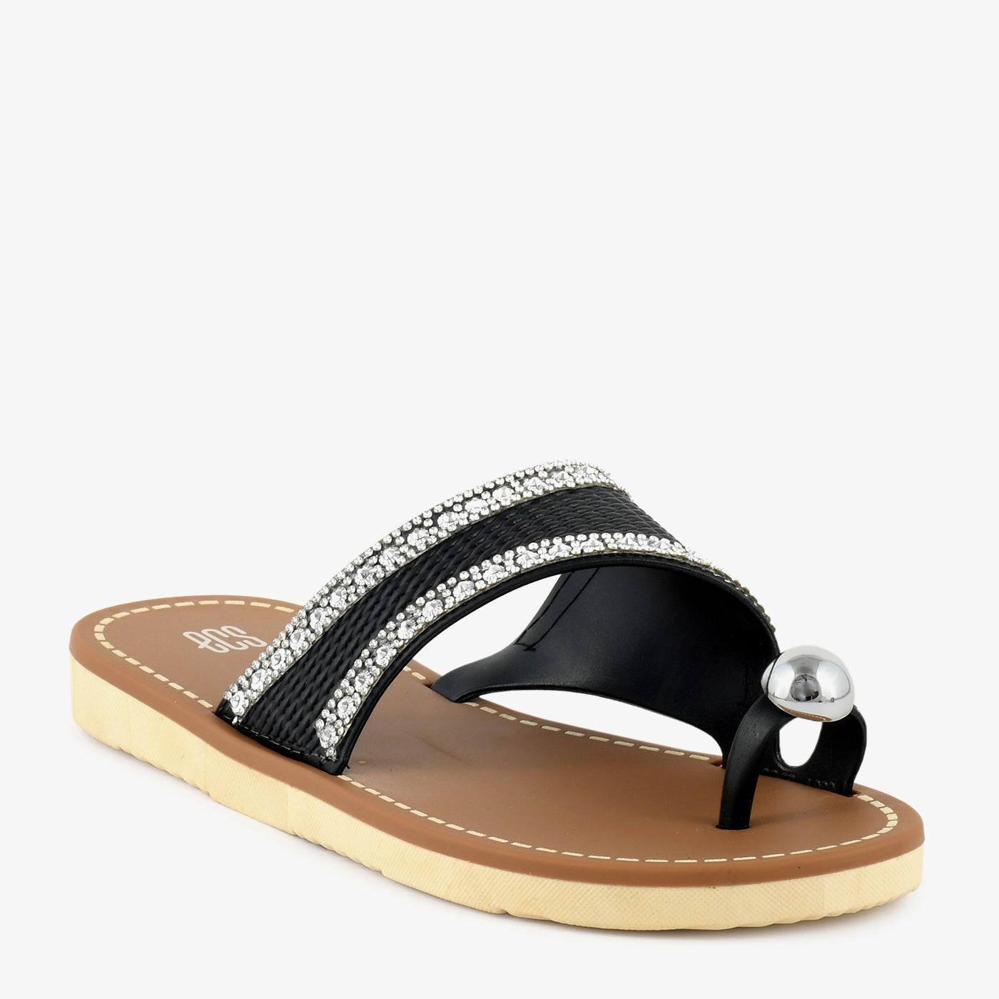 This elegant women’s chappal is designed to add subtle shine and everyday comfort to your footwear collection. Featuring a broad textured strap highlighted with delicate stone detailing and a stylish toe loop accent, it brings a refined yet modern appeal. The cushioned footbed supports relaxed movement, while the flat sole ensures easy all day wear. Lightweight and slip on in design, this chappal is ideal for daily outings as well as casual festive moments.