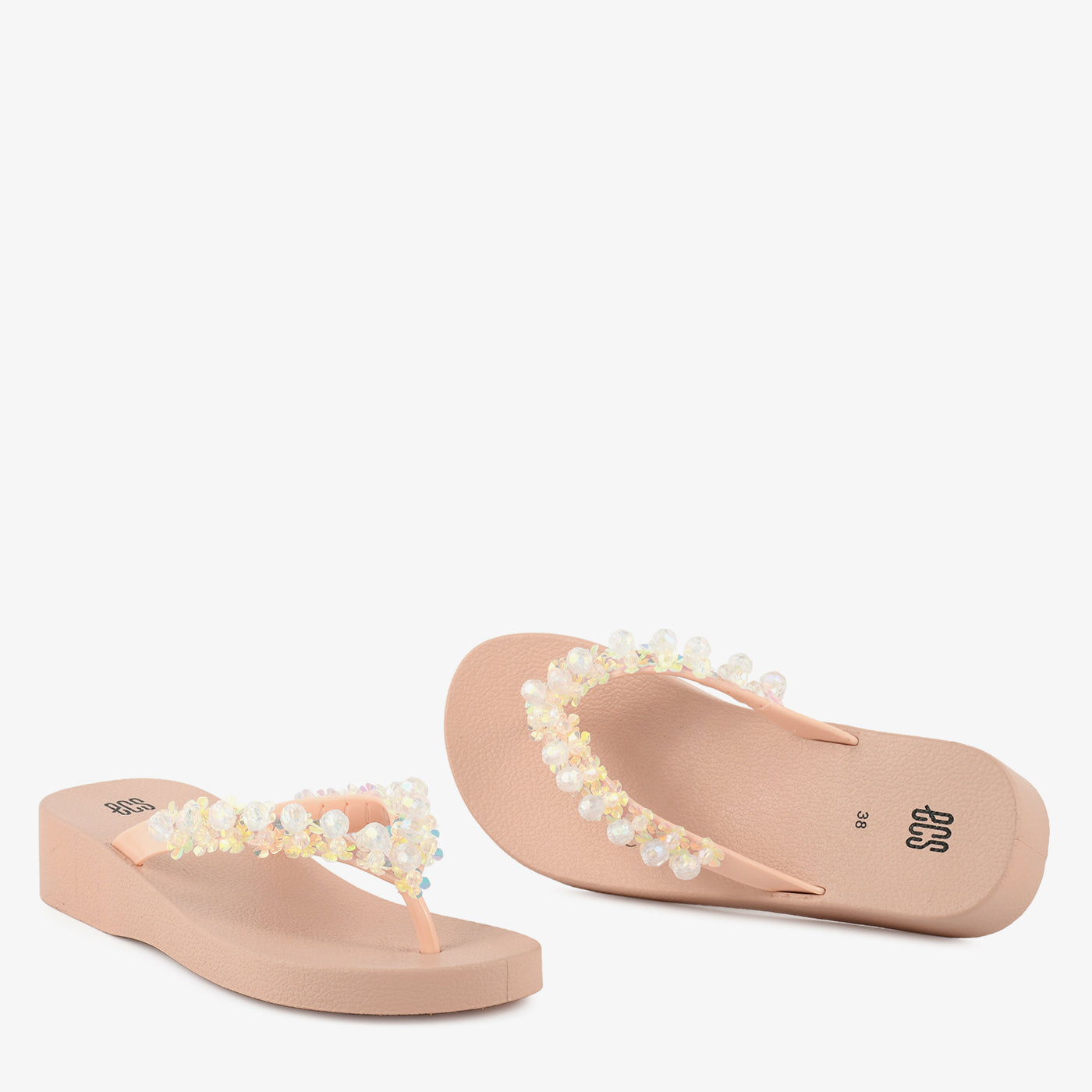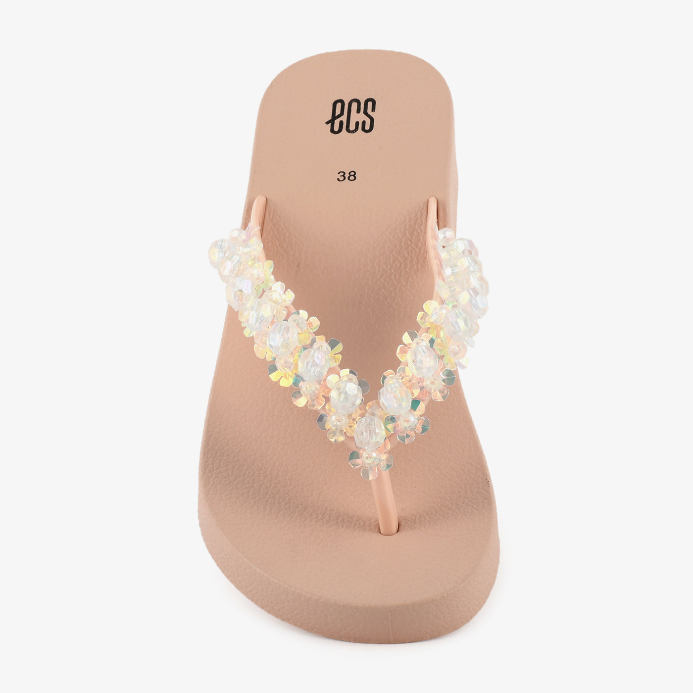- Design: Toe loop chappal with embellished strap and wedge style sole