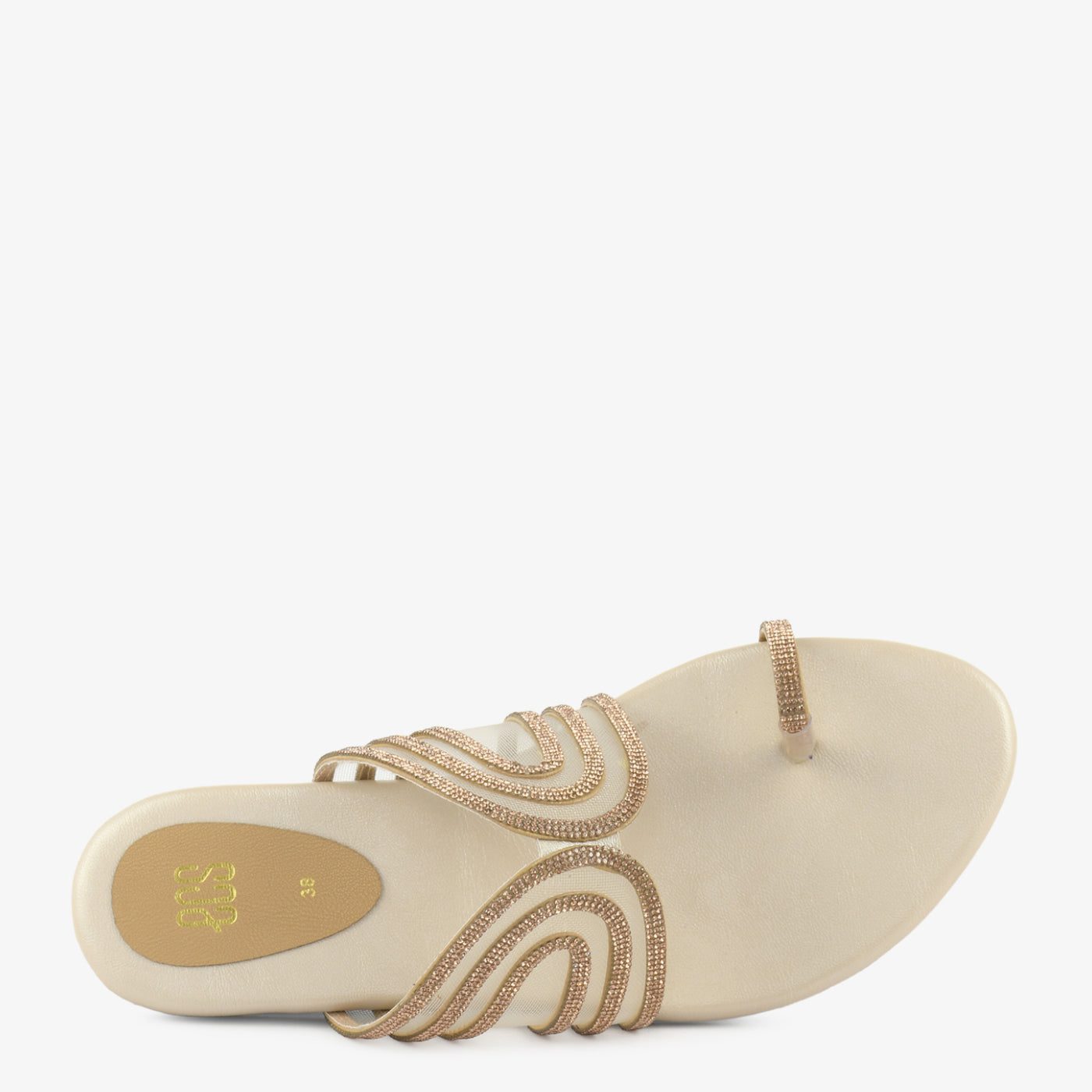 This elegant chappal is crafted with a comfortable flat sole that ensures ease throughout the day while maintaining a refined appearance. The open-toe structure allows breathability and effortless movement. Delicate crystal detailing on the straps adds a graceful shimmer without overwhelming the design. A well-balanced footbed offers reliable support for extended wear. Designed for both comfort and style, it blends traditional charm with modern simplicity. Ideal for festive mornings and semi-formal occasions.