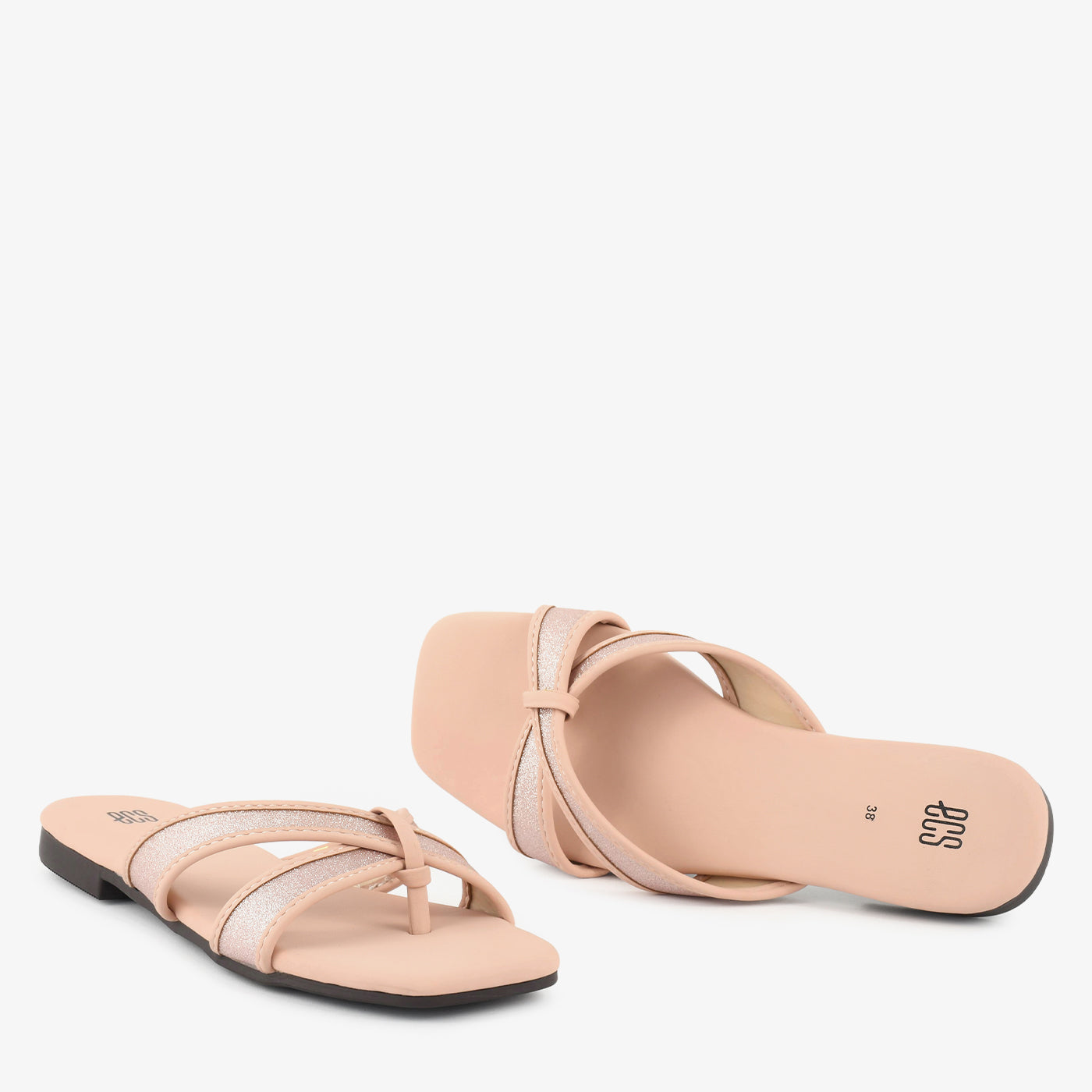 This stylish women’s chappal blends everyday comfort with a touch of subtle sparkle. Designed for relaxed wear throughout the day, it offers a smooth inner base that supports easy movement. The elegant multi-strap thong design is highlighted with a gentle shimmer detail, adding a refined and modern appeal. Lightweight and easy to slip on, this chappal is perfect for daily use while still looking effortlessly chic.