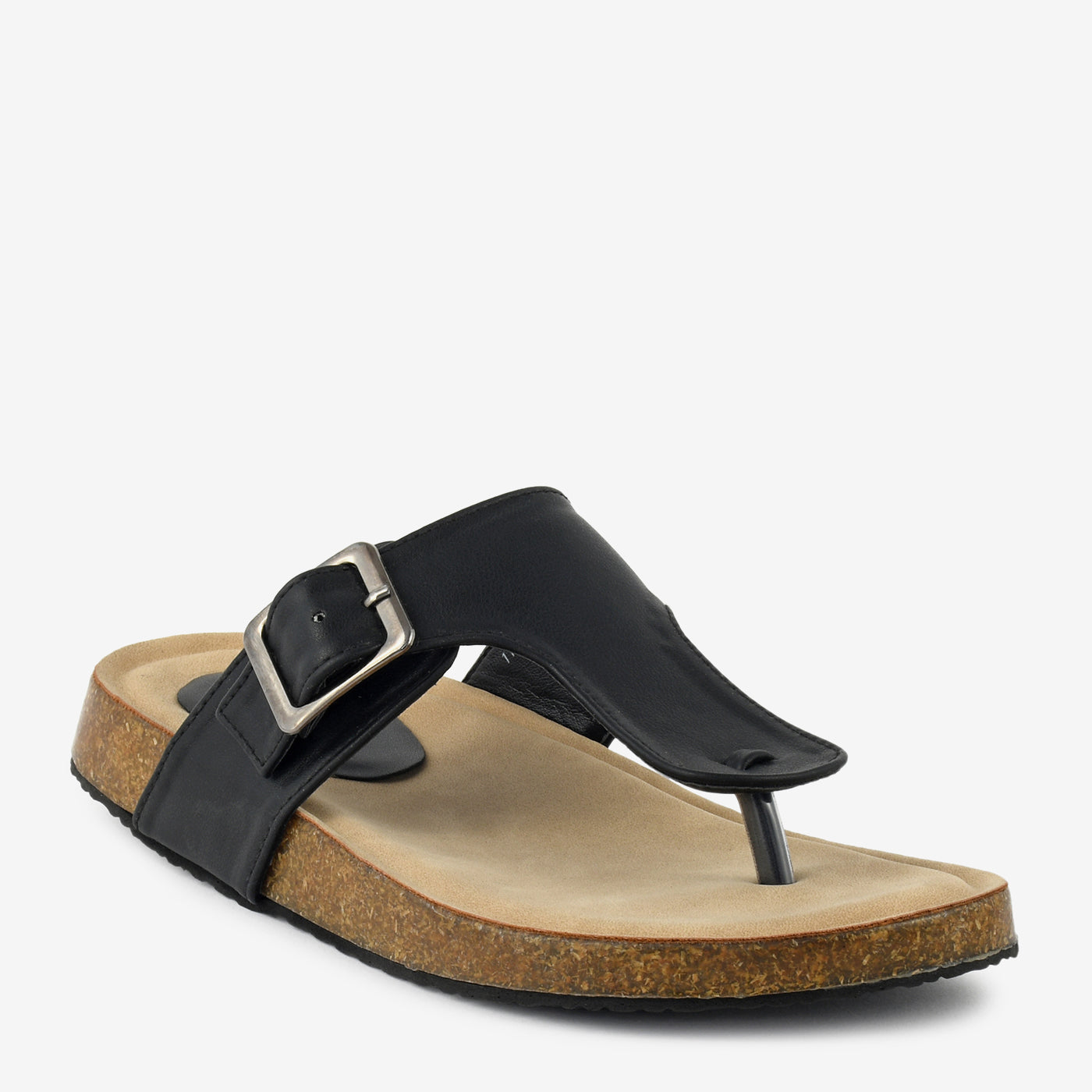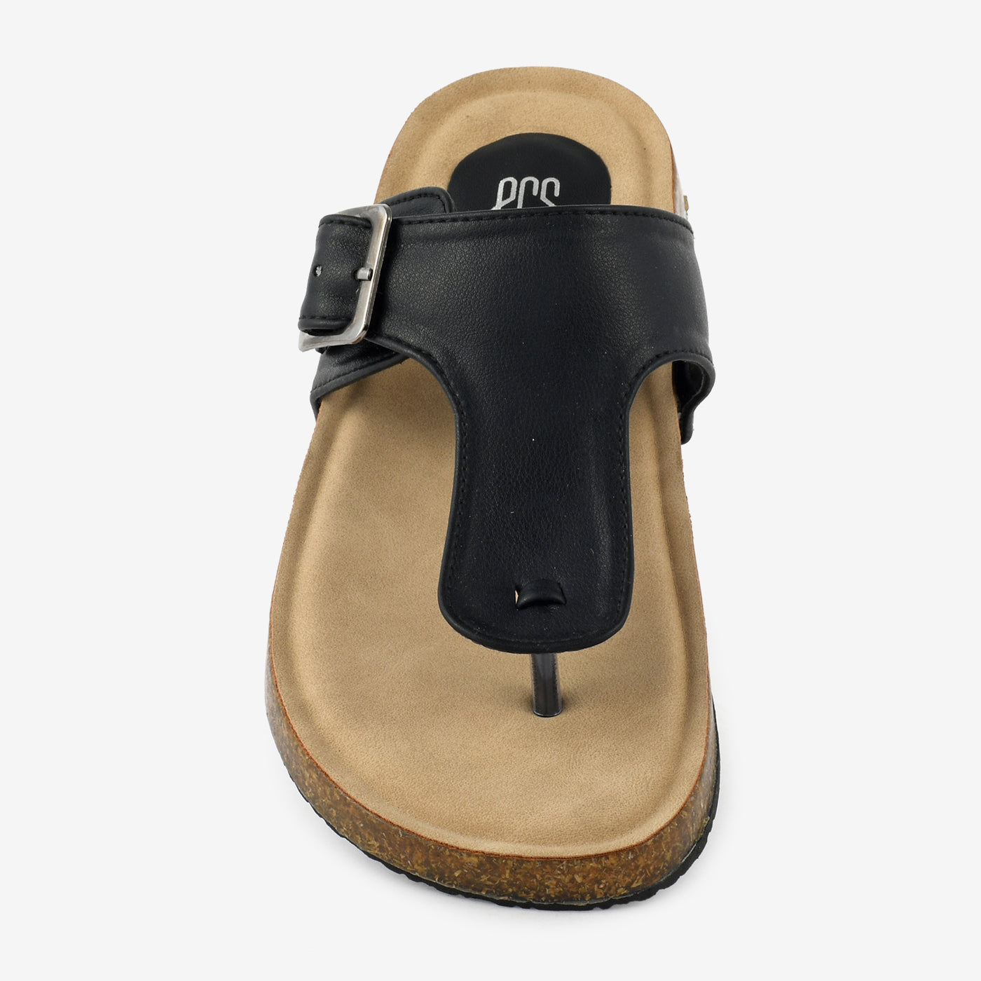Flat chappal with a wide strap featuring an oversized buckle detail for a contemporary look. The toe-post design provides a secure fit for all-day wear and casual activities. Crafted with a contoured footbed that ensures comfort throughout extended periods. The textured cork-effect sole offers durability and ease of movement. Perfect for relaxed settings that call for both comfort and a polished aesthetic. A versatile addition that pairs well with casual separates and everyday ensembles.