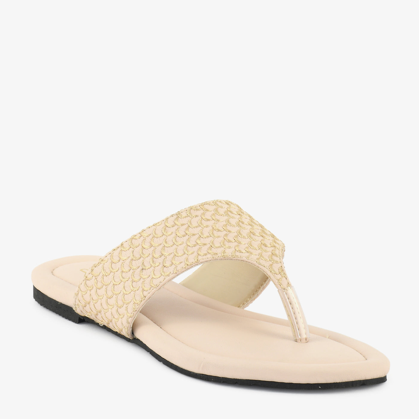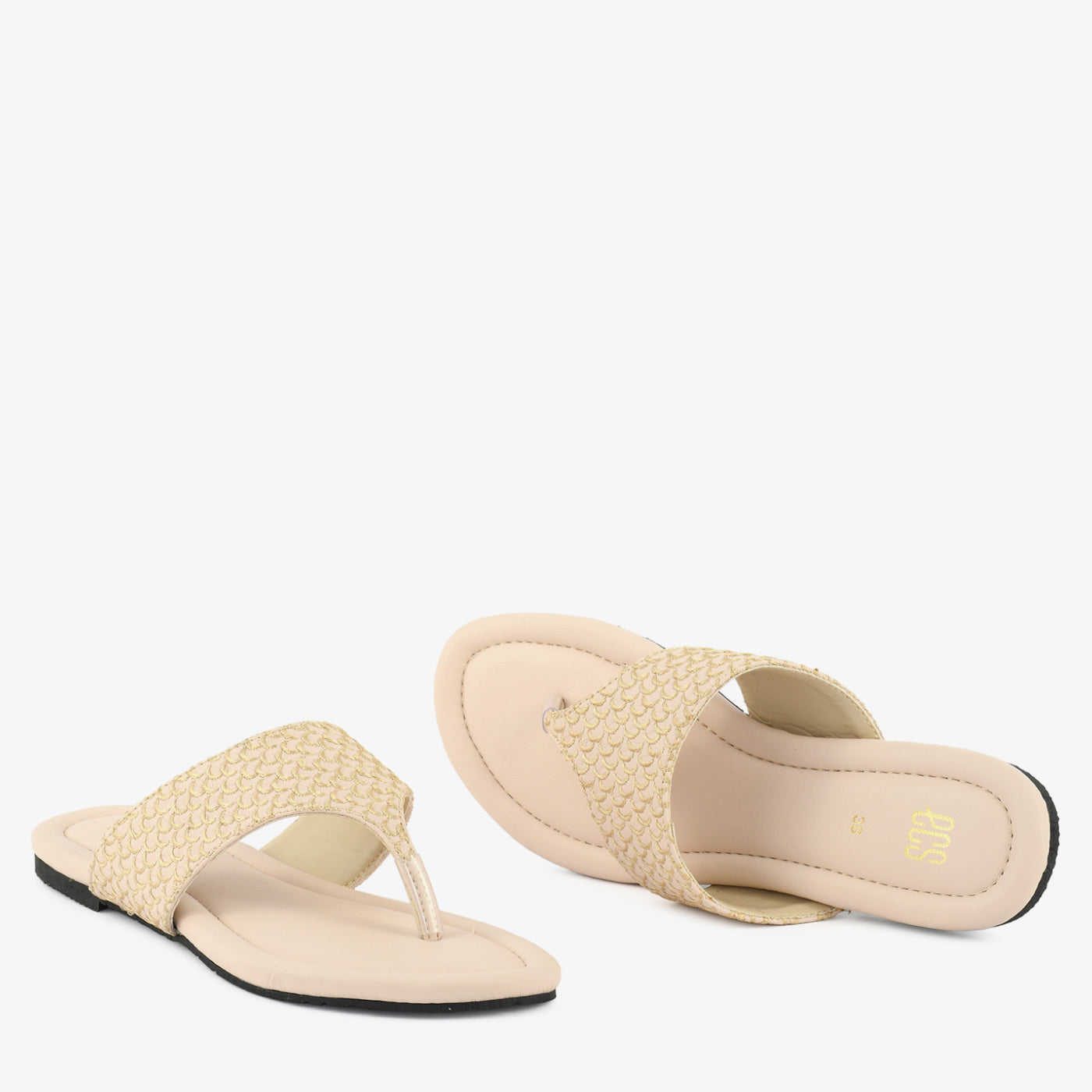 This stylish flat chappal features a teXtured patterned strap that adds a unique and graceful touch to your everyday look. Designed with a soft and cushioned footbed, it provides reliable comfort for long hours of wear. The lightweight structure ensures easy movement, while the slip-on toe-post design offers quick and convenient wear. Neatly finished edges enhance durability and maintain a clean appearance. Suitable for daily use, casual outings, and relaXed gatherings, this chappal blends comfort with modern simplicity.
