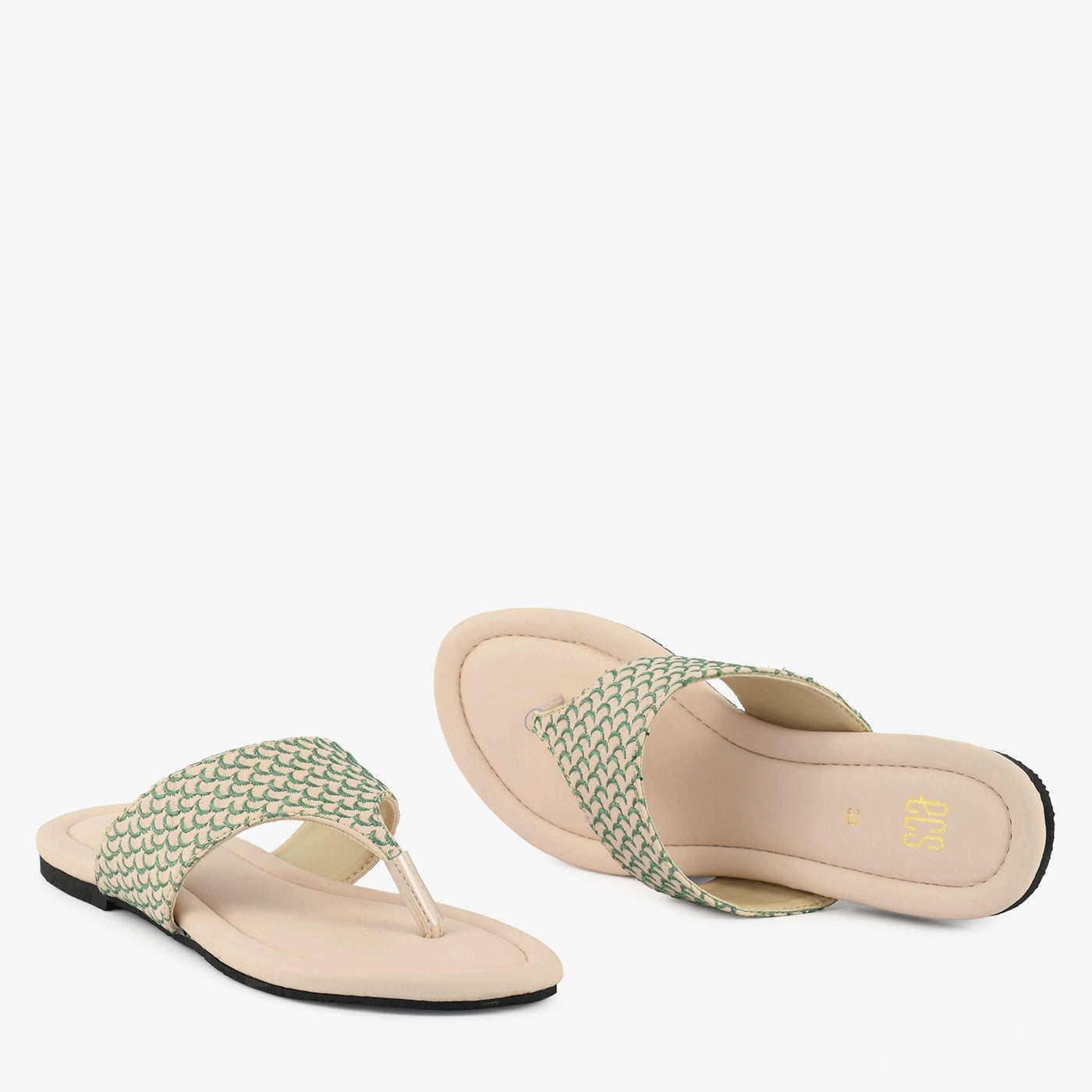 This stylish flat chappal features a teXtured patterned strap that adds a unique and graceful touch to your everyday look. Designed with a soft and cushioned footbed, it provides reliable...