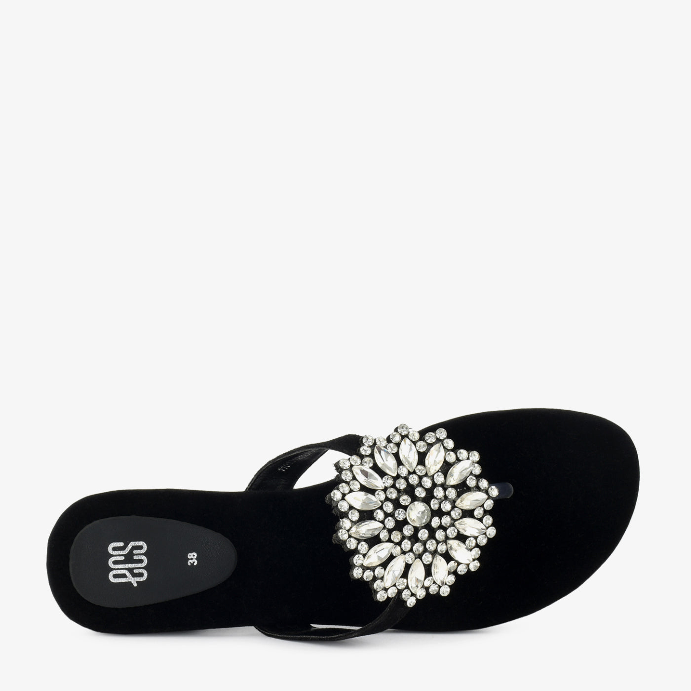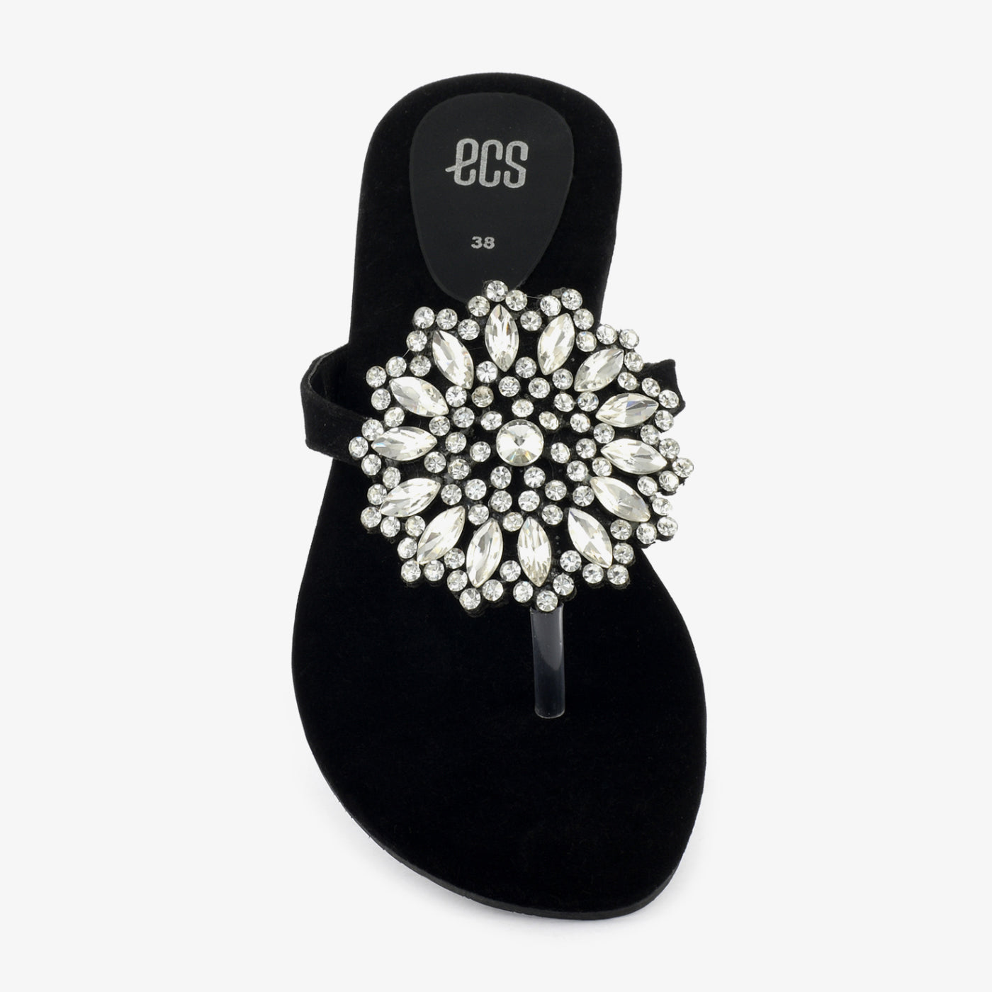 Add a touch of dazzling glamour to your look with the "Diamond Bloom" Toe-Post Chappal. This elegant chappal features a striking floral embellishment adorned with sparkling crystals, creating a look that's both eye-catching and sophisticated. The comfortable low heel provides subtle lift and all-day wearability, making it perfect for adding a touch of sparkle to any occasion.