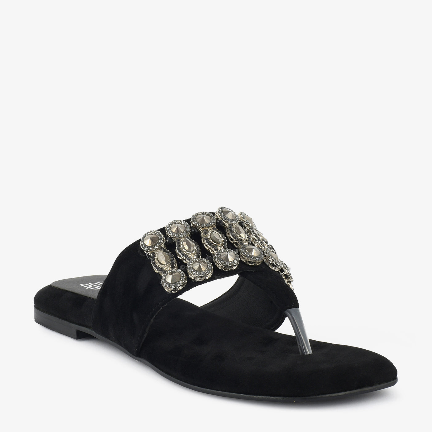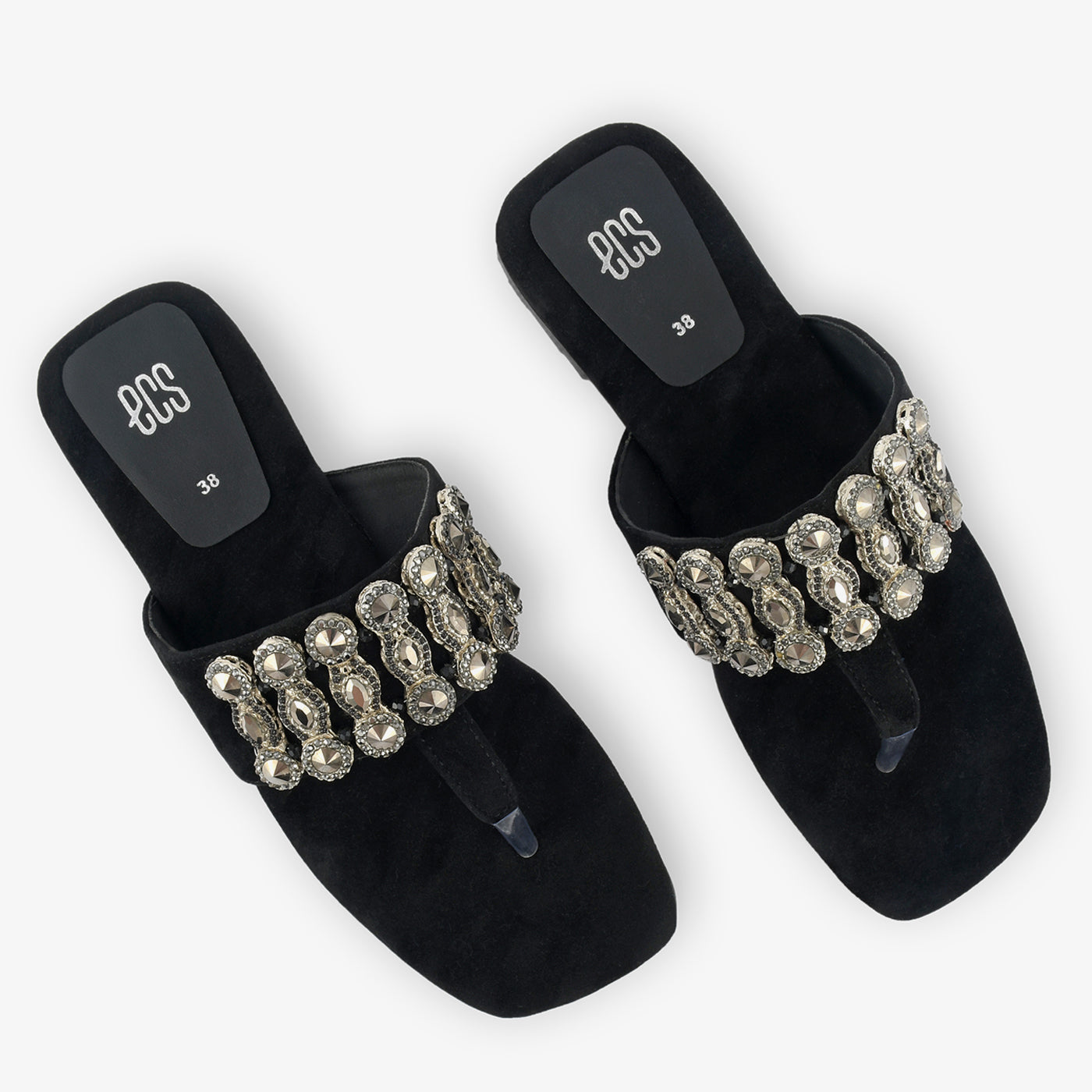 Step into understated luxury with these chic black chappals. The shimmering embellishments across the strap add a touch of subtle glamour, making them versatile for both casual and semi-formal occasions.