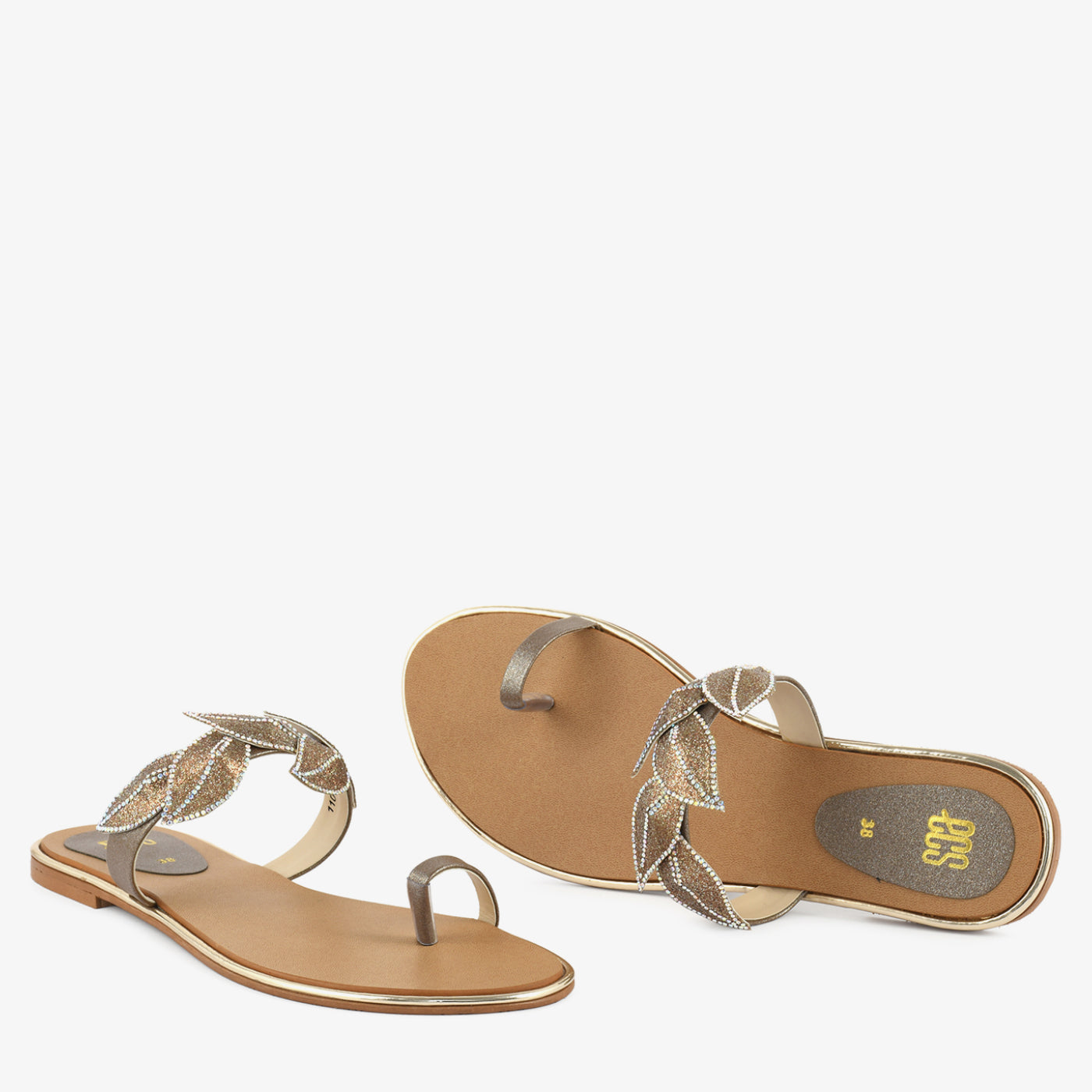 • Design: Toe loop chappal with embellished leaf strap