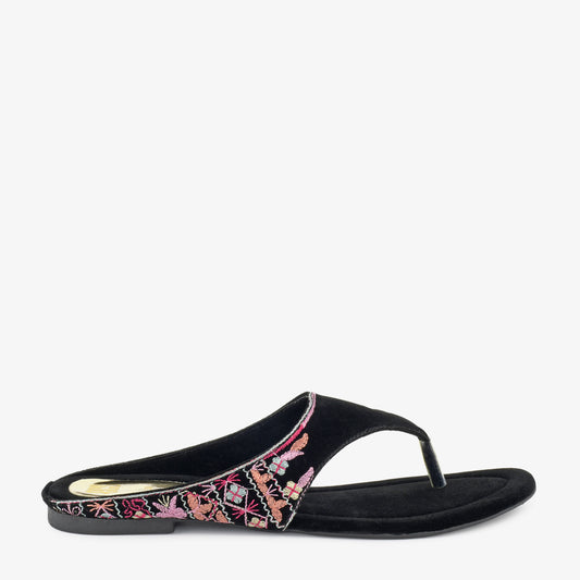 Step into the spotlight with the "Midnight Sparkle" chappal. Featuring a glittery synthetic PU upper and exquisite embellishments, this chappal is perfect for any evening or party event. The slip-on...