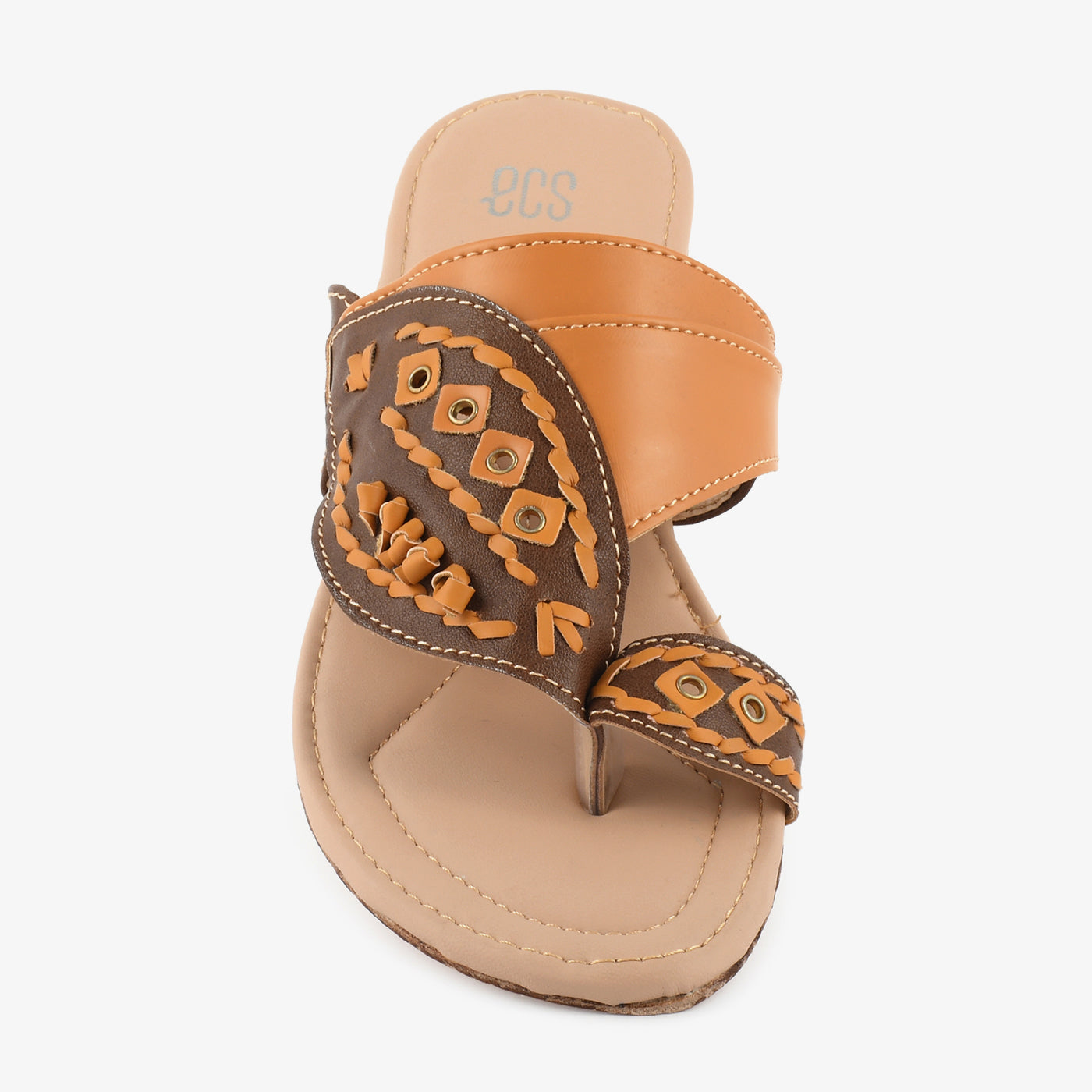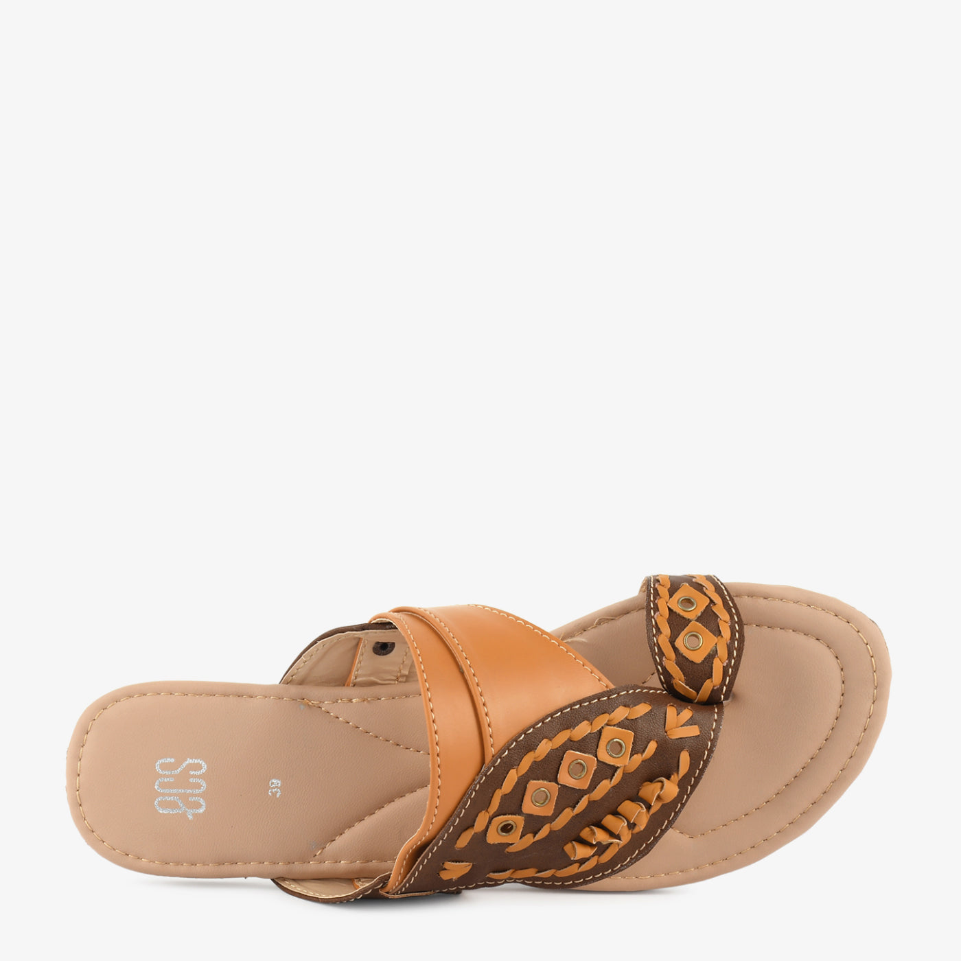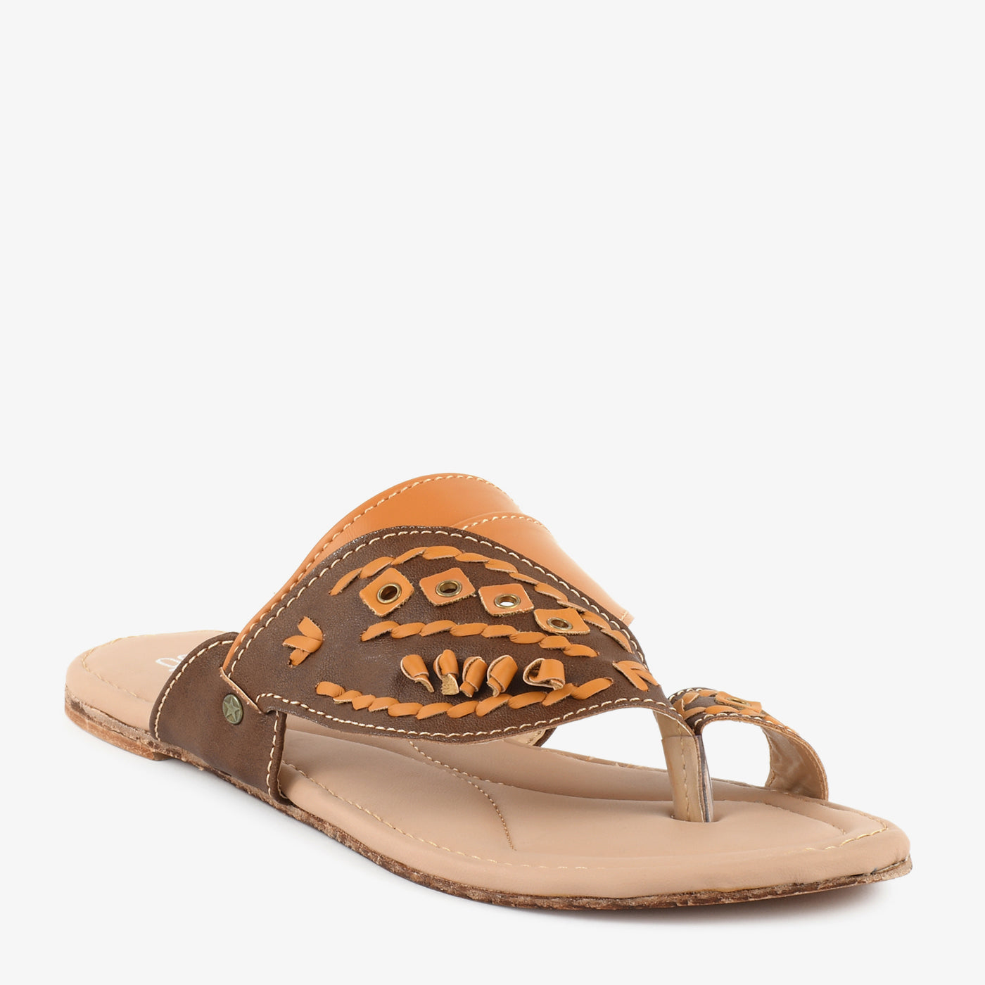 A traditional twist for everyday wear, this handcrafted-style chappal features intricate weaving, eyelet accents, and contrast stitching. The wide vamp and soft base offer all-day comfort.