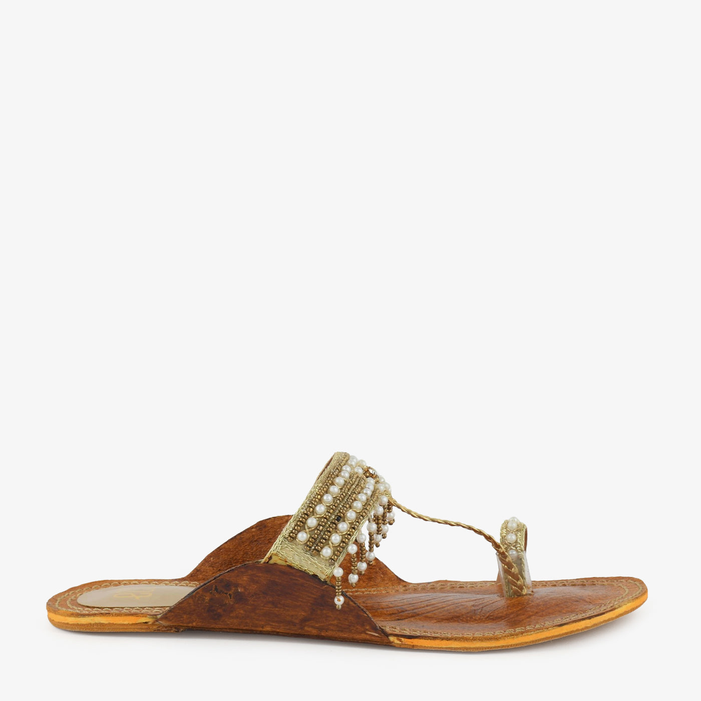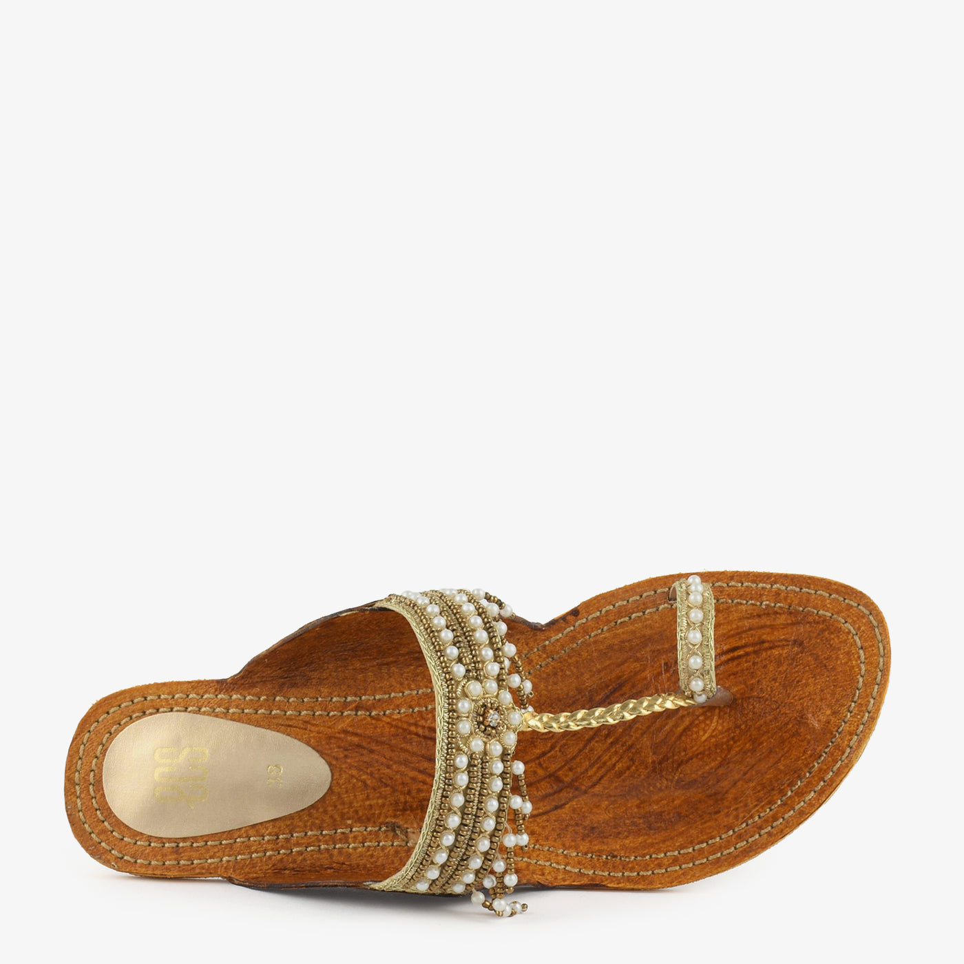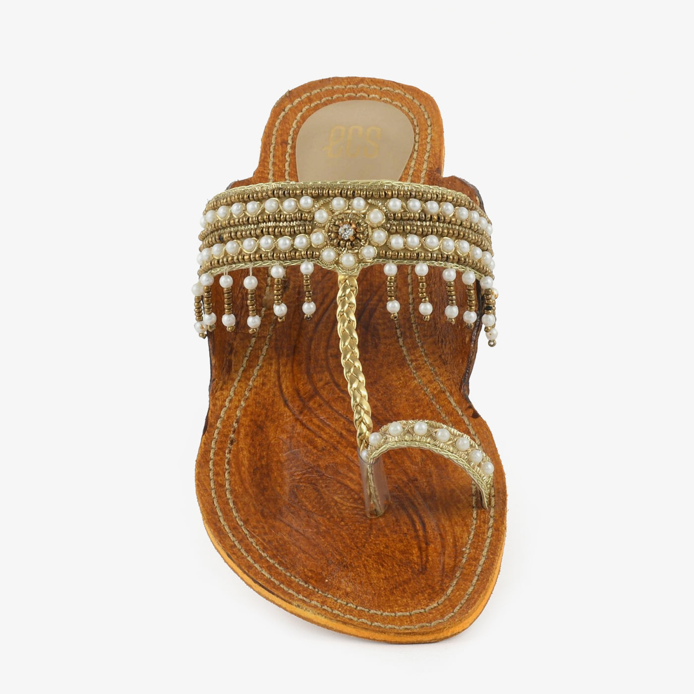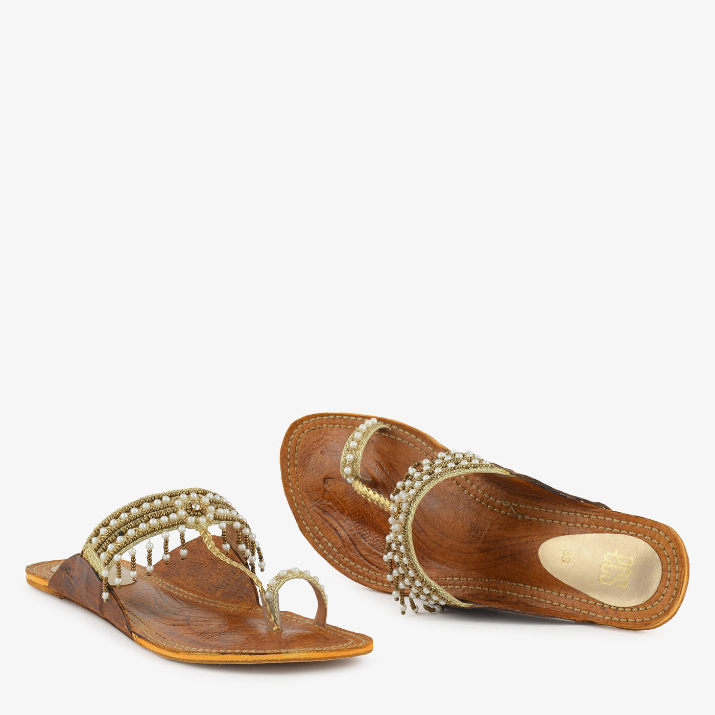 This traditional-inspired chappal showcases delicate bead accents arranged with fine craftsmanship. The open silhouette keeps it light and breathable while offering a graceful presence. A firm yet comfortable sole provides dependable support for daily and festive use. The understated embellishment makes it suitable for elegant occasions without excessive shine. Designed to complement ethnic ensembles beautifully.