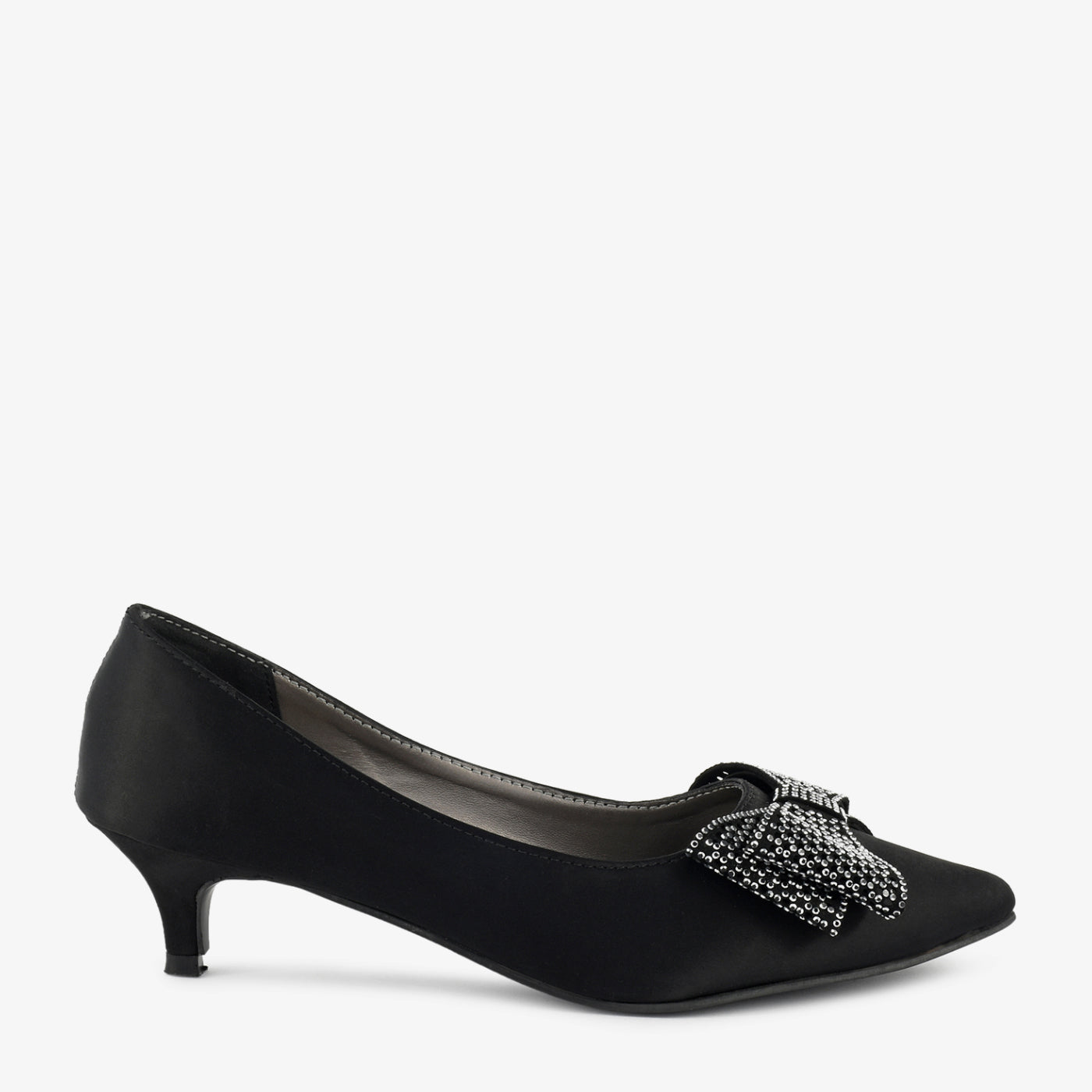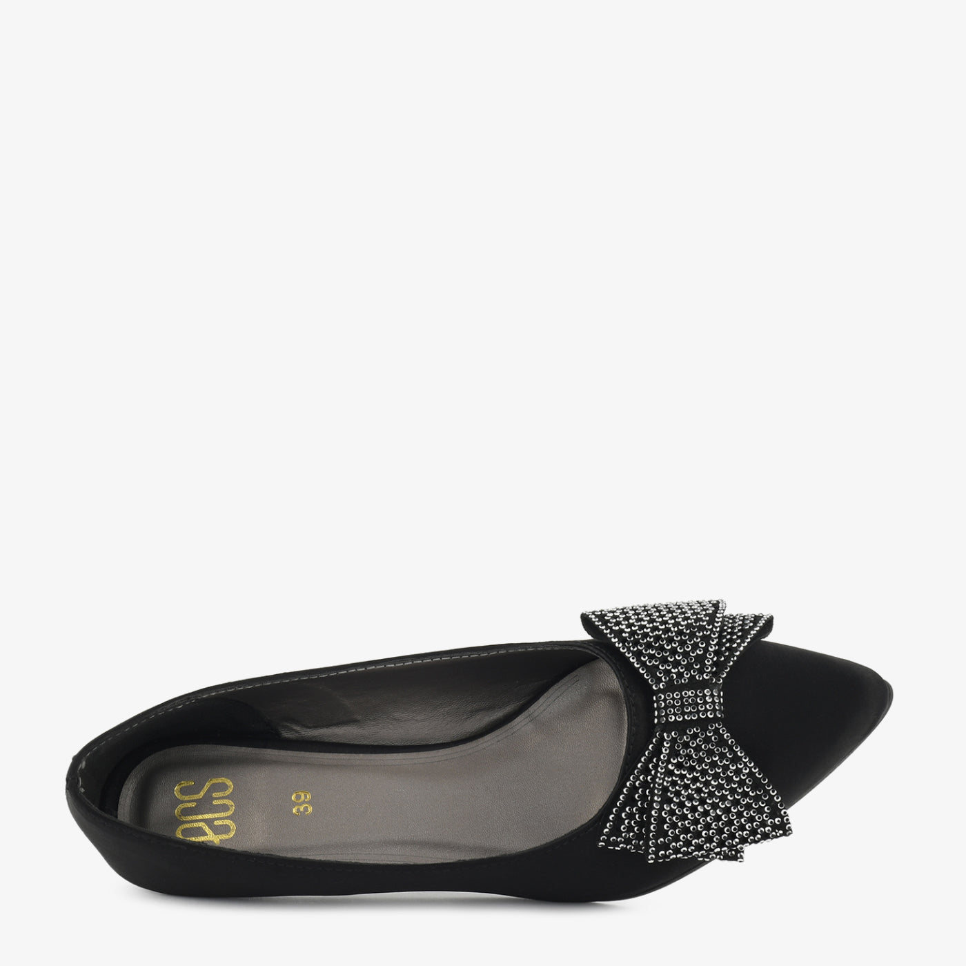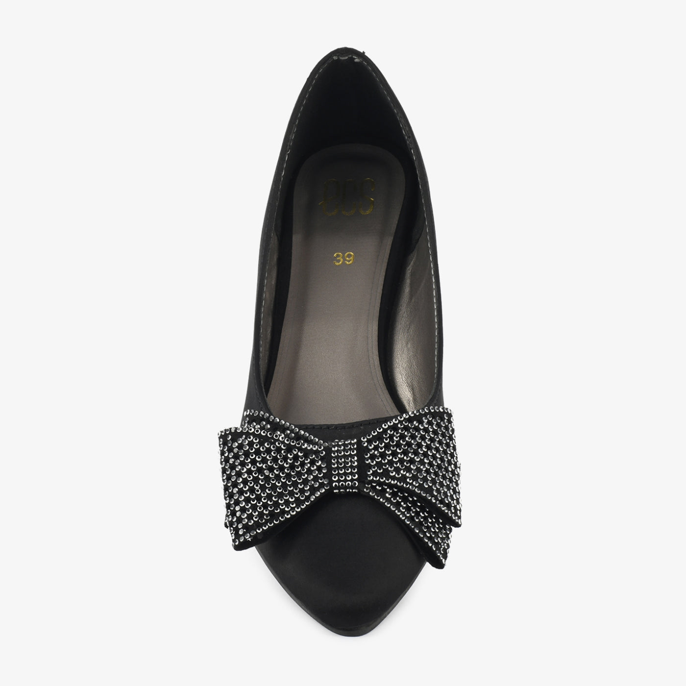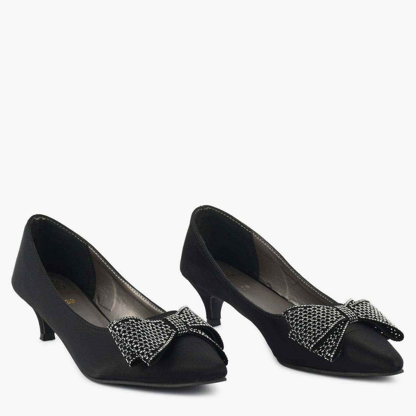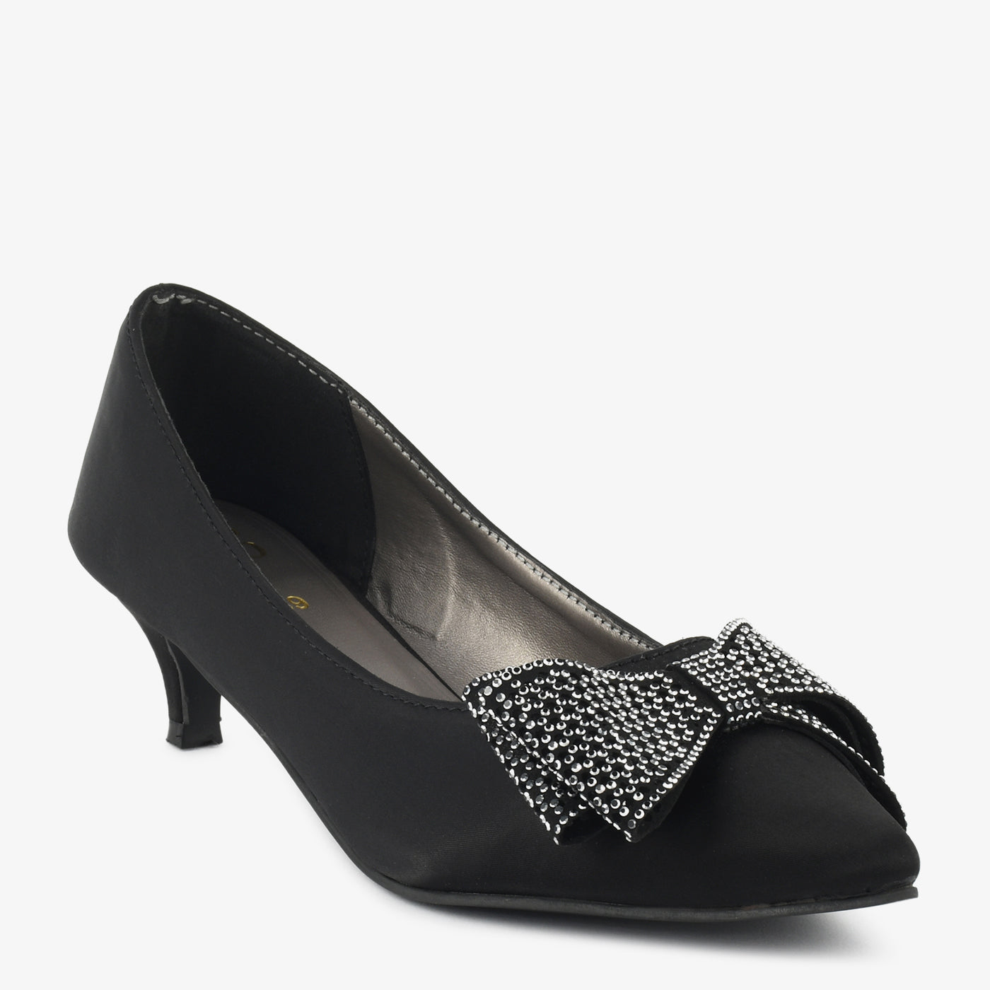 A refined formal shoe designed with a sleek silhouette and a graceful bow accent highlighted with fine crystal detailing. The elegant pointed shape adds a polished finish, making it suitable for sophisticated occasions. Subtle embellishment enhances its charm without overpowering the overall design. The cushioned insole offers comfort for extended wear. A perfect choice for formal gatherings, parties, and evening events.