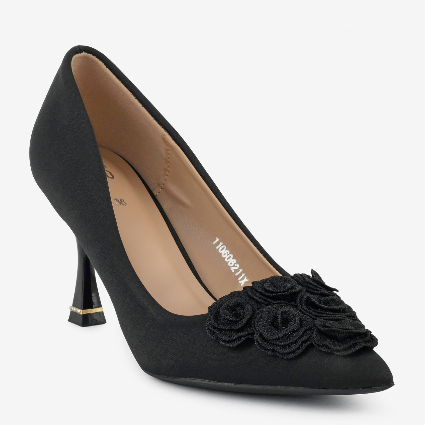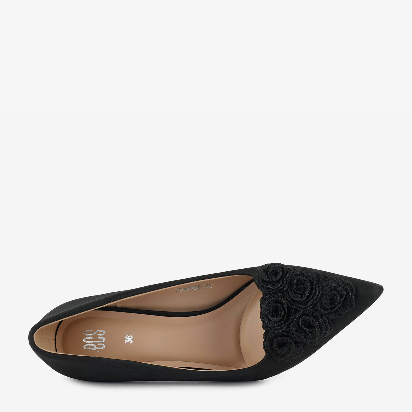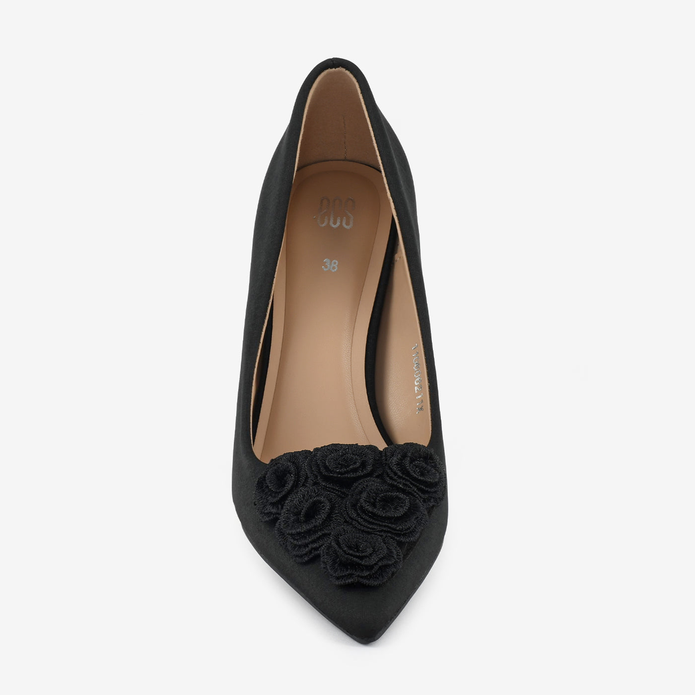 A coat shoe detailed with delicate 3D florals for a graceful feminine touch. Comfortable heel height and plush footbed make it perfect for dinners, weddings, and celebrations. The soft satin-like texture gives it a luxurious finish that elevates every outfit. A timeless choice for elegant occasions.