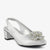 Add a touch of glam to your look with the Silver Floral Slingback Heels. Designed with a shimmering finish and a statement floral embellishment on the toe, these heels radiate sophistication and charm. The comfortable block heel and slingback strap ensure an elegant fit for any occasion.