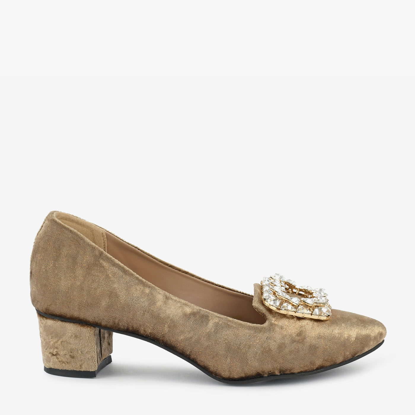 Sophisticated and bold, this design radiates understated glamour with its textured finish and statement buckle. The mid-block heel ensures all-day comfort while maintaining elegance. A perfect companion for festive occasions or formal events.