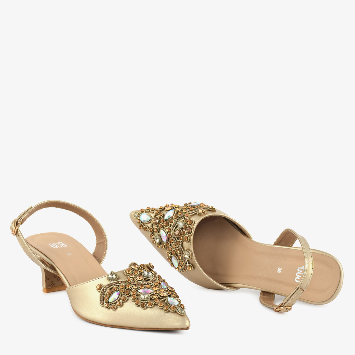 This sophisticated women’s coat shoe showcases a pointed front that enhances its refined silhouette. The upper is beautifully detailed with intricate embellishment, creating a statement look without overpowering the design. A modest heel adds elegance while maintaining comfort for extended wear. Designed as a women’s coat shoe, it balances luxury with practicality. The smooth inner lining supports easy movement and comfort. Its closed structure gives a polished appearance suitable for formal settings. A striking choice that complements dressy ensembles effortlessly.