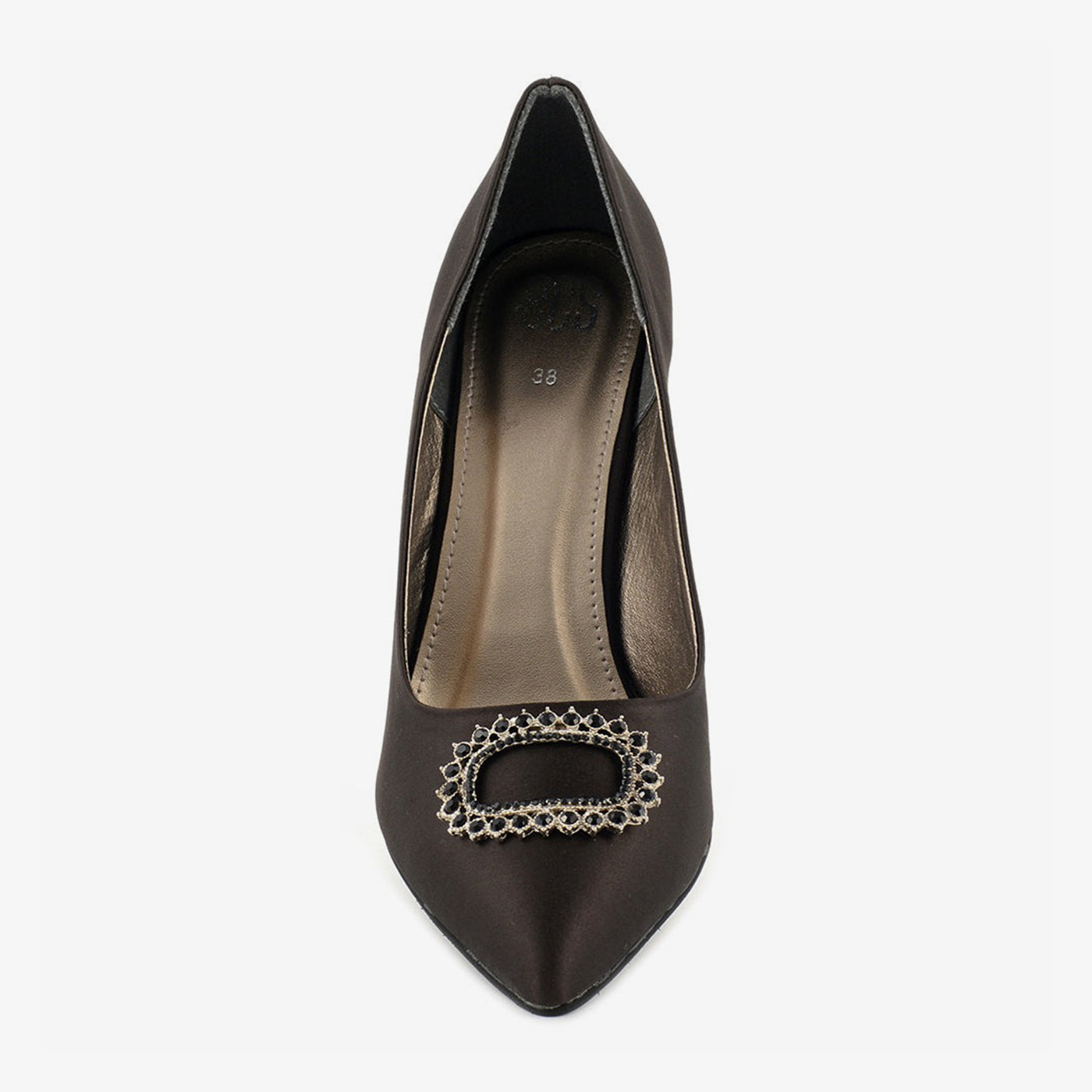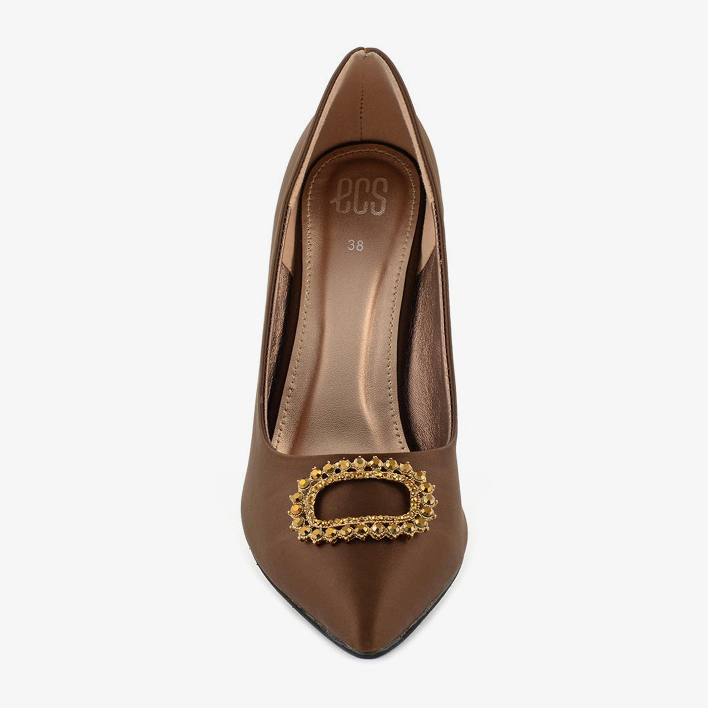 The softest accents of night reflect in the ECS court shoes. This pair features an embellished stone buckle that will complement your embellished outfits.