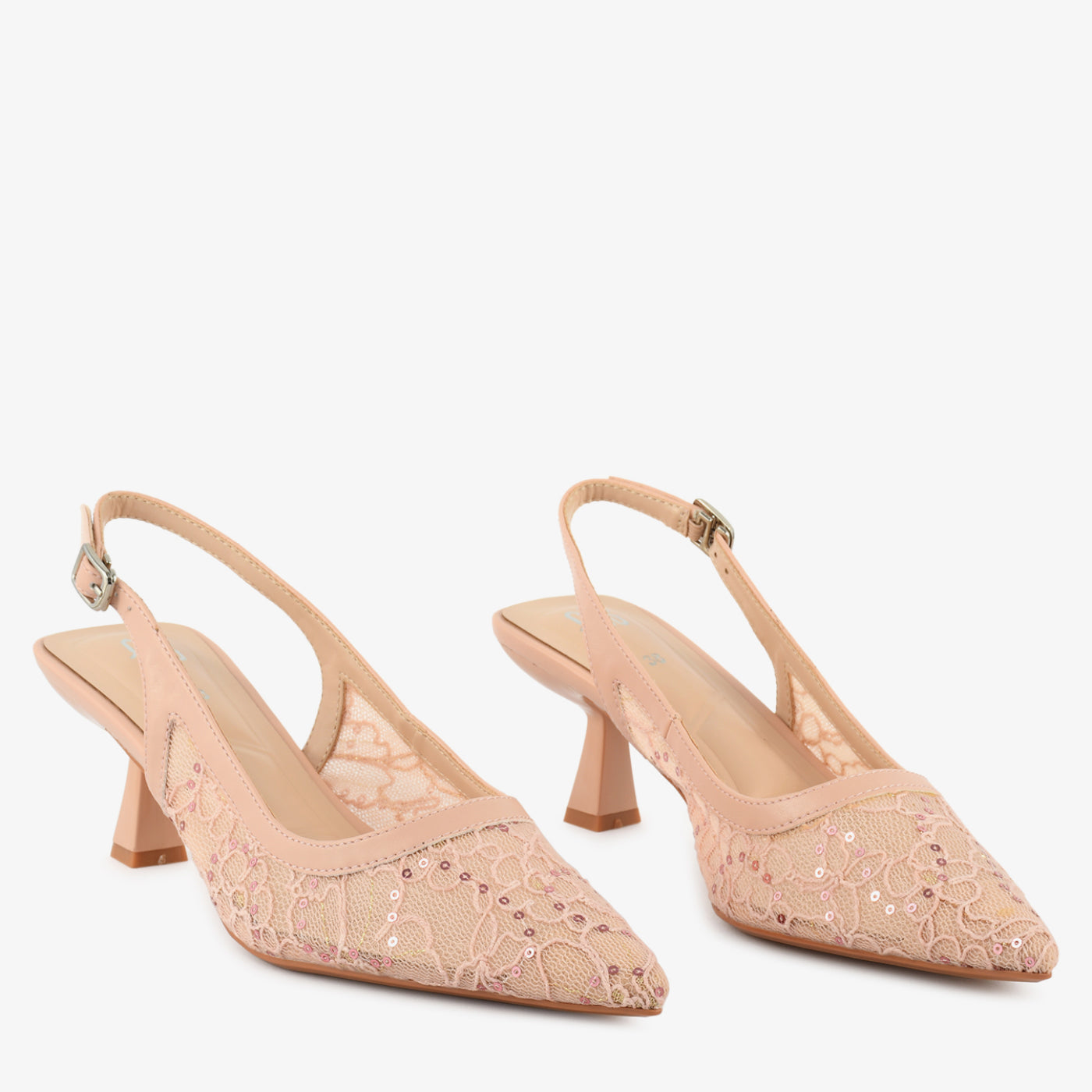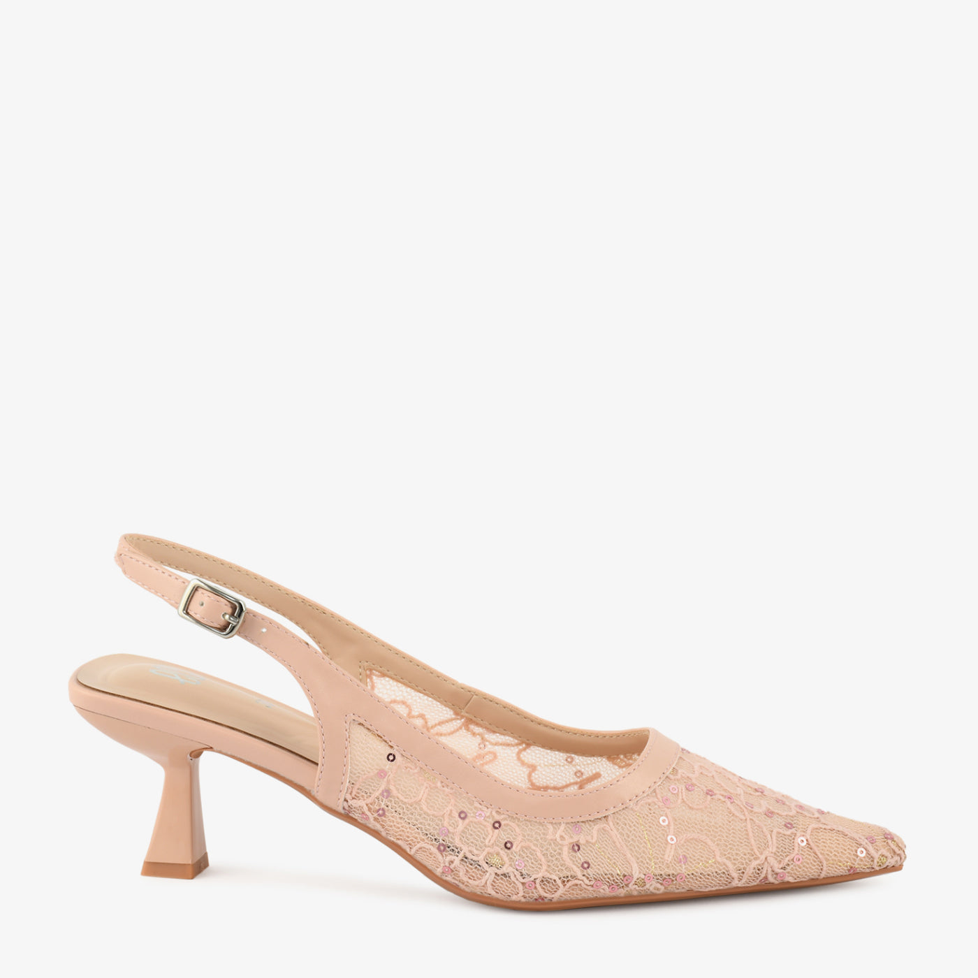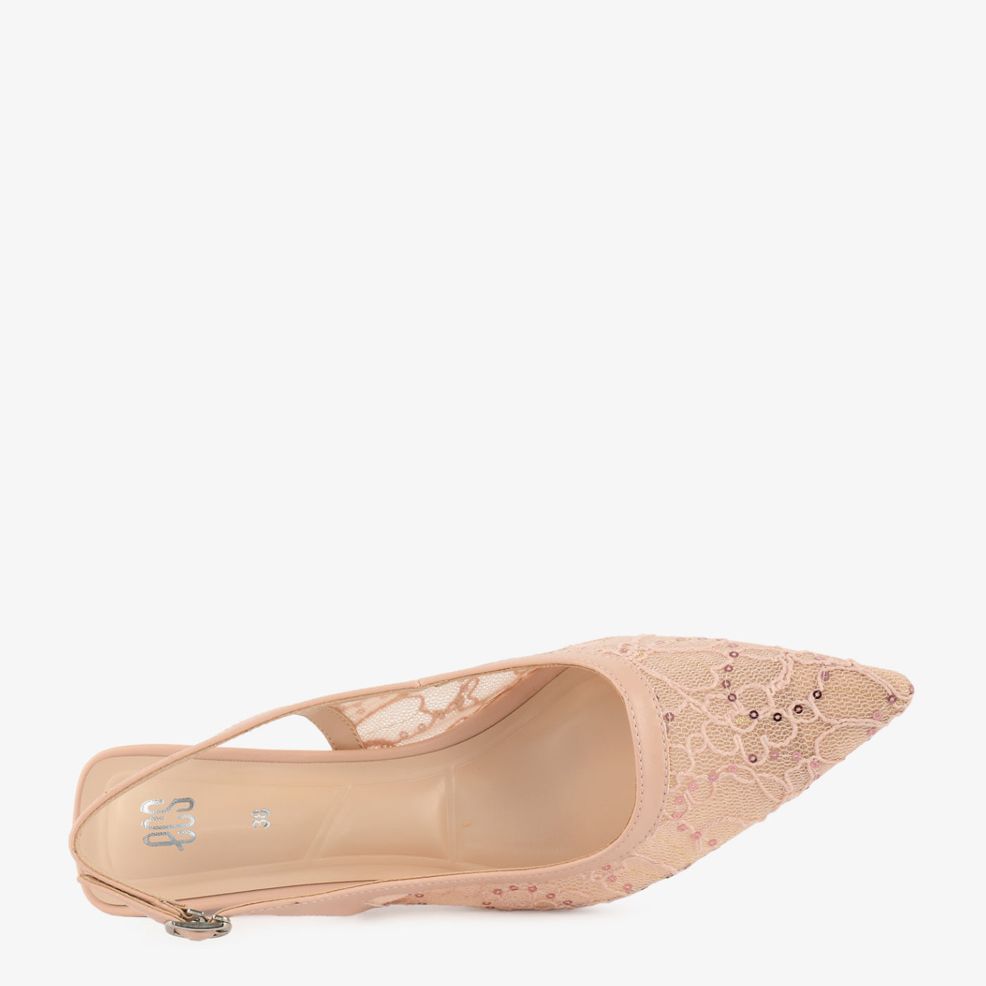 - Design: Sling-back pointed coat shoe with sequin lace detailing