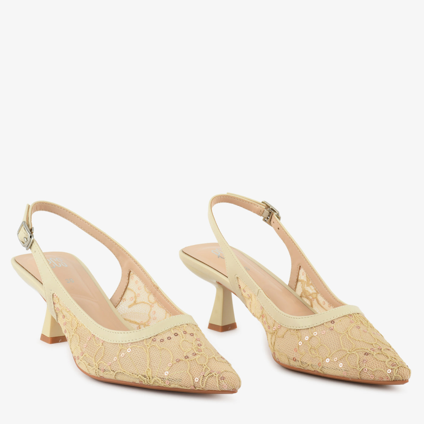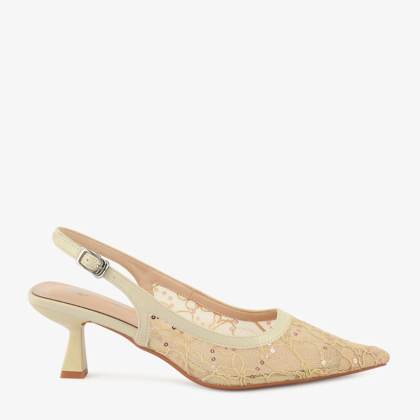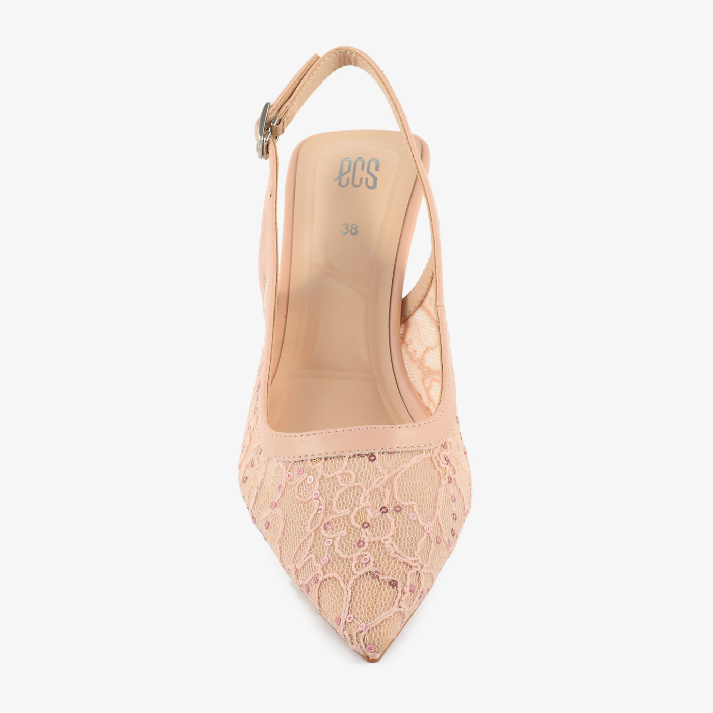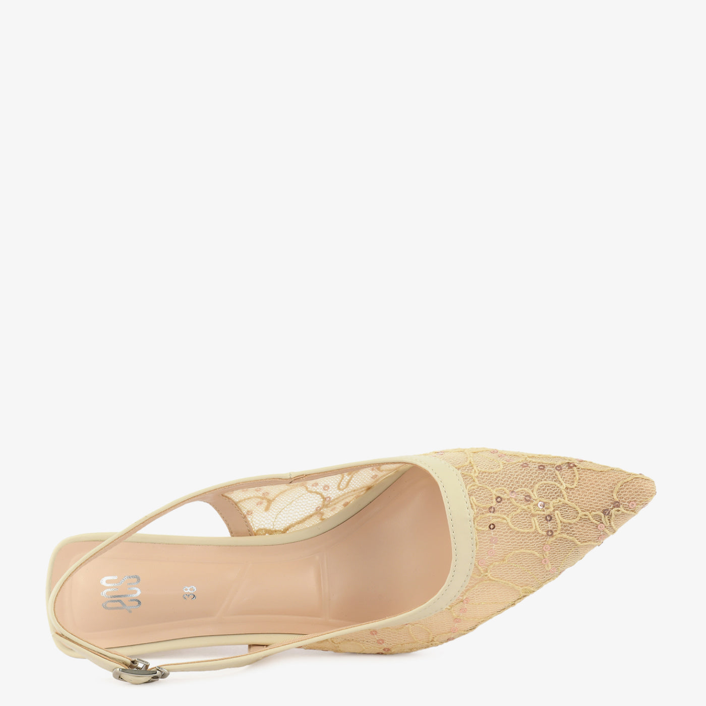 - Design: Sling-back pointed coat shoe with sequin lace detailing