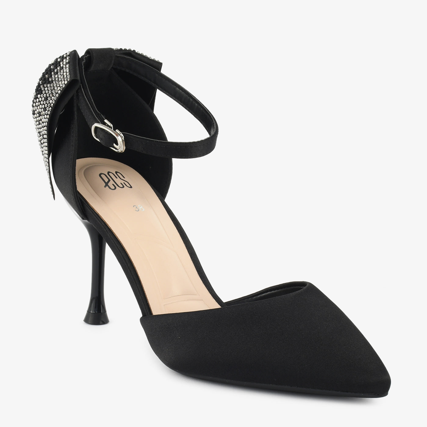 A refined coat shoe featuring satin-like texture and delicate rhinestones on the ankle band for subtle luxury. The pointed toe creates an elegant profile while the slim heel enhances height. A perfect choice for receptions, formal dinners, and classy gatherings. Built for comfort with soft interior cushioning.