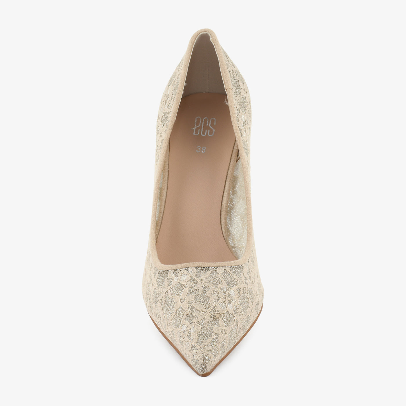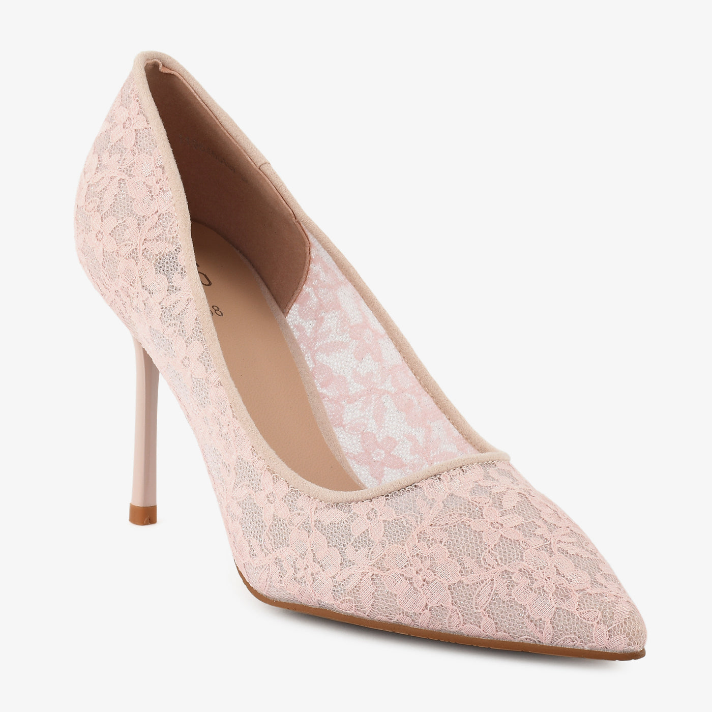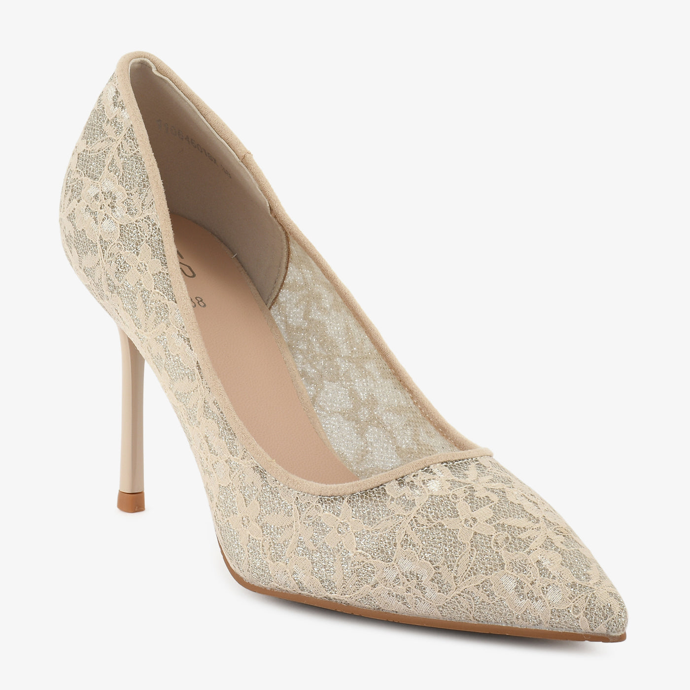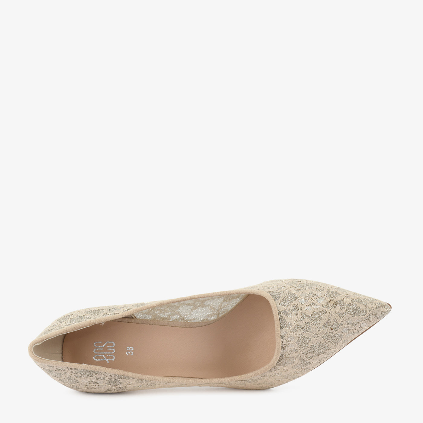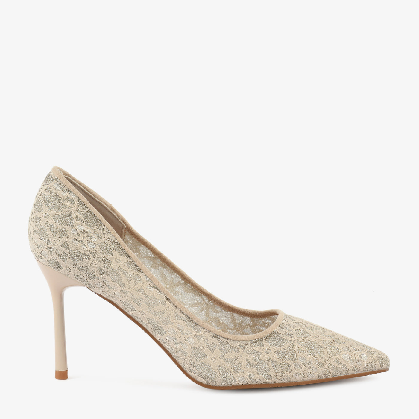 An enchanting court shoe designed with intricate lace detailing. The delicate floral overlay adds romantic flair, while the pointed toe elongates the silhouette beautifully. Lightweight and elegant, it’s perfect for refined occasions.