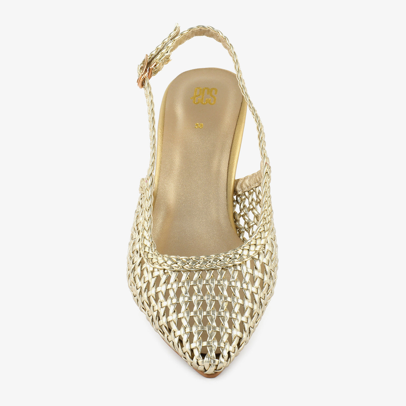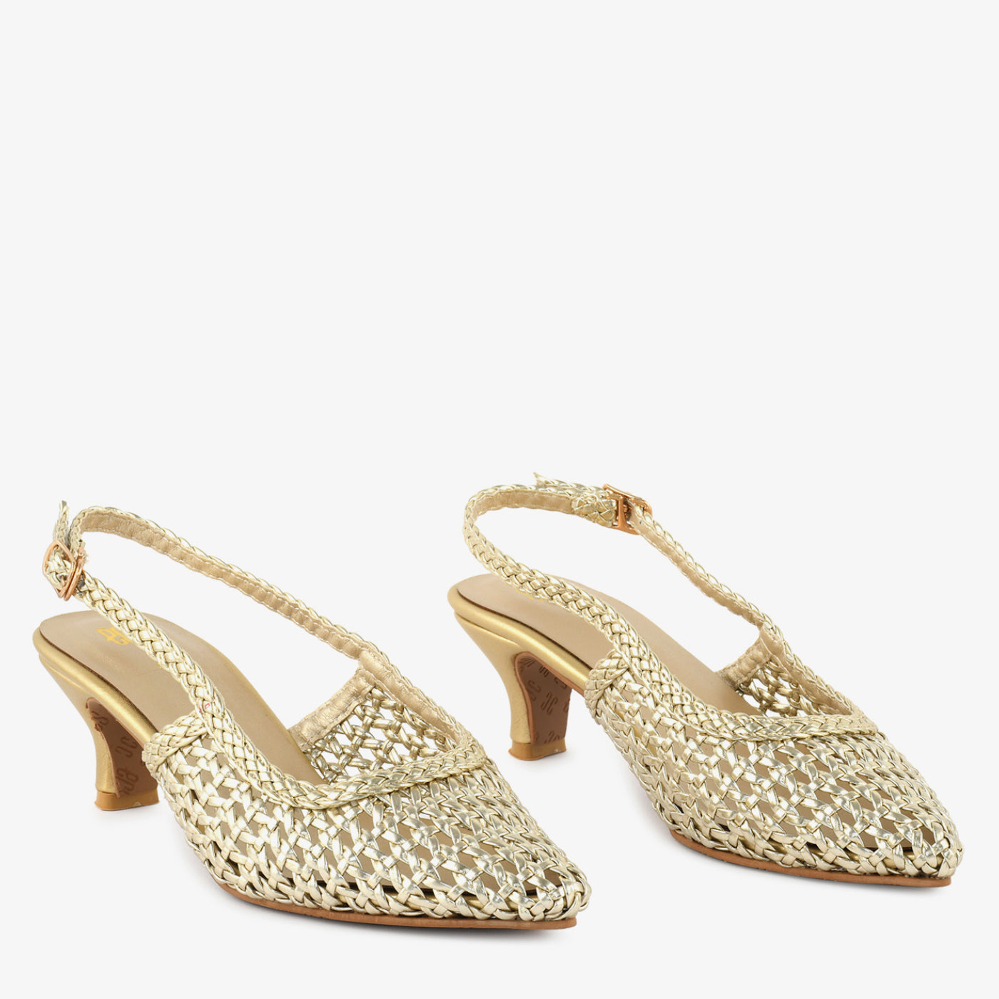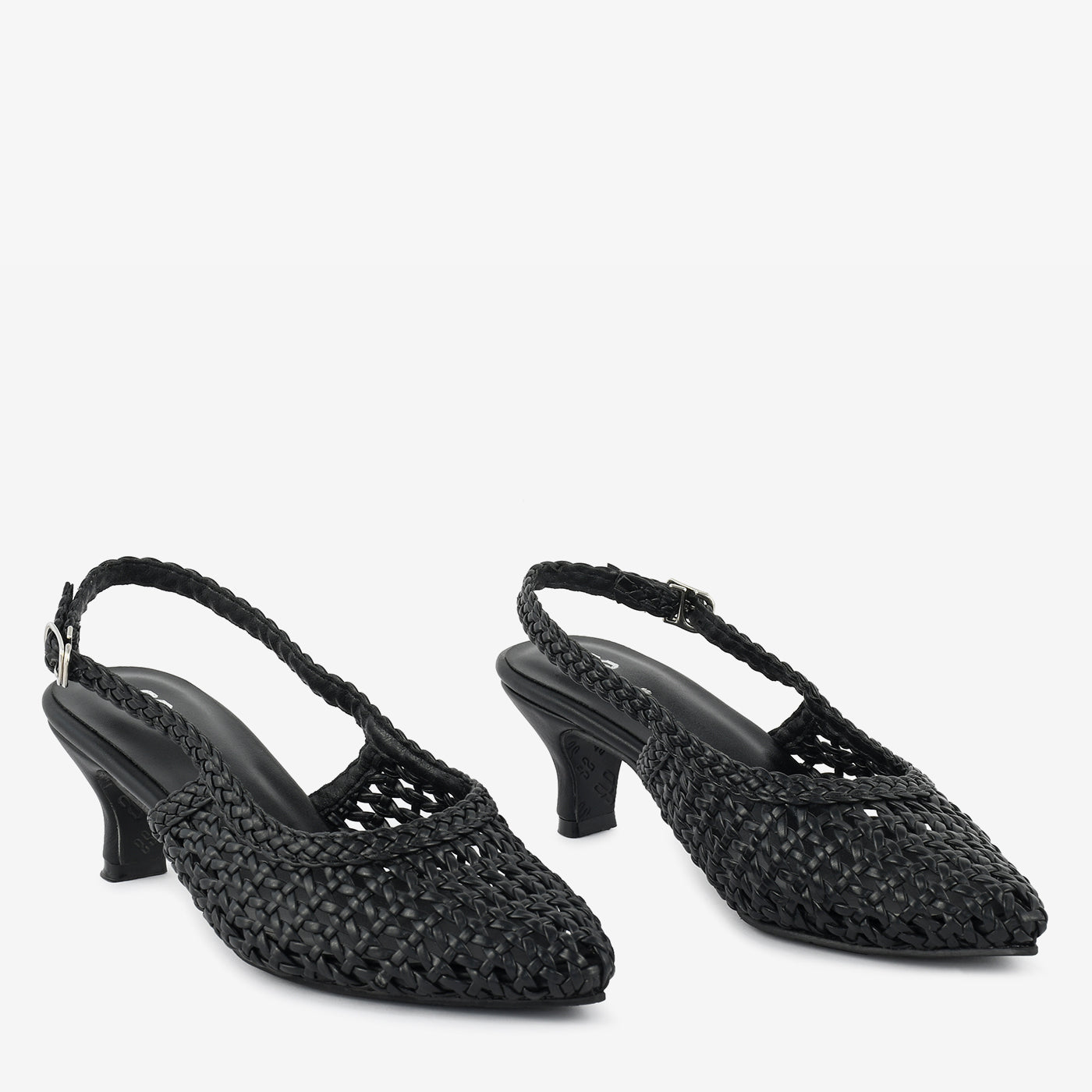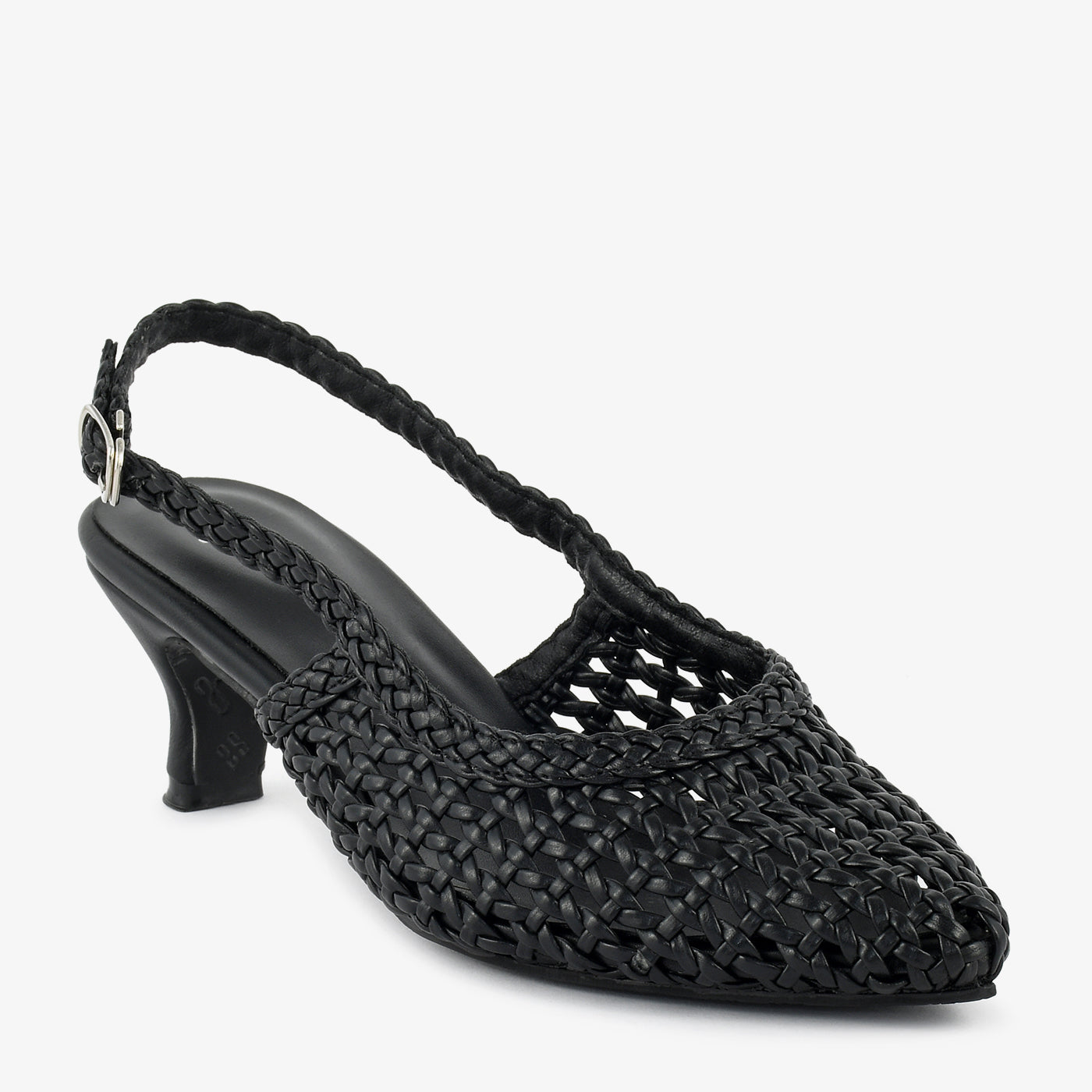 ...A chic court shoe that combines artisanal weaving with modern appeal. Its intricate braided design offers breathability and elegance, ideal for smart casual wear. Crafted for comfort and distinctive style.