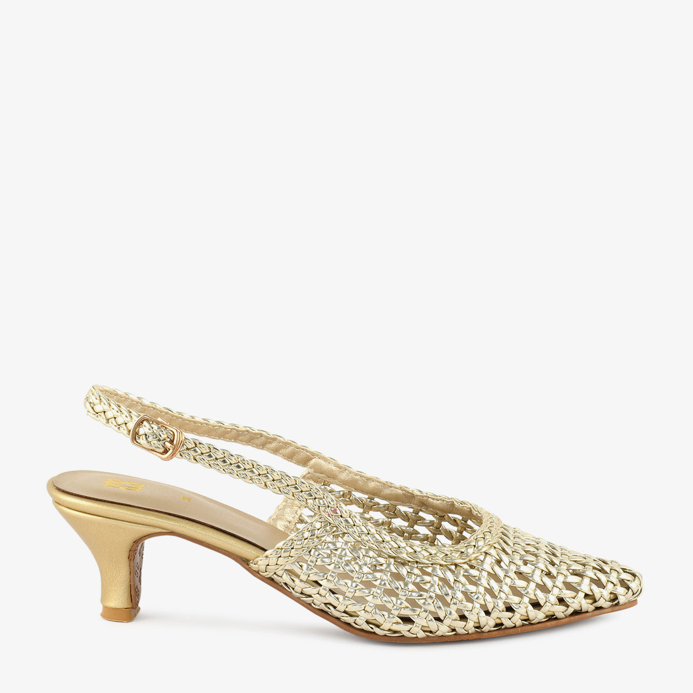 A chic court shoe that combines artisanal weaving with modern appeal. Its intricate braided design offers breathability and elegance, ideal for smart casual wear. Crafted for comfort and distinctive style.