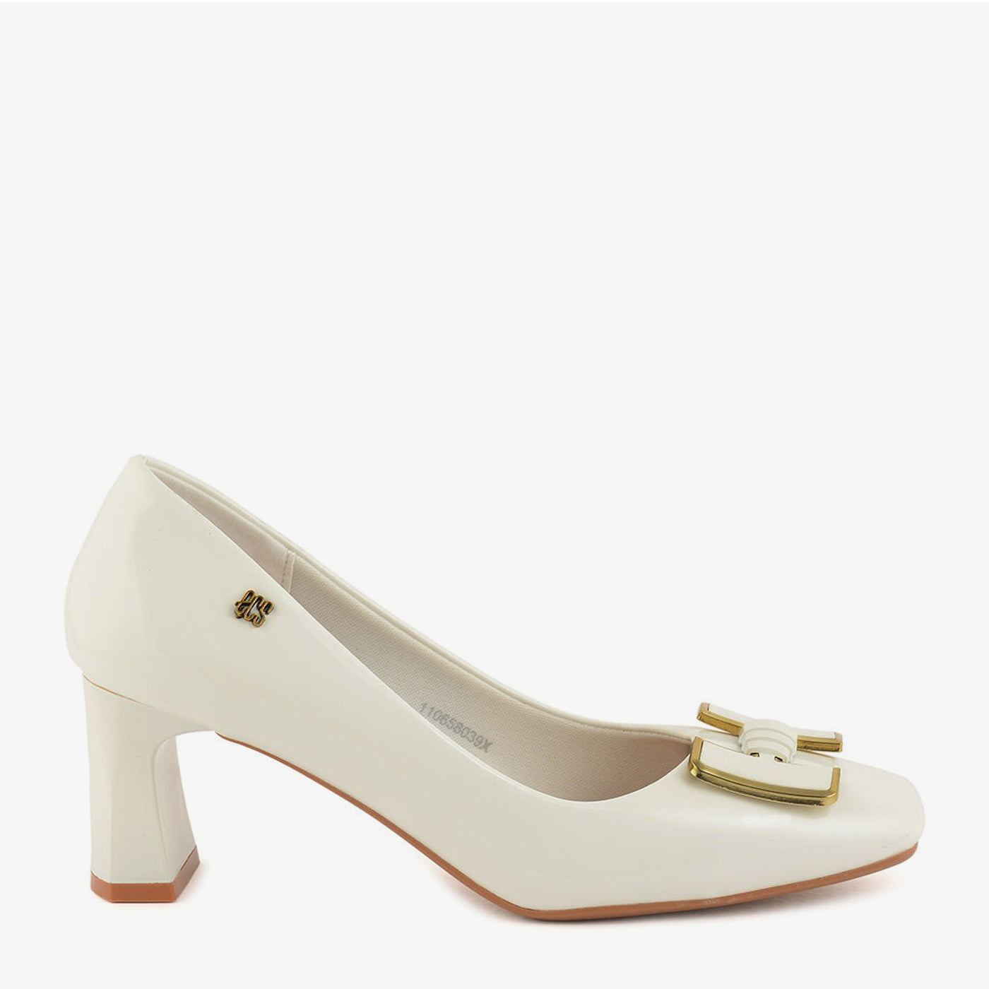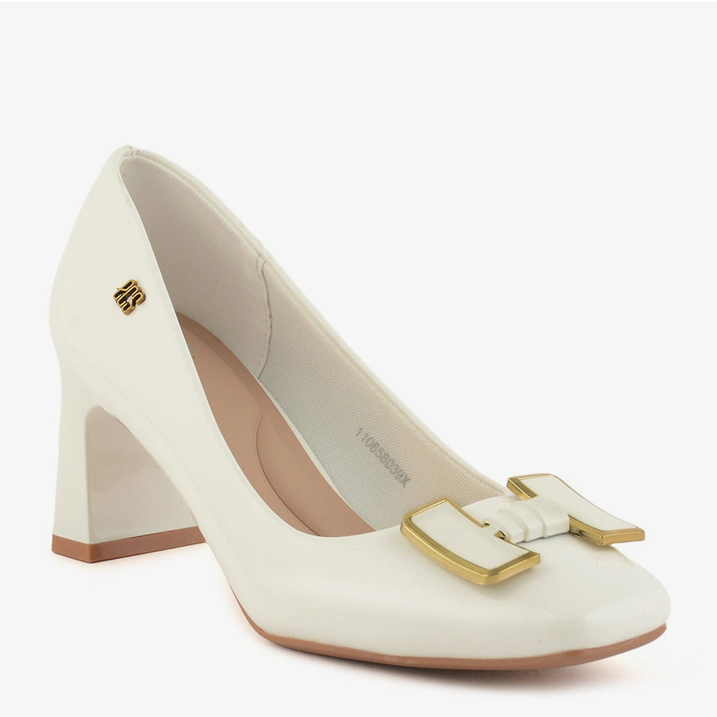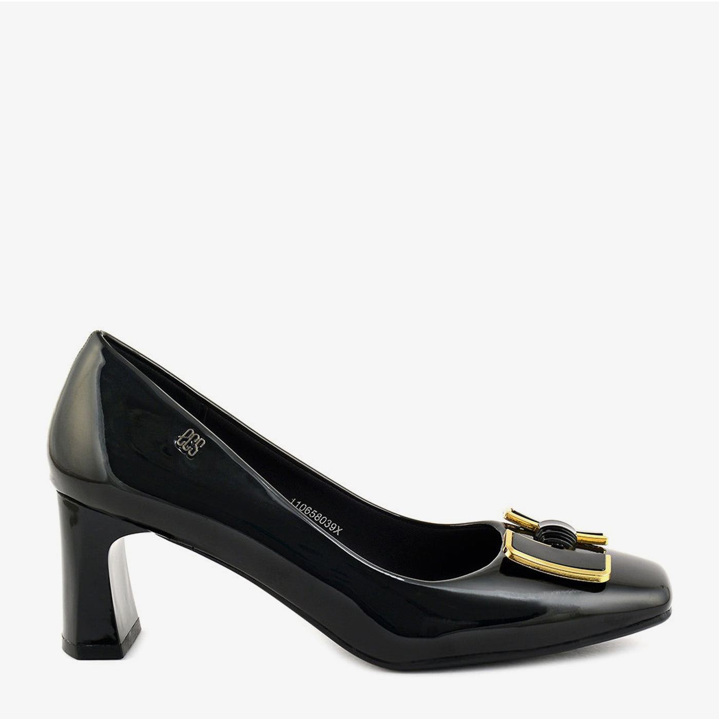 Featuring a patent finish and bold dual-tone buckle, this heel brings structure and style in one. The thick block heel and rounded toe make it easy to wear...