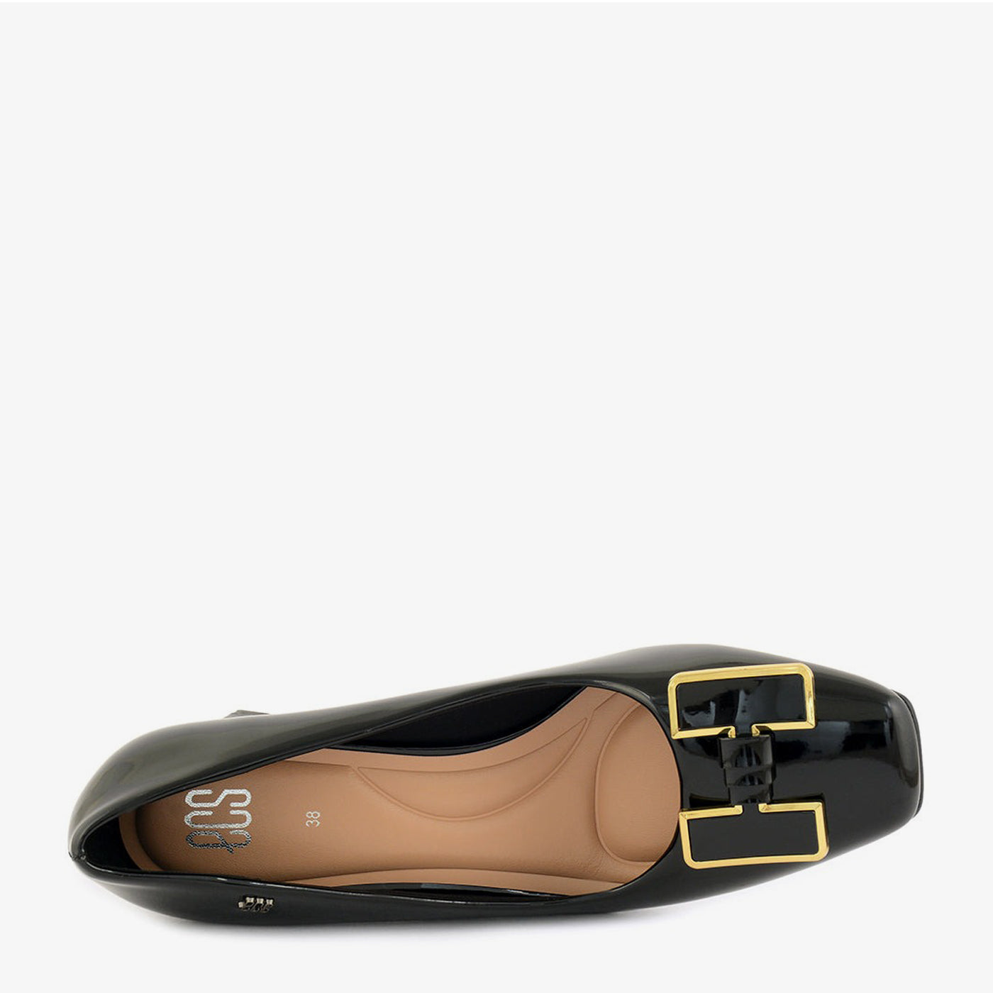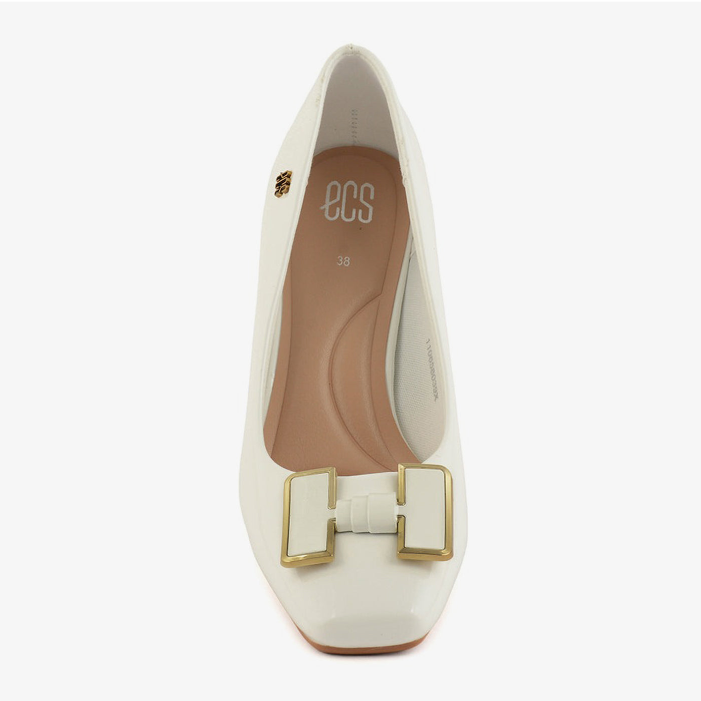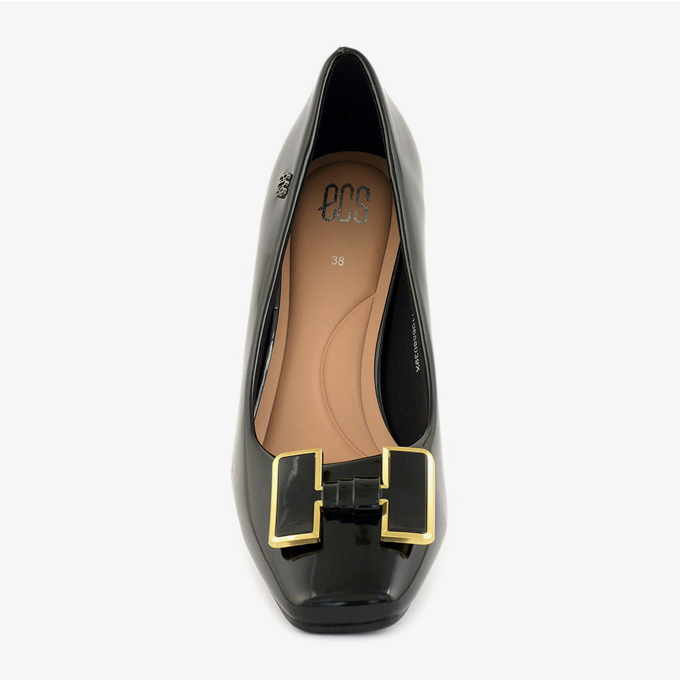 Featuring a patent finish and bold dual-tone buckle, this heel brings structure and style in one. The thick block heel and rounded toe make it easy to wear all day.