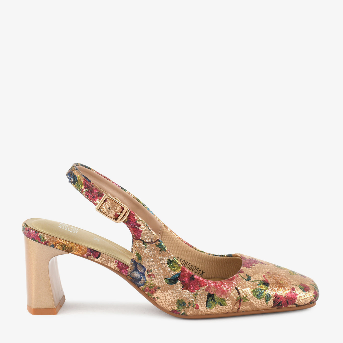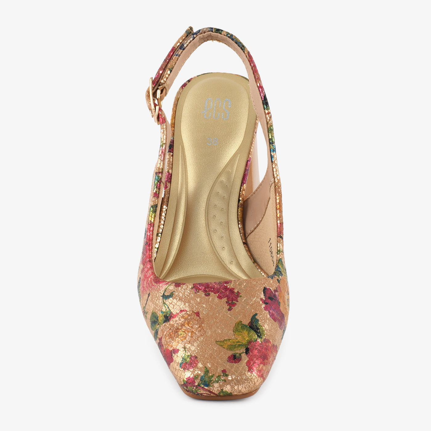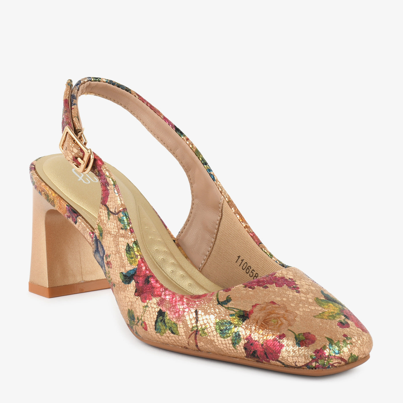 A slingback with delicate floral accents that add a soft feel. Designed for women who prefer subtle elegance with a hint of detail. Its closed pointed toe gives a balanced mix of style and comfort, making it perfect for day-to-evening wear.