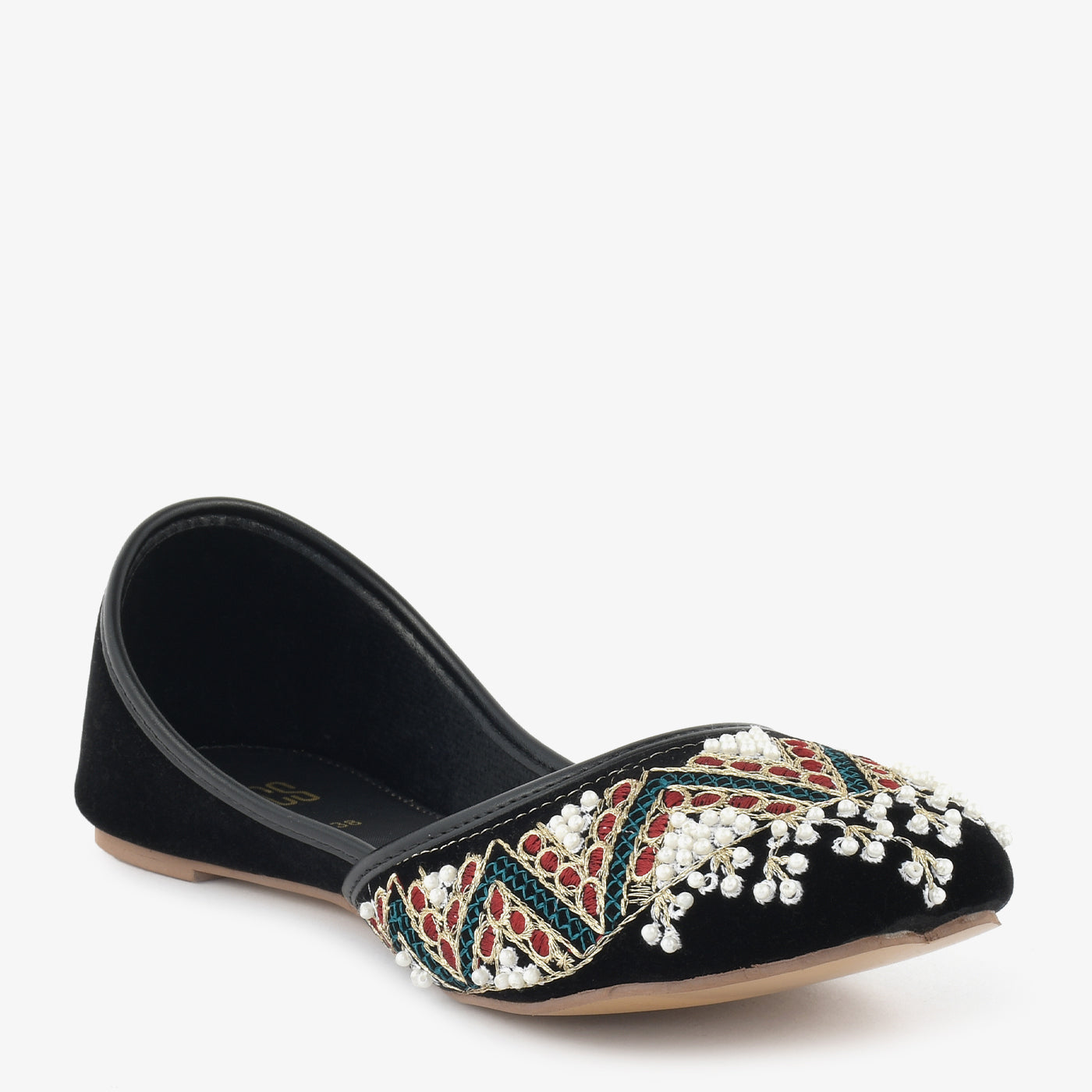 ...Step into classic comfort with the Embroidered Casual Khusa. This traditional jutti features an upper with a detailed embroidered design. The flat sole offers comfortable wear for various occasions.