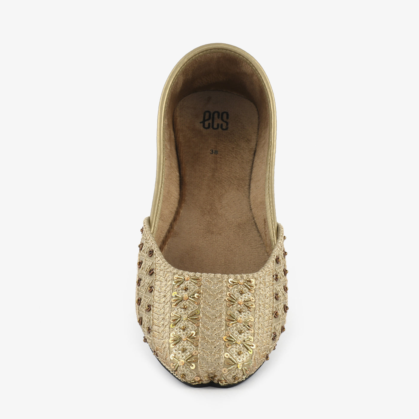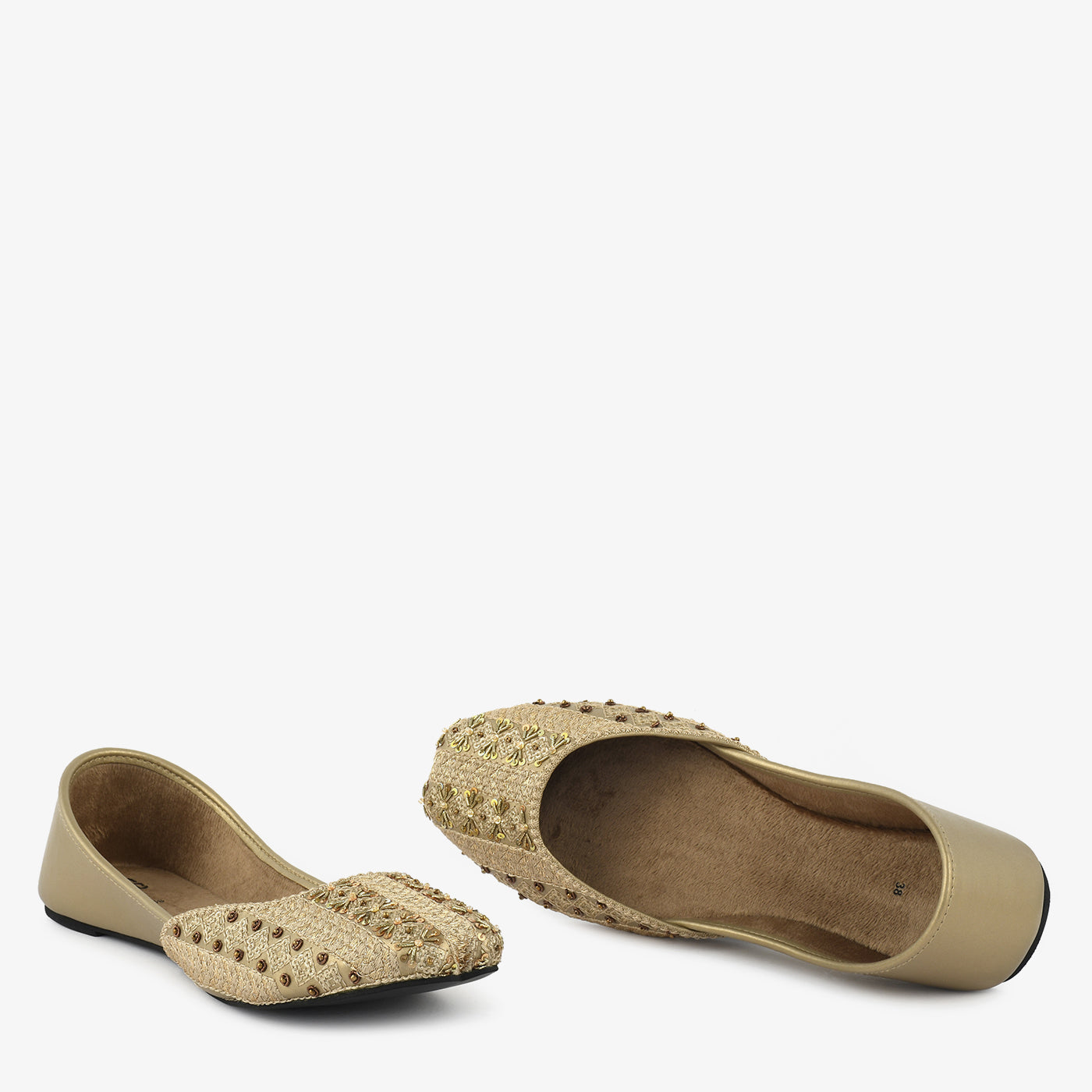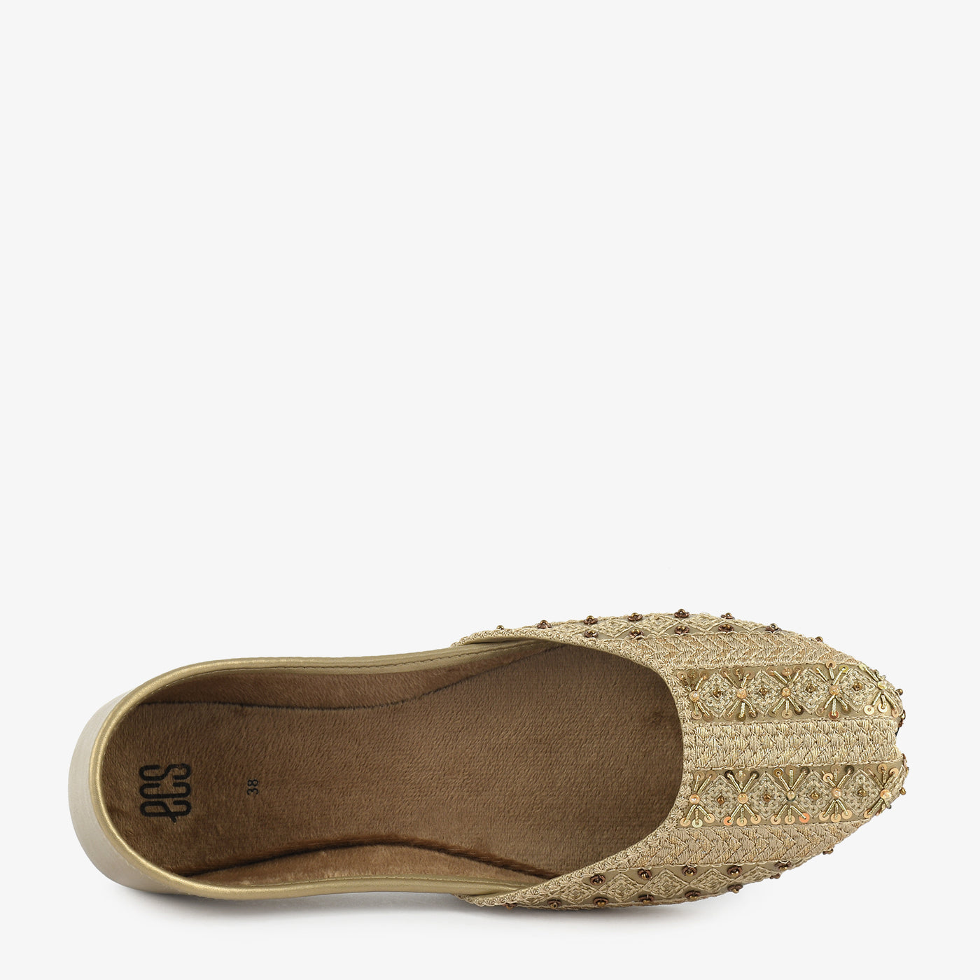 A traditional khussa reimagined with intricate threadwork and bead accents. Its soft interior lining ensures comfort, while the embellished upper adds festive charm. Perfect for cultural events, weddings, or modest ethnic wear.