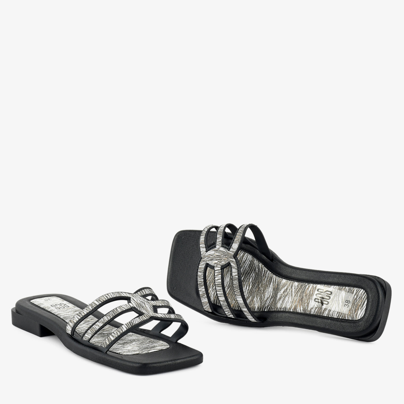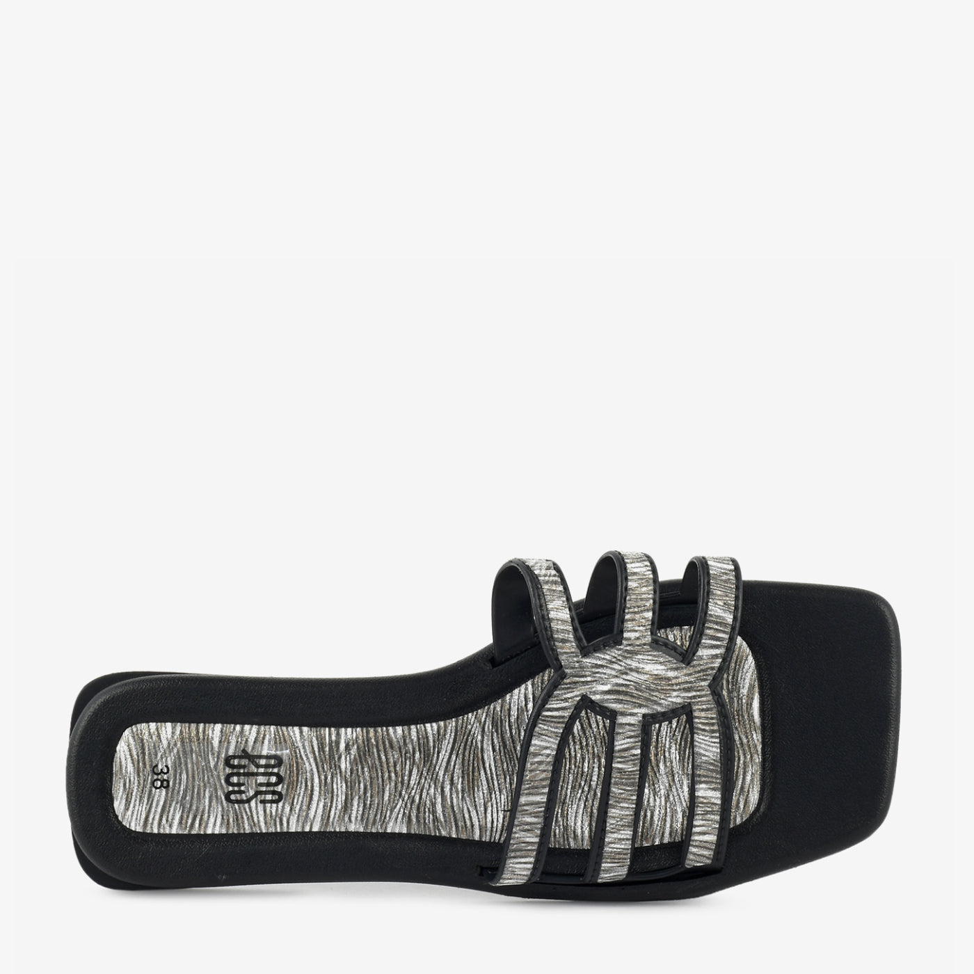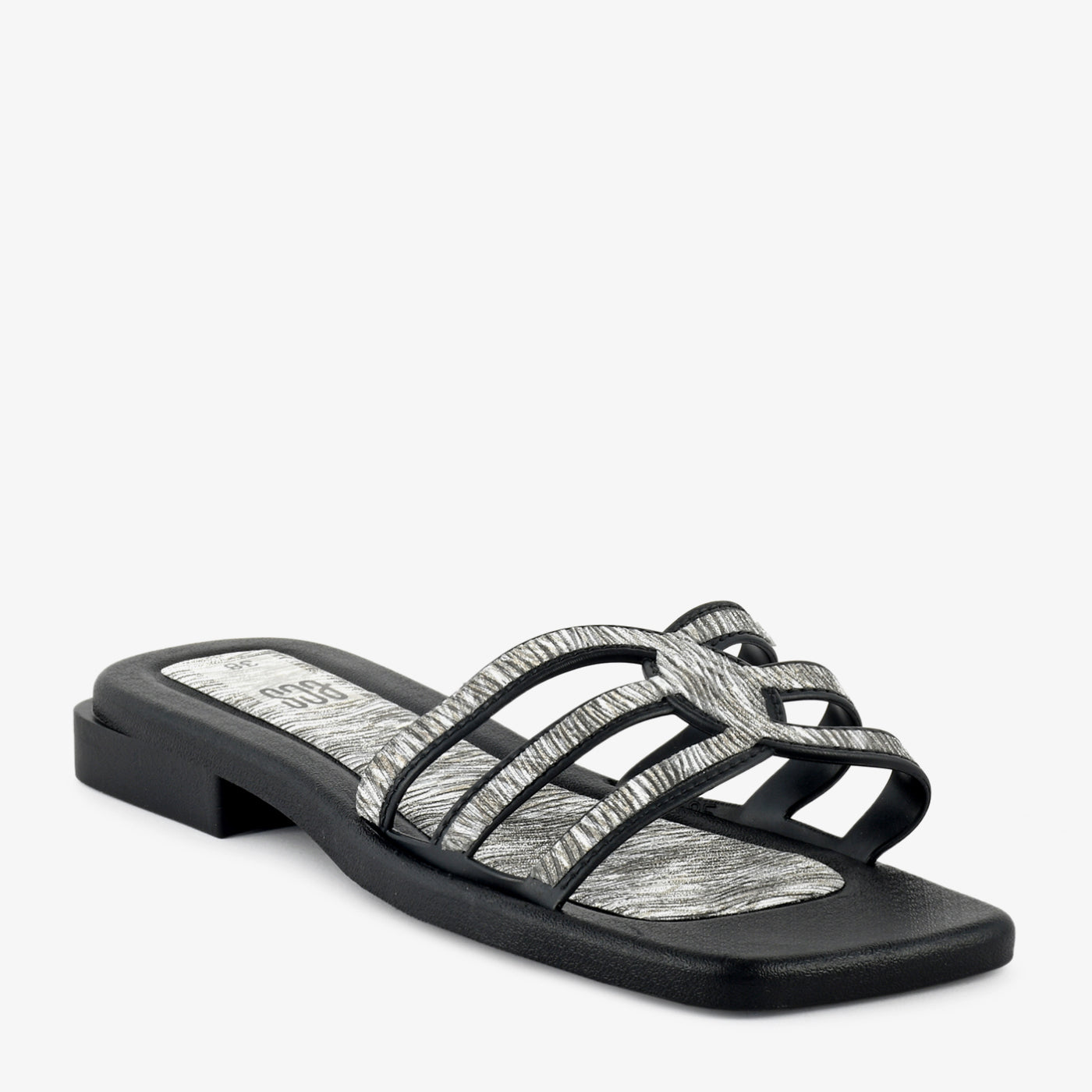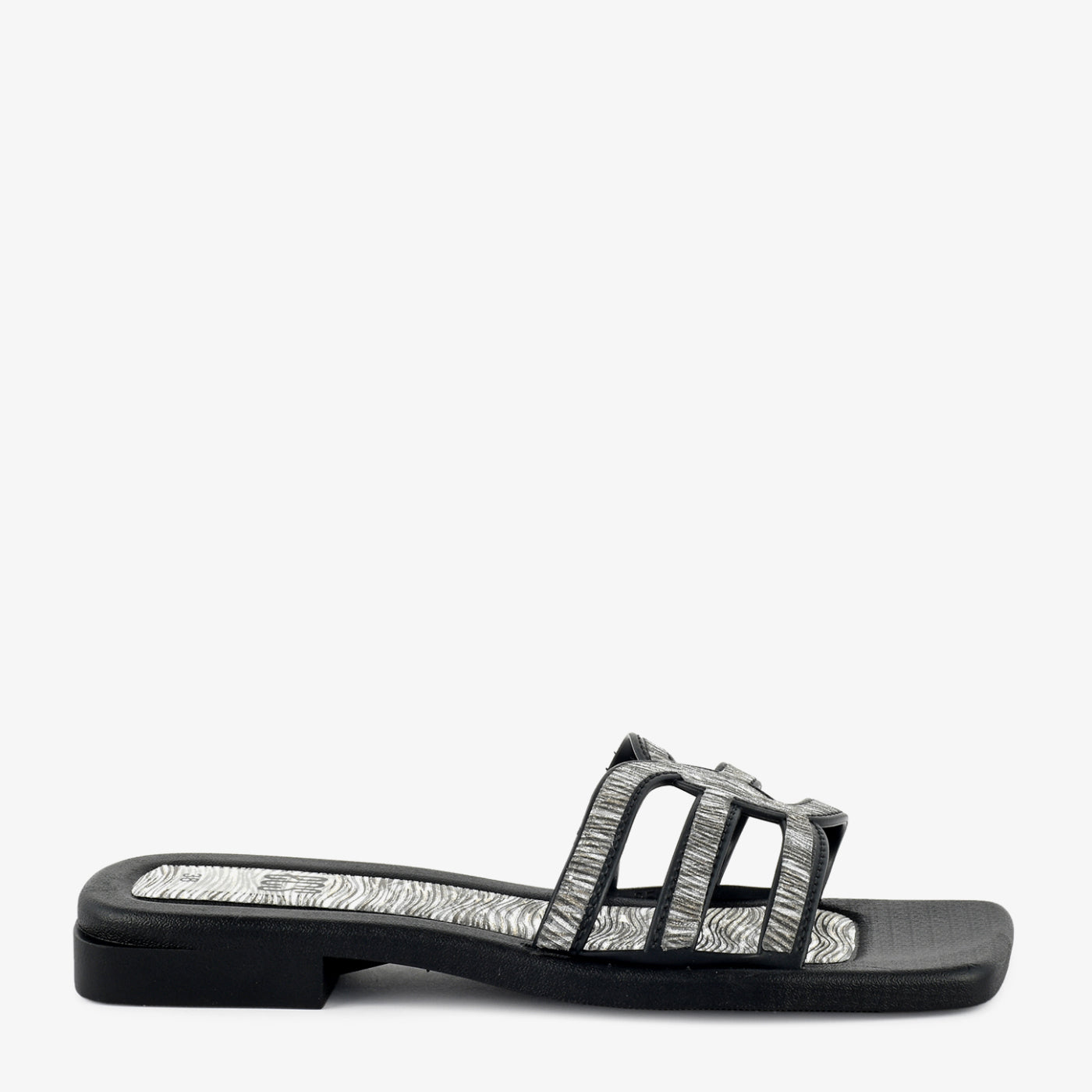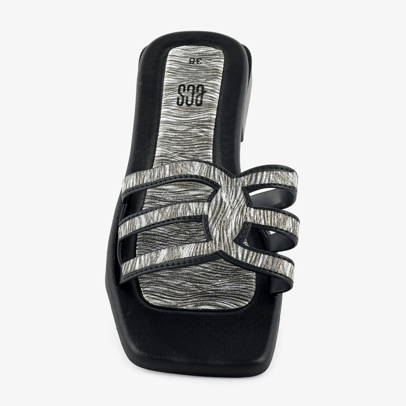This modern slipper is designed for effortless comfort with a clean, contemporary look. Featuring multiple sleek straps across the front, it offers a secure fit while allowing easy slip-on wear. The softly cushioned footbed supports all-day movement, and the low-profile base adds stability without sacrificing style. Ideal for everyday use, this slipper blends practicality with refined simplicity.