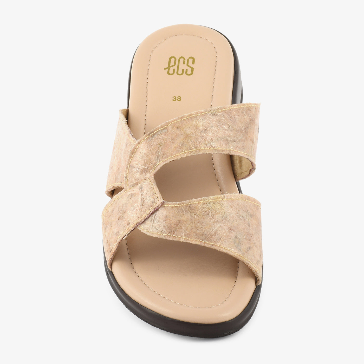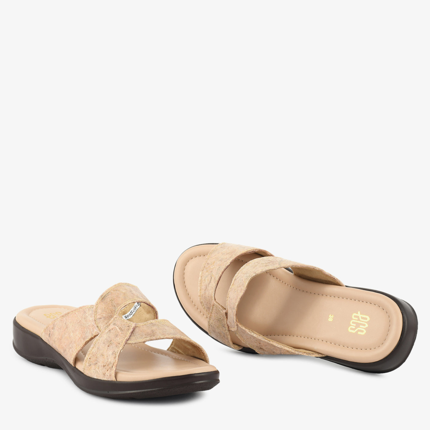 This thoughtfully designed slipper offers a relaxed and supportive feel for everyday wear. The broad crossover strap provides a secure fit while allowing easy slip-on convenience. A gently contoured footbed enhances comfort, making it suitable for extended use throughout the day. The slightly raised base adds subtle support without compromising ease of movement. Its clean and minimal silhouette makes it a practical choice for daily routines and casual outings.