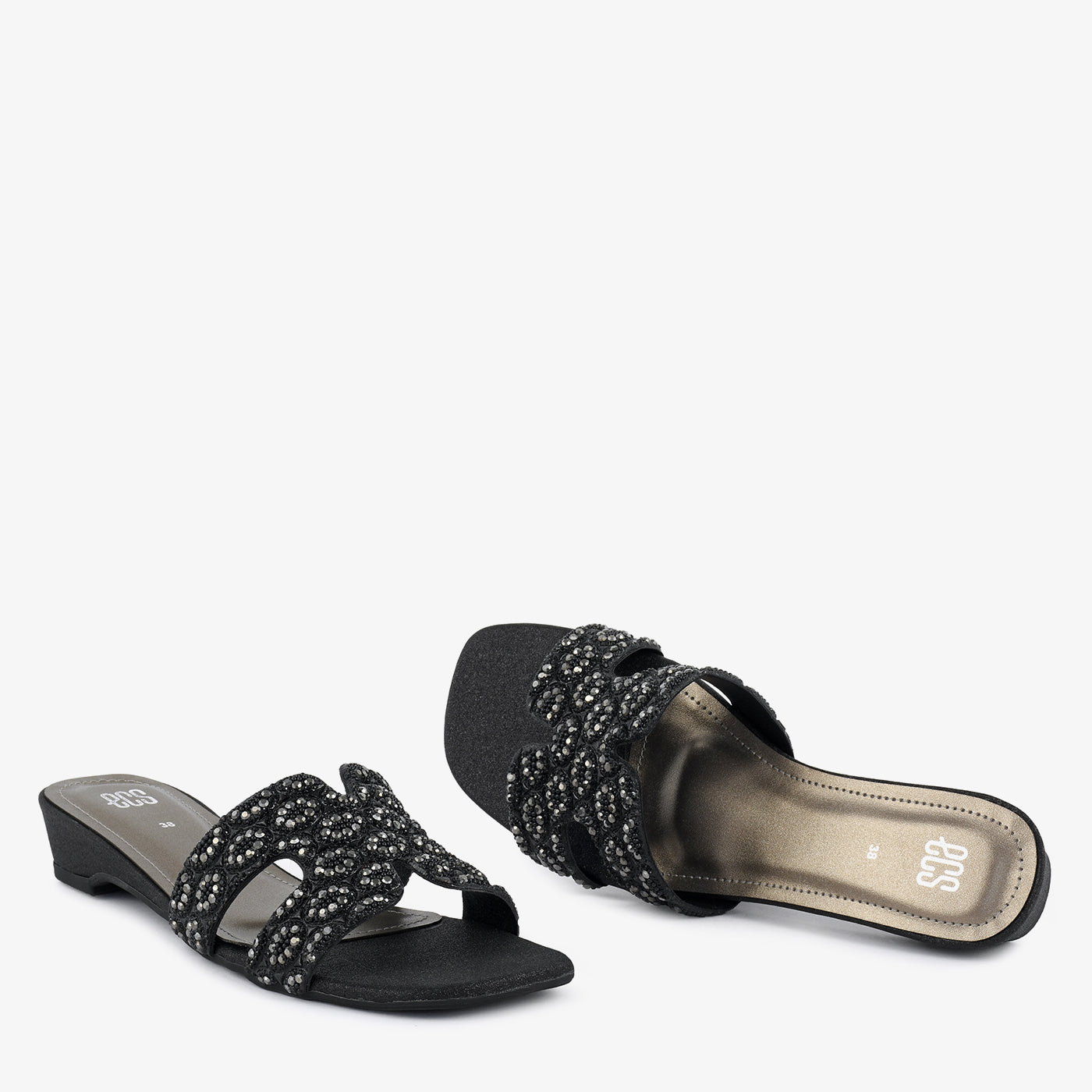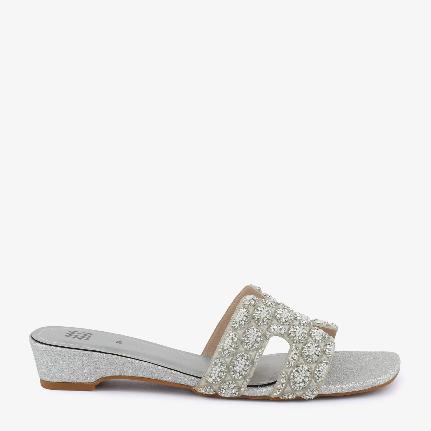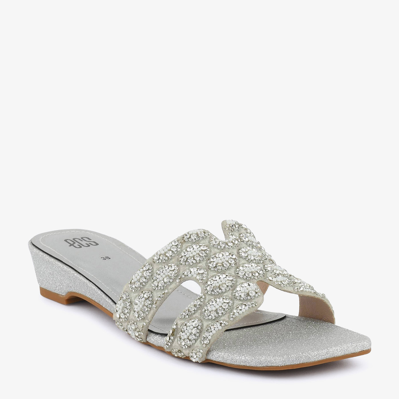 This elegant wedge slipper showcases exquisite beadwork and a stylish dual-strap design. It combines glamour with comfort, offering stable support for long wear. Perfect for evening functions or festive dinners where style meets ease. The subtle sparkle adds sophistication to your overall look.