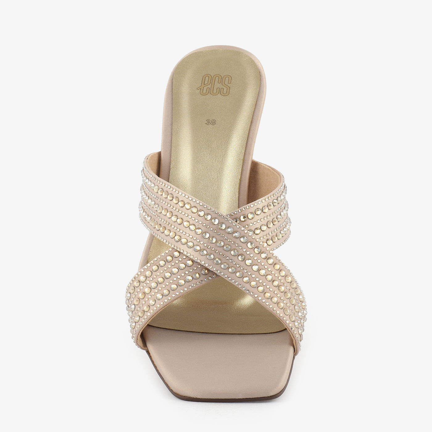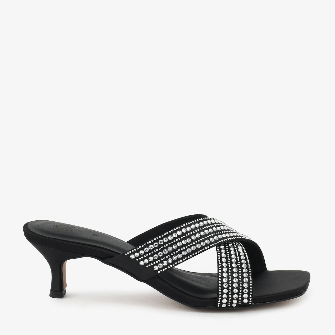 A chic pair designed for elevated comfort and graceful feminine appeal. The crystal-studded cross-strap upper brings a refined sparkle, making it ideal for dressy outings. Its mid-heel design offers easy wear while keeping the silhouette elegant and polished.