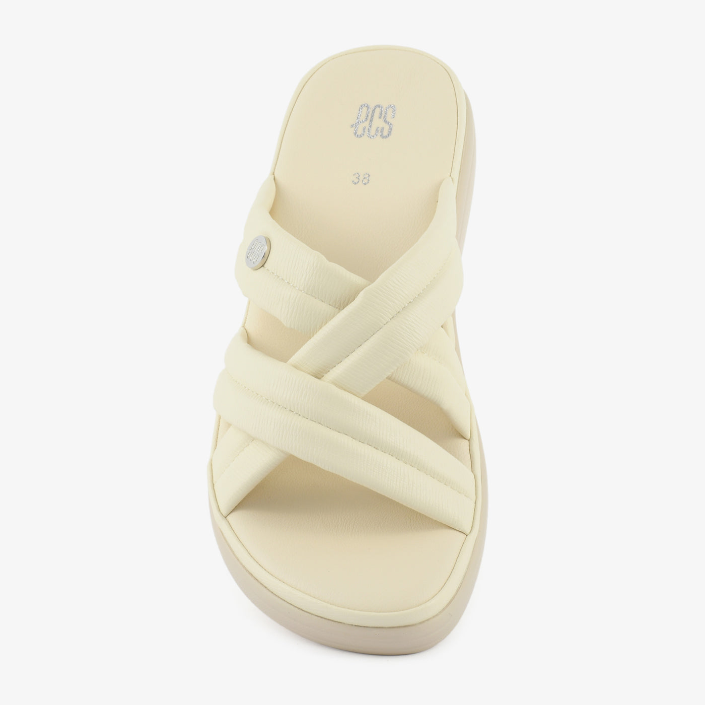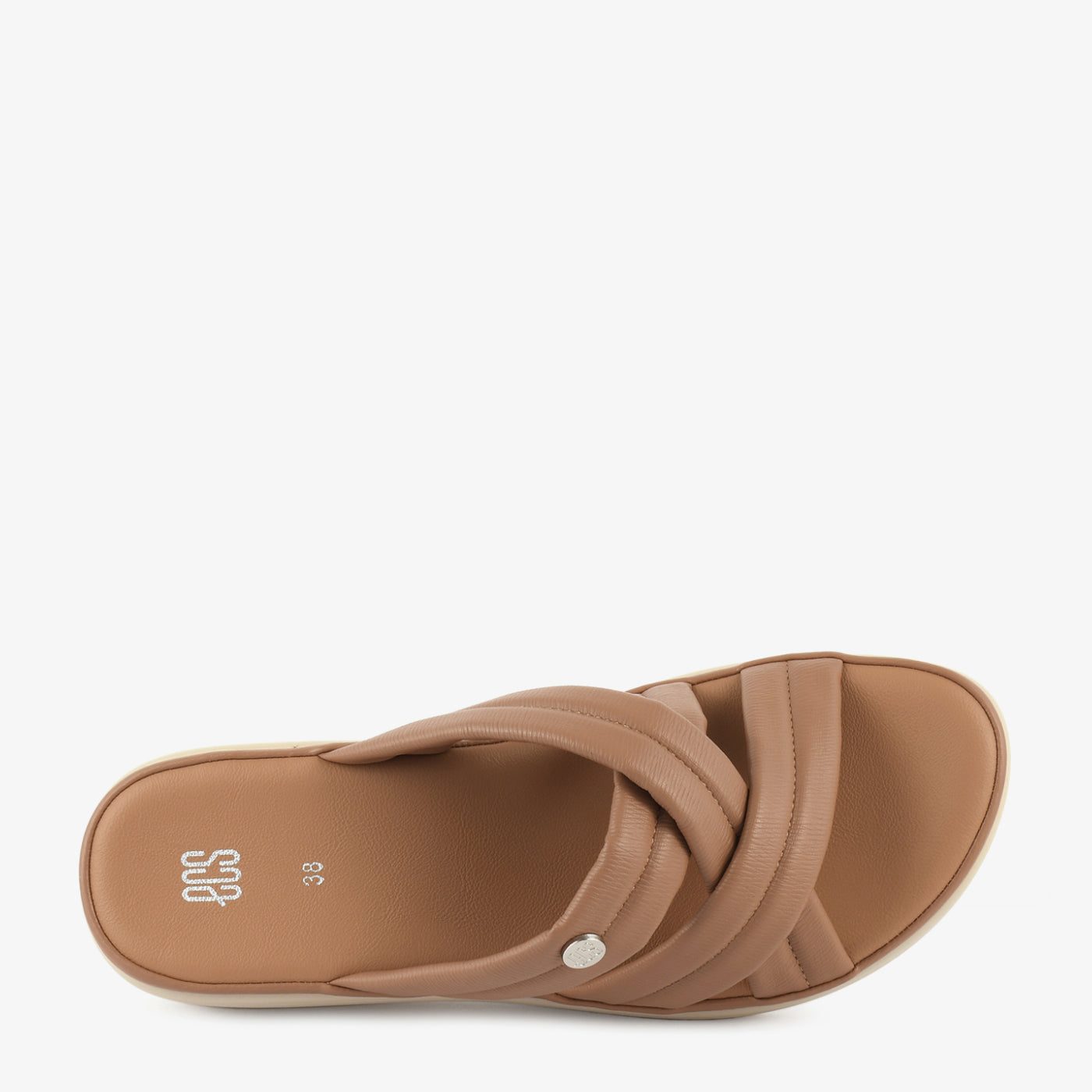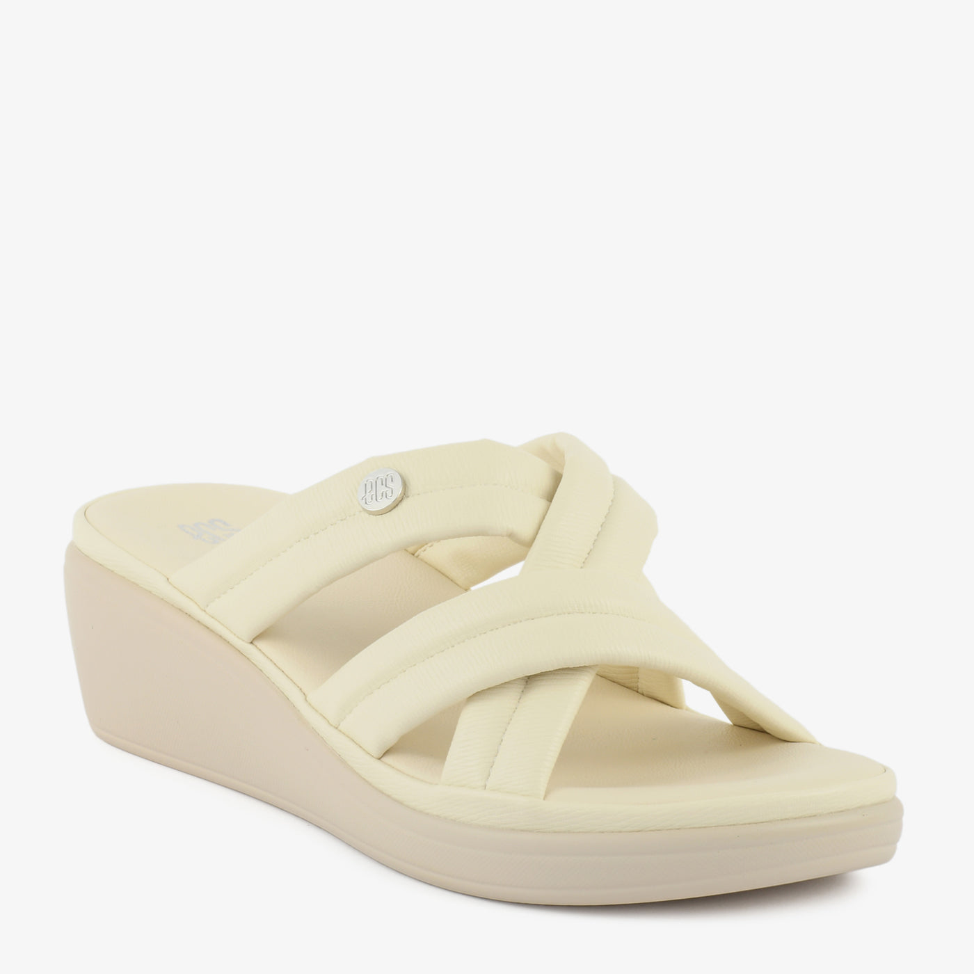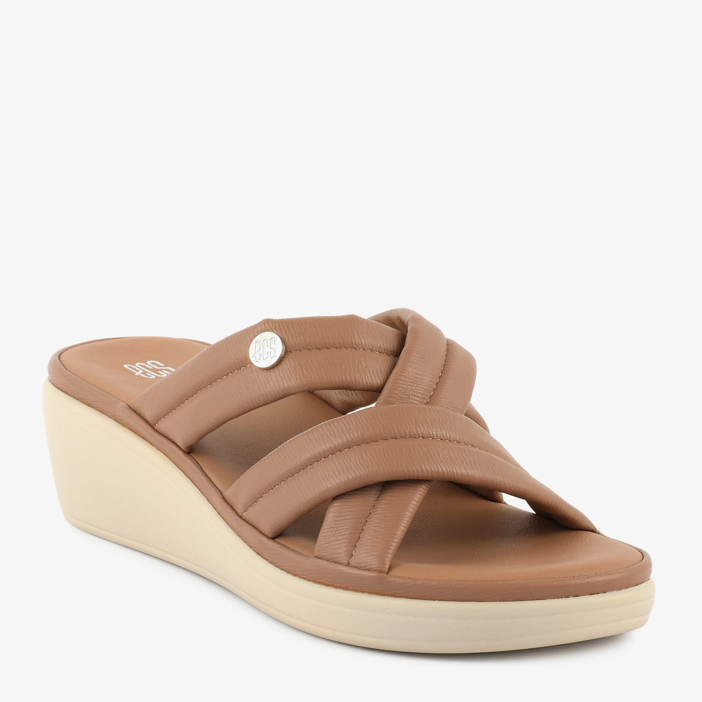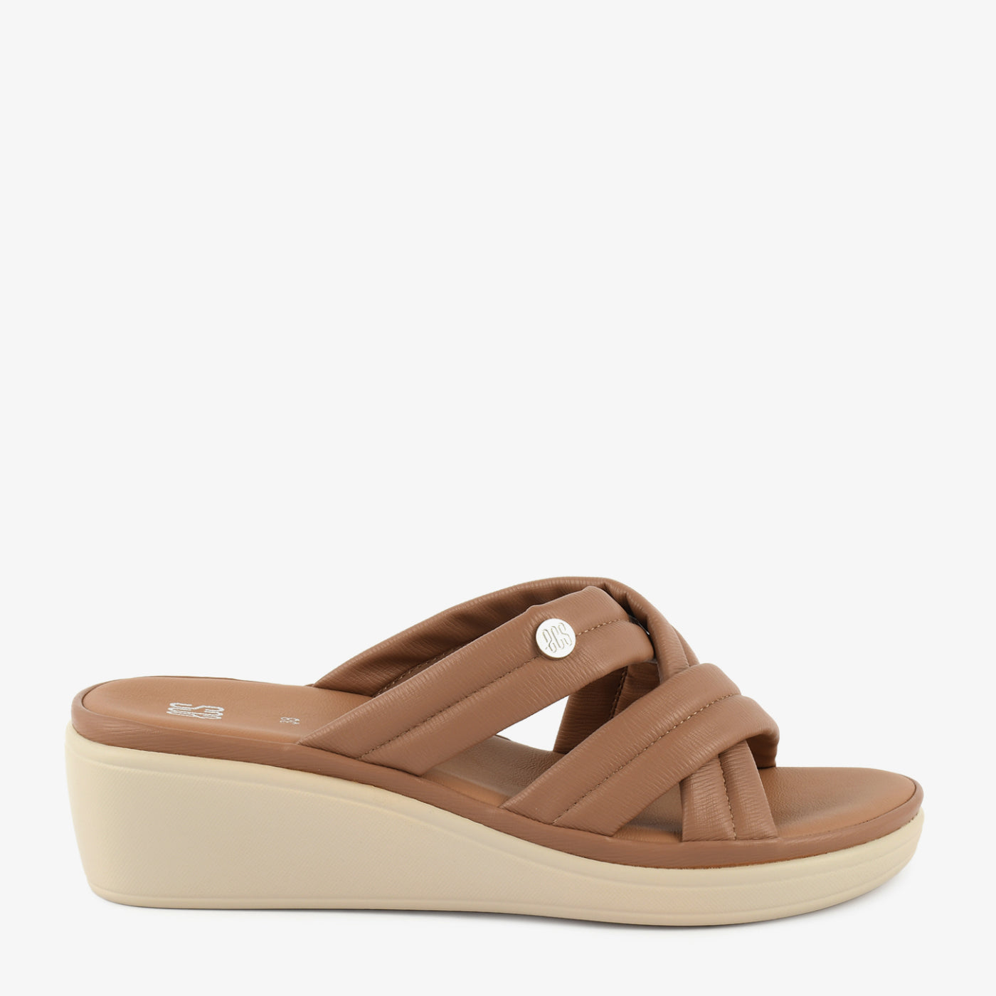 A supportive everyday slipper designed with padded criss-cross straps that offer secure grip and long-lasting comfort. The lightweight wedge base adds gentle elevation without compromising stability. Ideal for daily wear and all-day comfort needs.