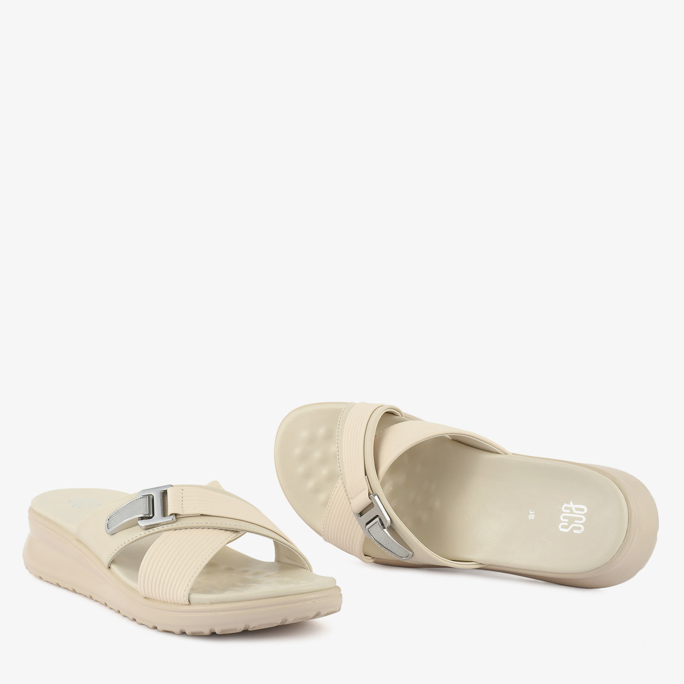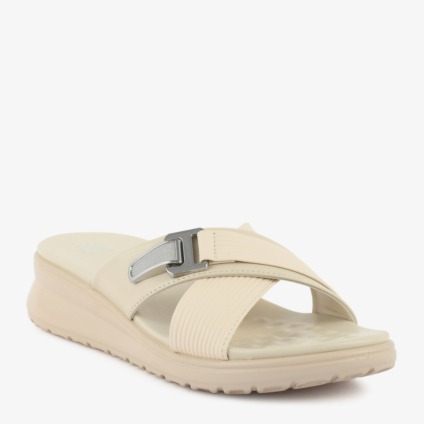Thoughtfully designed for everyday ease, the Comfort Link Slipper combines modern simplicity with reliable comfort. The sleek crossover upper is enhanced with a stylish metallic link accent that adds a refined contemporary touch. Its slip-on design ensures effortless wear, while the cushioned footbed provides soft support for long-lasting comfort. The supportive sole offers stability and grip, making it suitable for daily outings, relaxed walks, or casual wear.