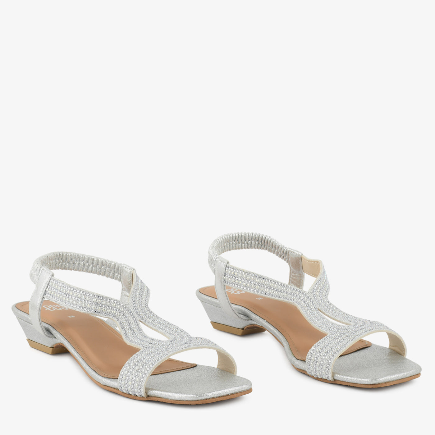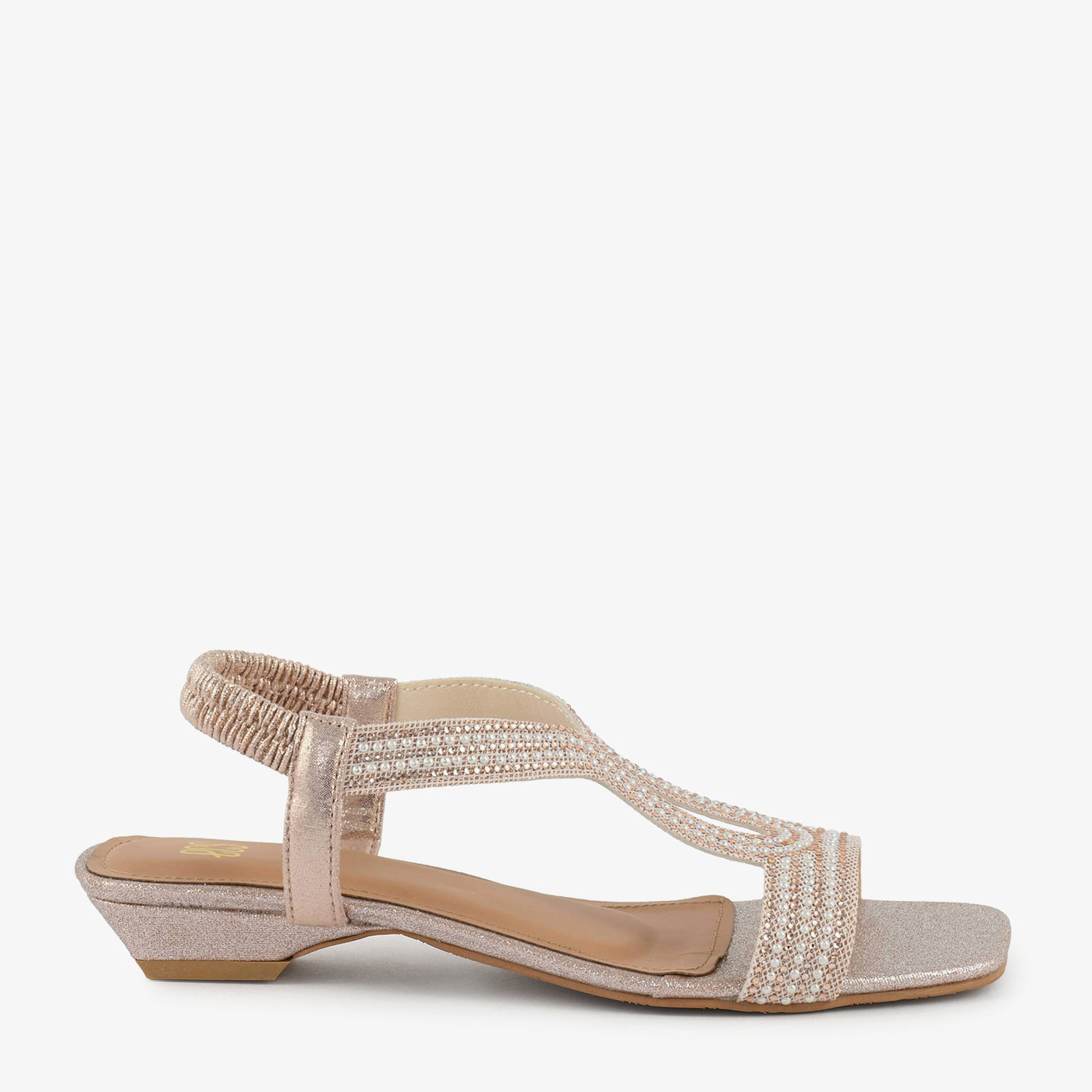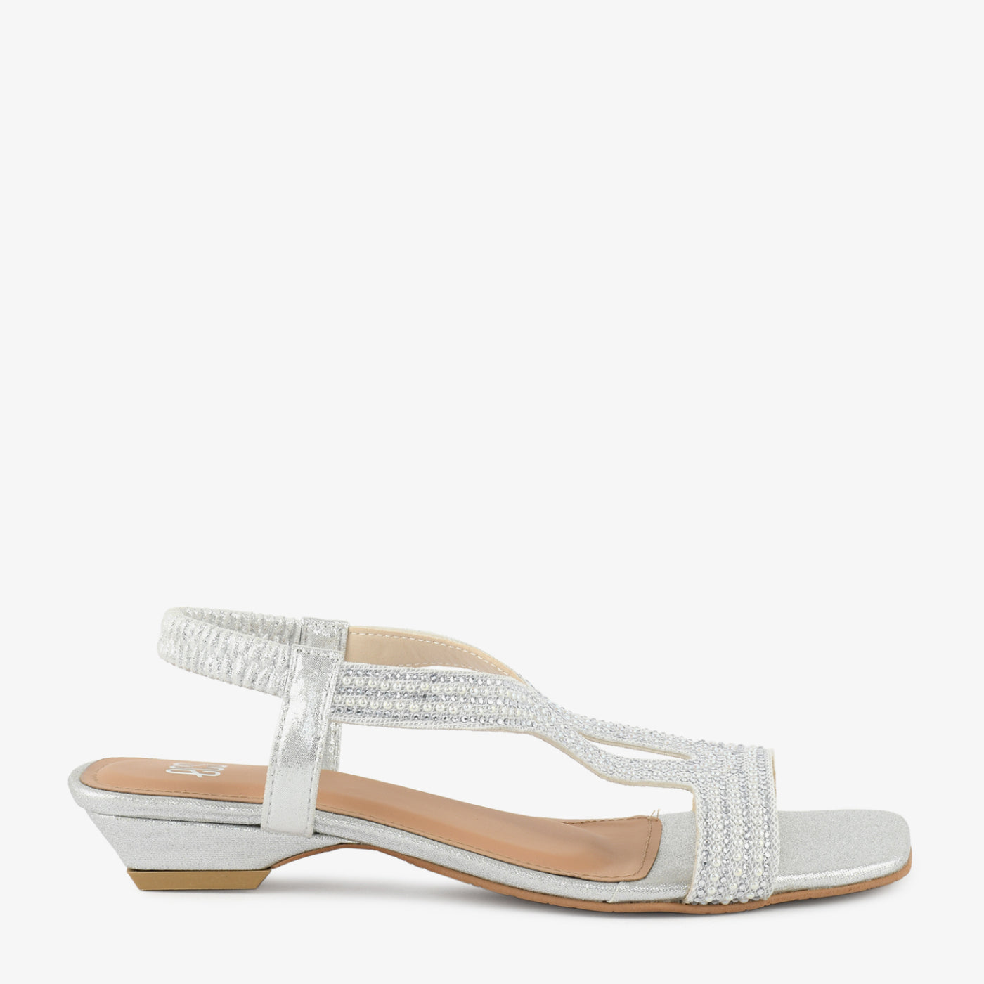 Designed with sparkling micro-stones and a supportive slingback, this sandal blends comfort with elegance. Its low wedge heel provides lift without strain, making it great for long events or everyday outings.