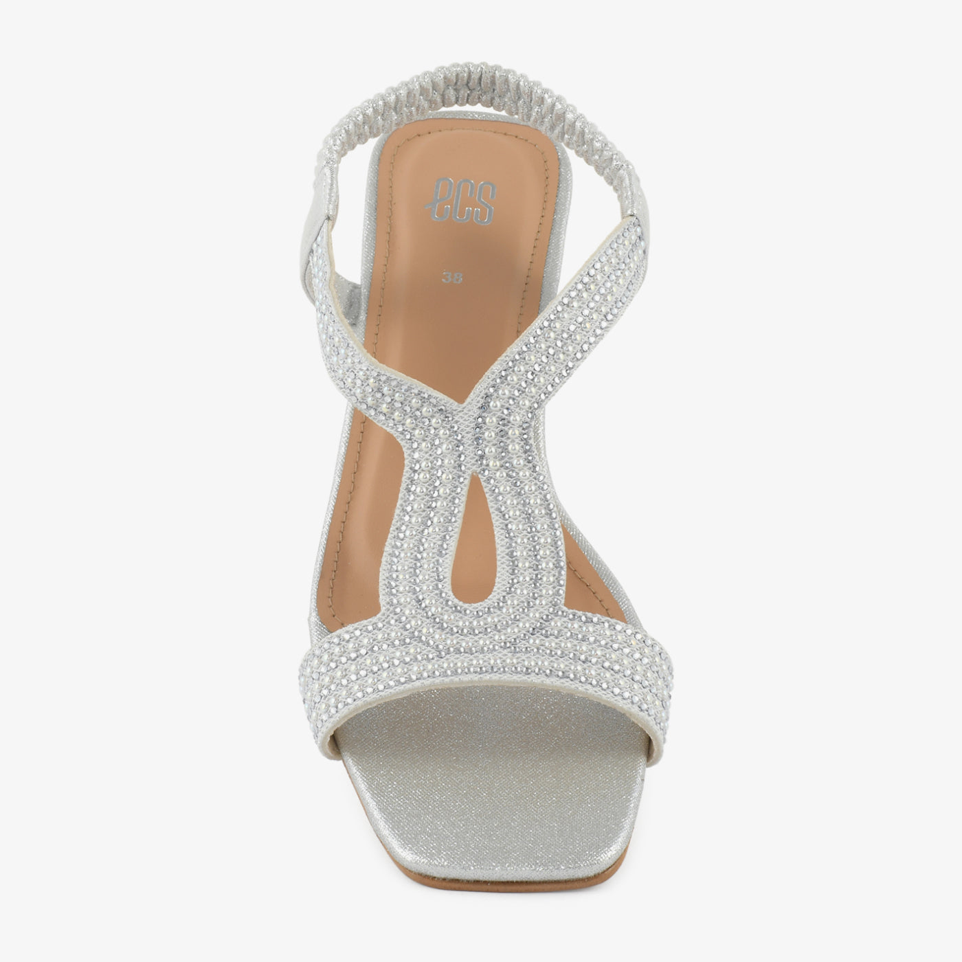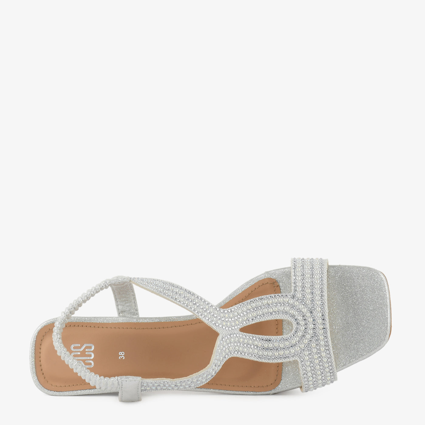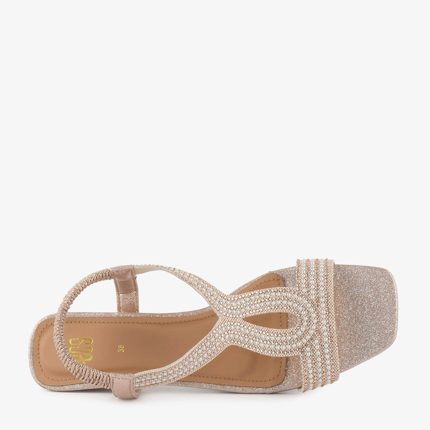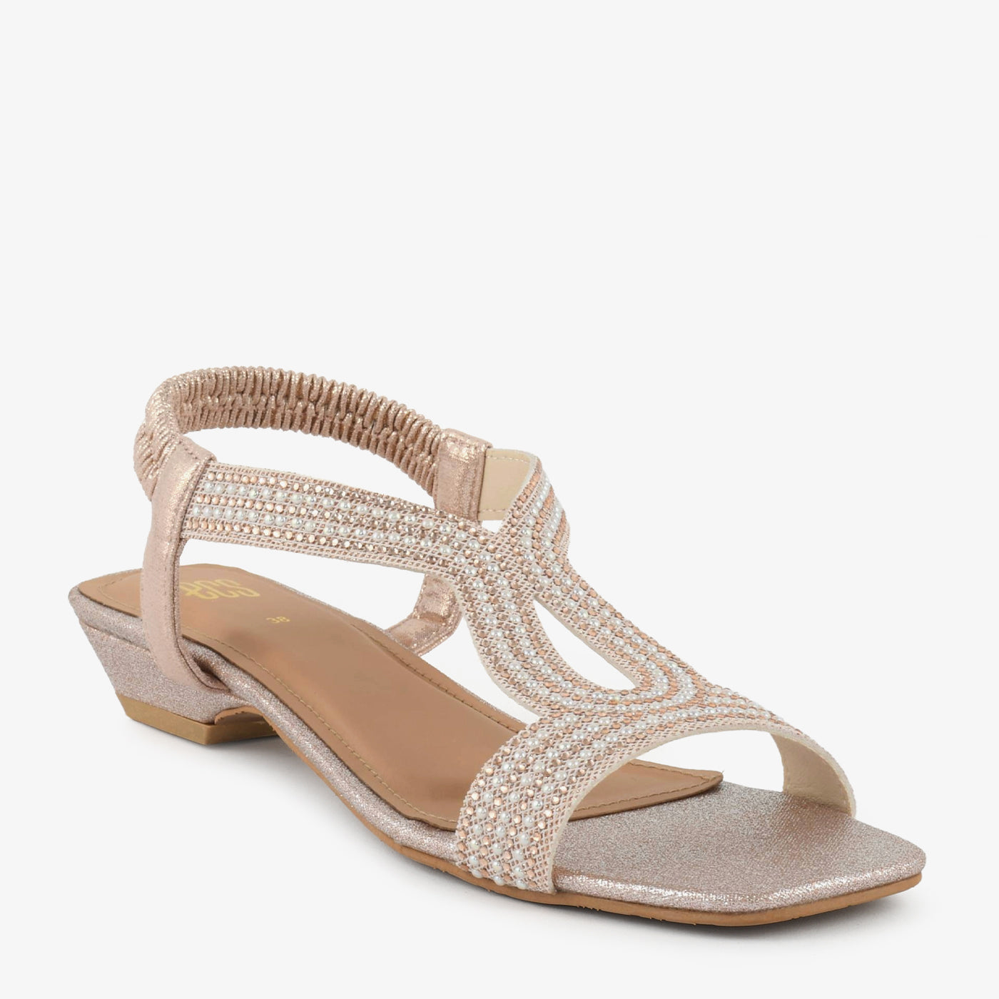 Designed with sparkling micro-stones and a supportive slingback, this sandal blends comfort with elegance. Its low wedge heel provides lift without strain, making it great for long events or everyday outings.