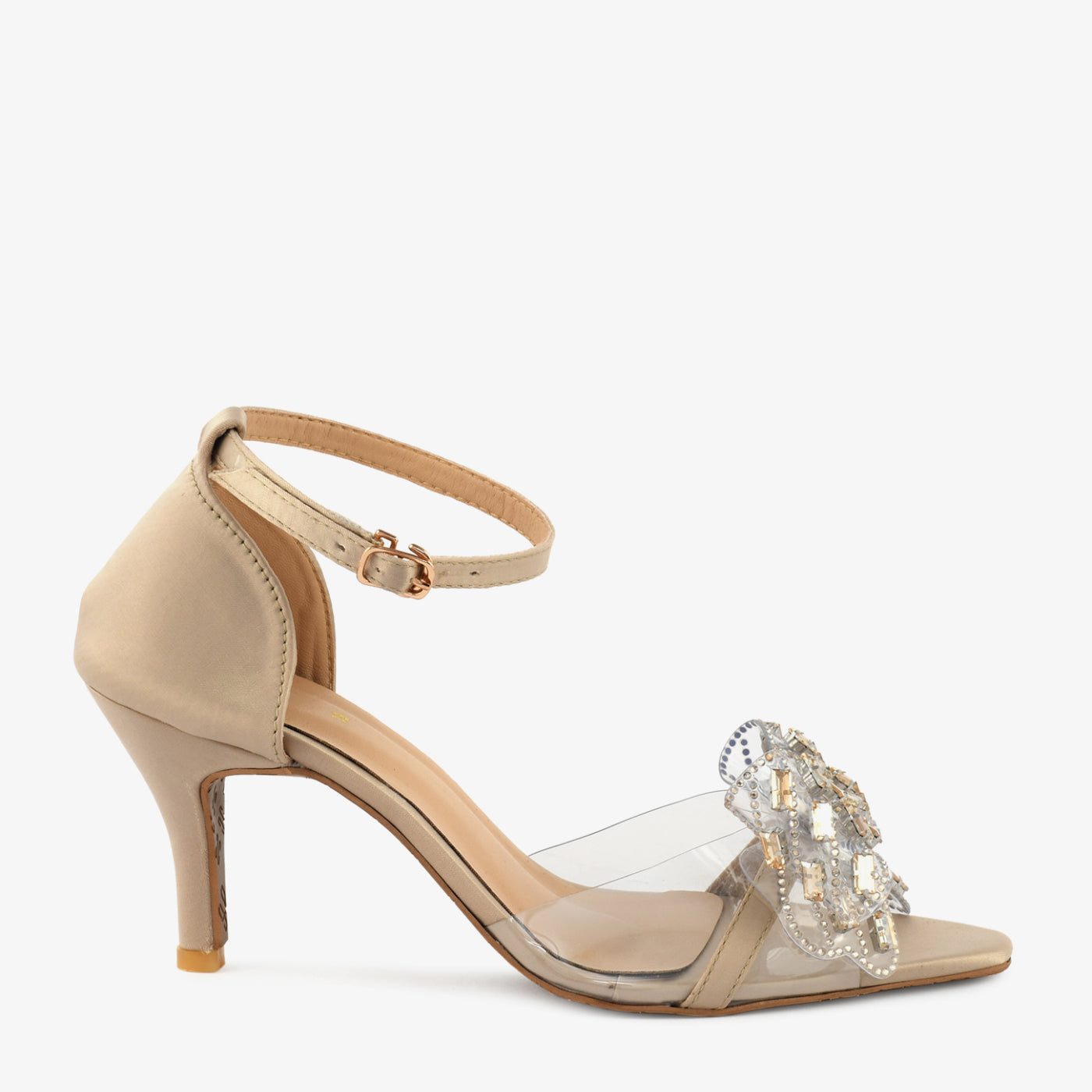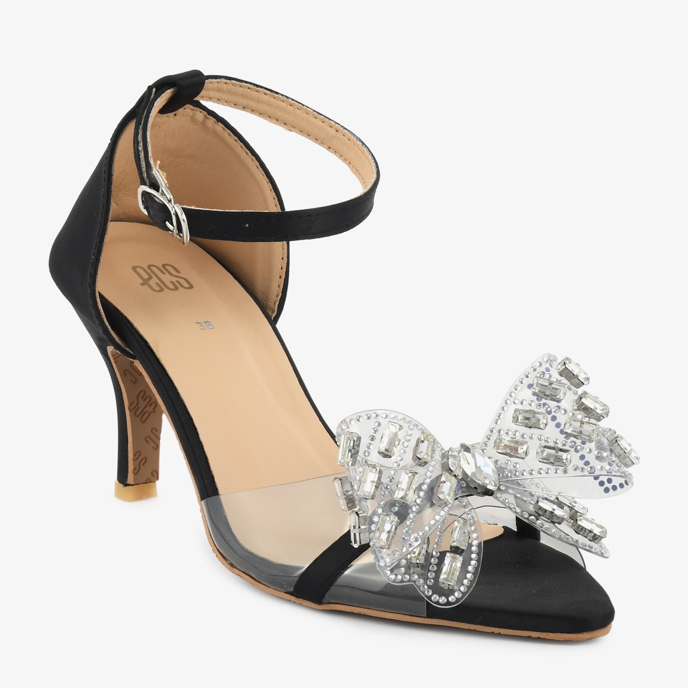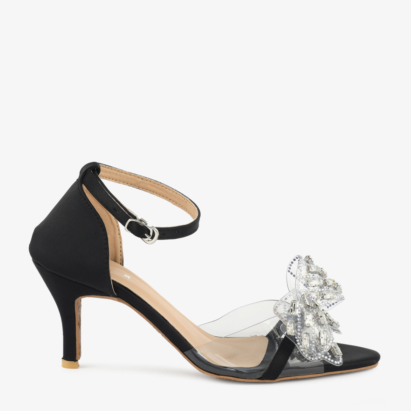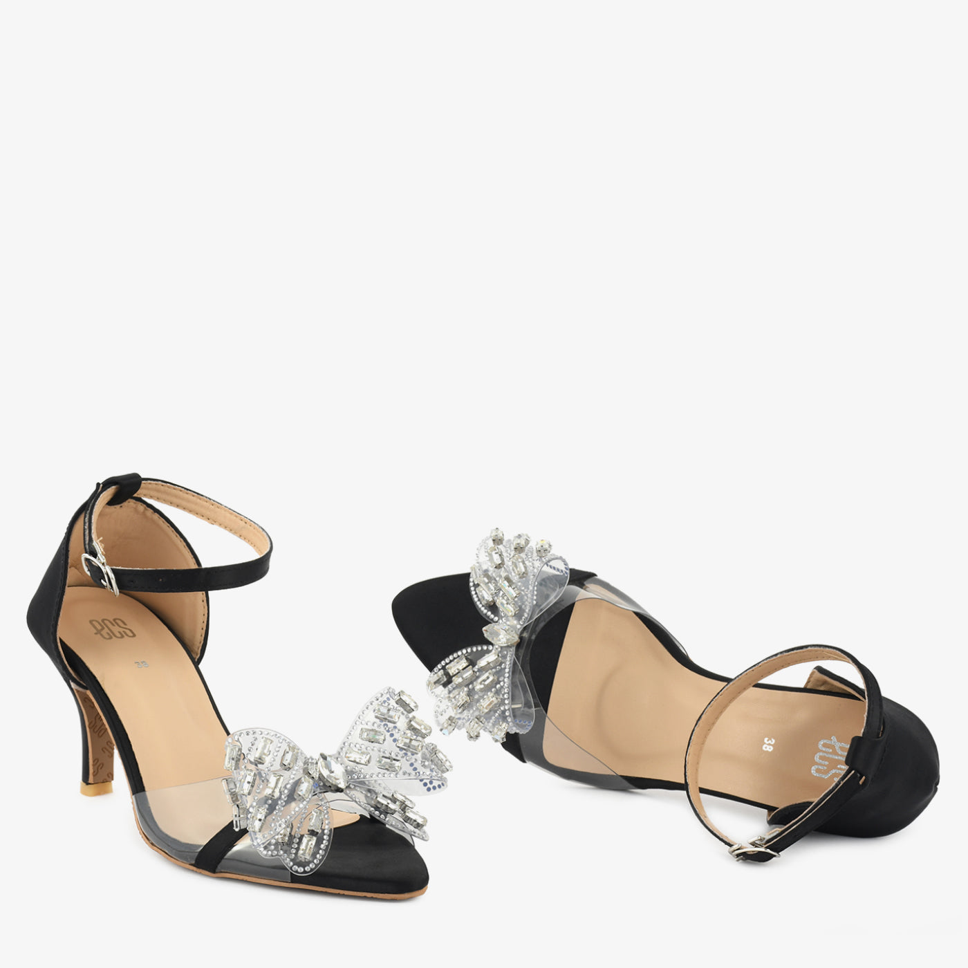 A delicate evening sandal designed to bring a touch of sparkle to formal occasions. The slim silhouette, paired with a shimmering crystal bow, adds refined femininity, while the supportive heel ensures confident strides. Its clear strap detail enhances elegance, making it ideal for festive gatherings, weddings, and modest party ensembles. Designed for women who enjoy graceful sandal styling with a polished finish.