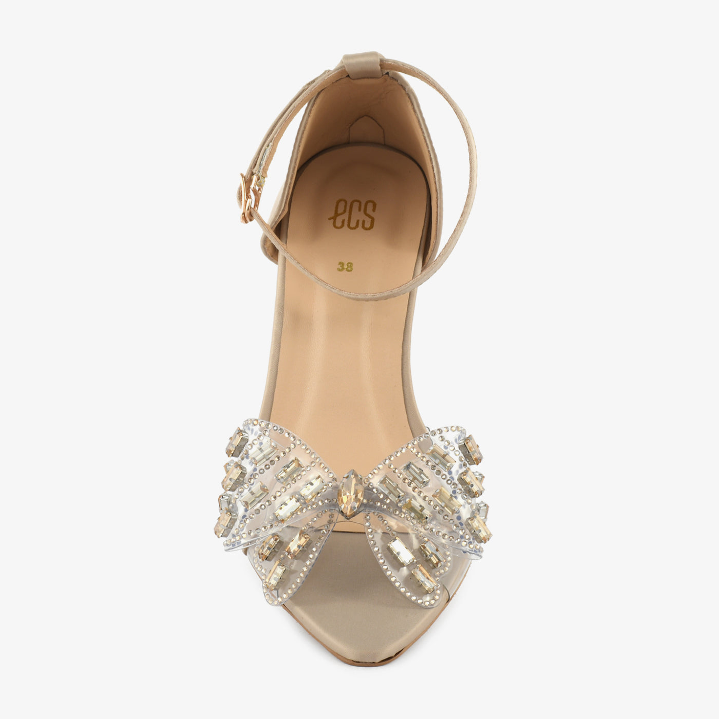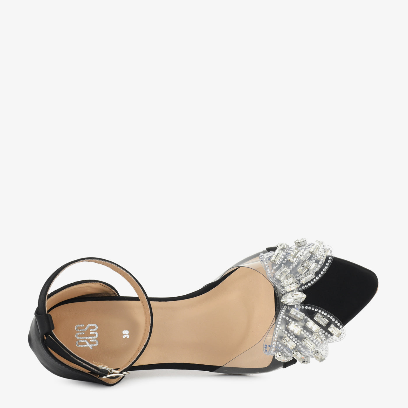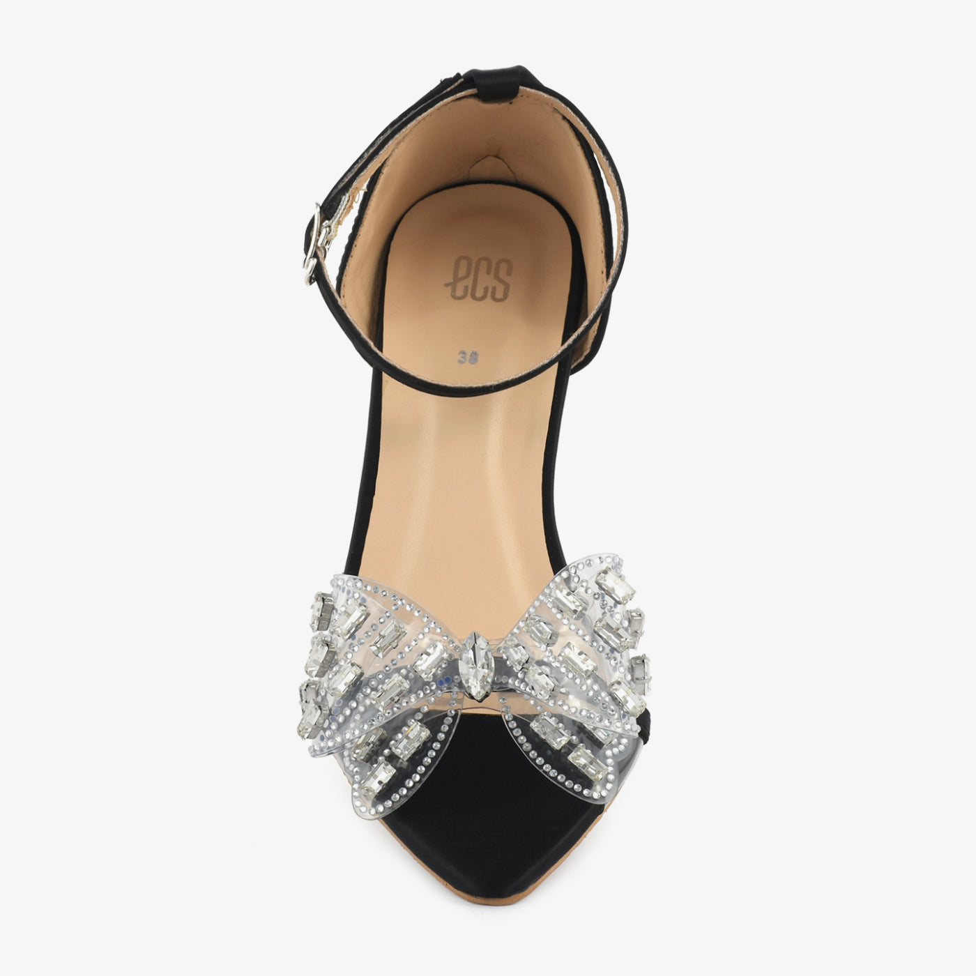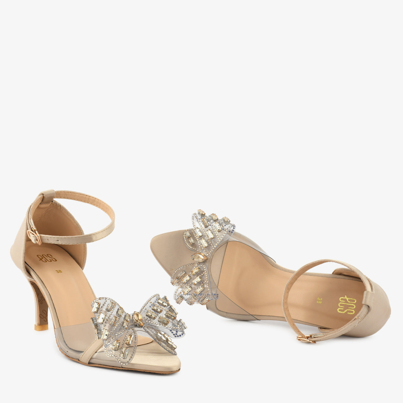 A delicate evening sandal designed to bring a touch of sparkle to formal occasions. The slim silhouette, paired with a shimmering crystal bow, adds refined femininity, while the supportive heel ensures confident strides. Its clear strap detail enhances elegance, making it ideal for festive gatherings, weddings, and modest party ensembles. Designed for women who enjoy graceful sandal styling with a polished finish.
