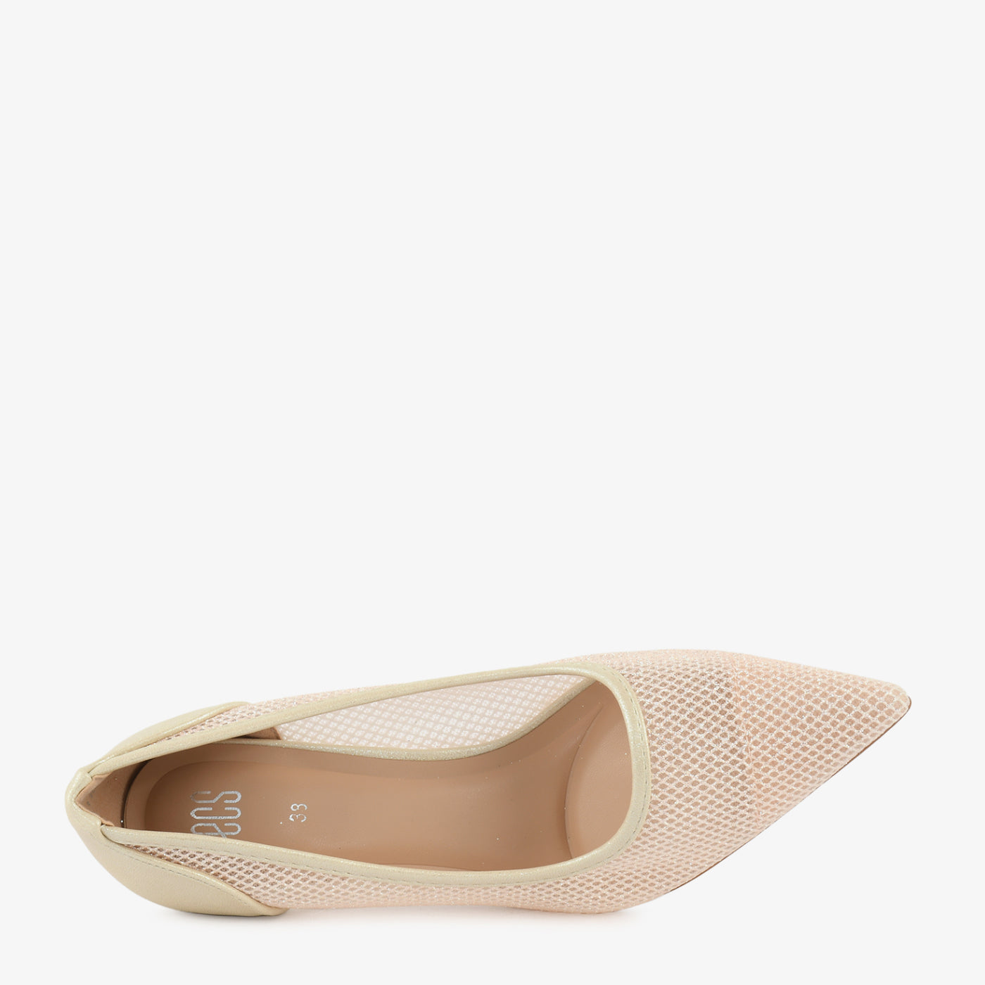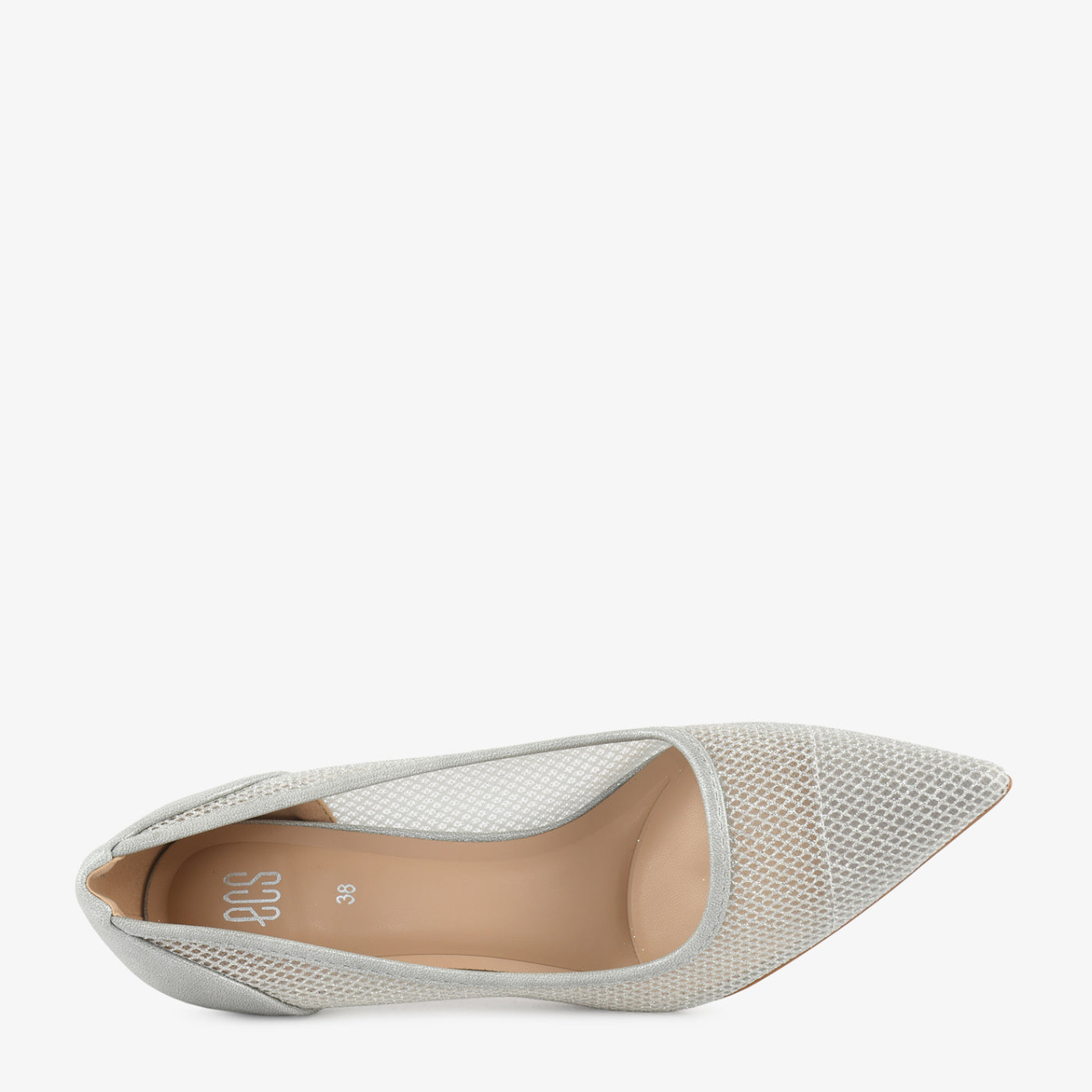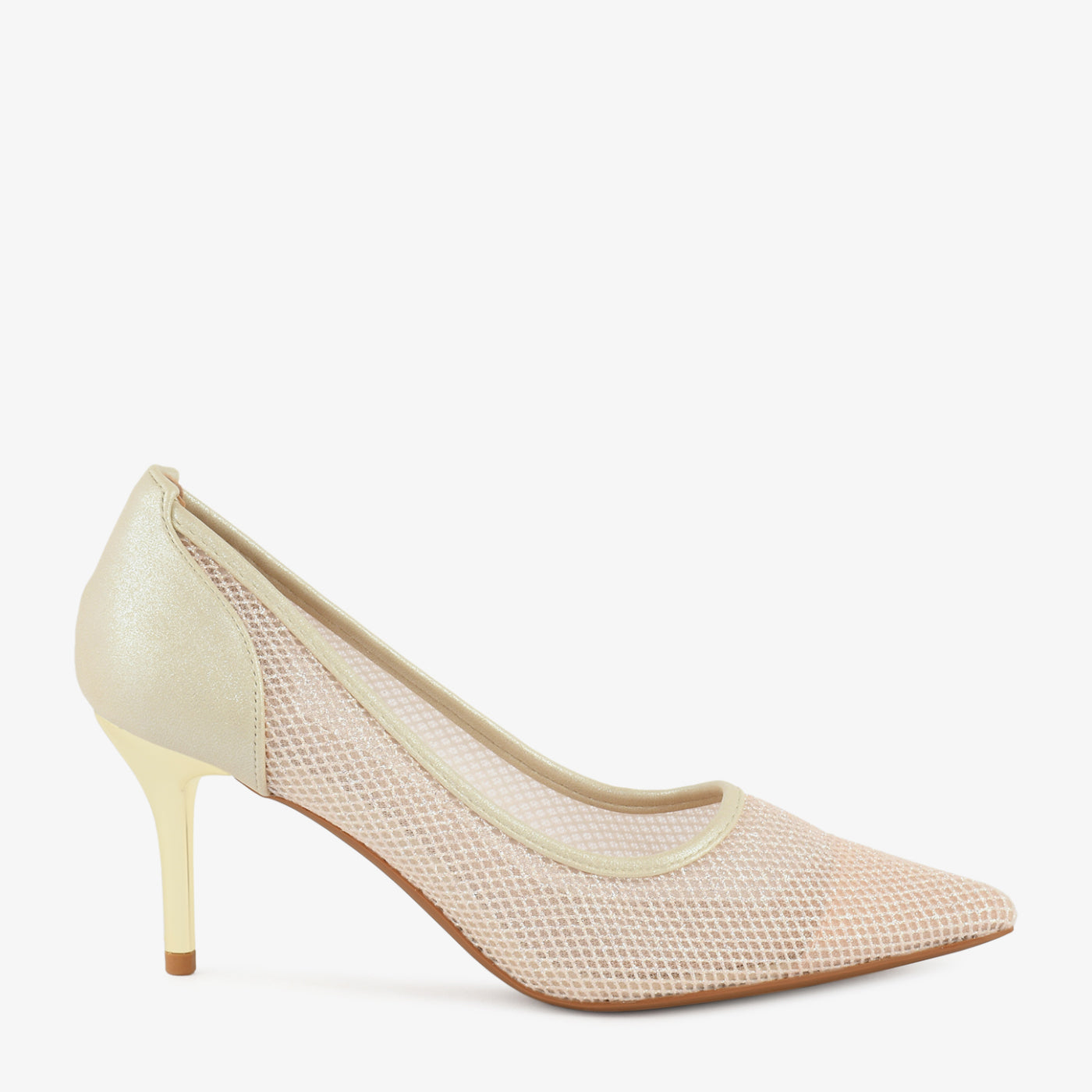 A sophisticated pointed coat shoe crafted with a mesh-textured upper that blends modern detailing with classic structure. The slender heel adds graceful height ideal for evening functions and formal settings....