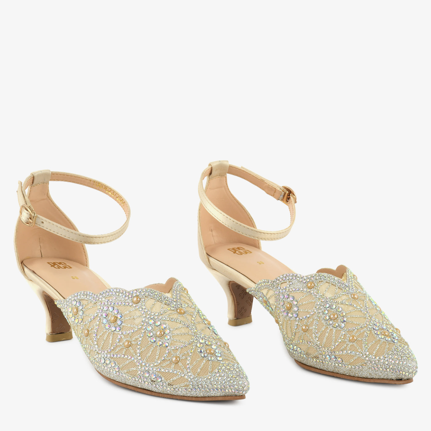 • Material: Embroidered mesh upper with pearl & bead embellishment