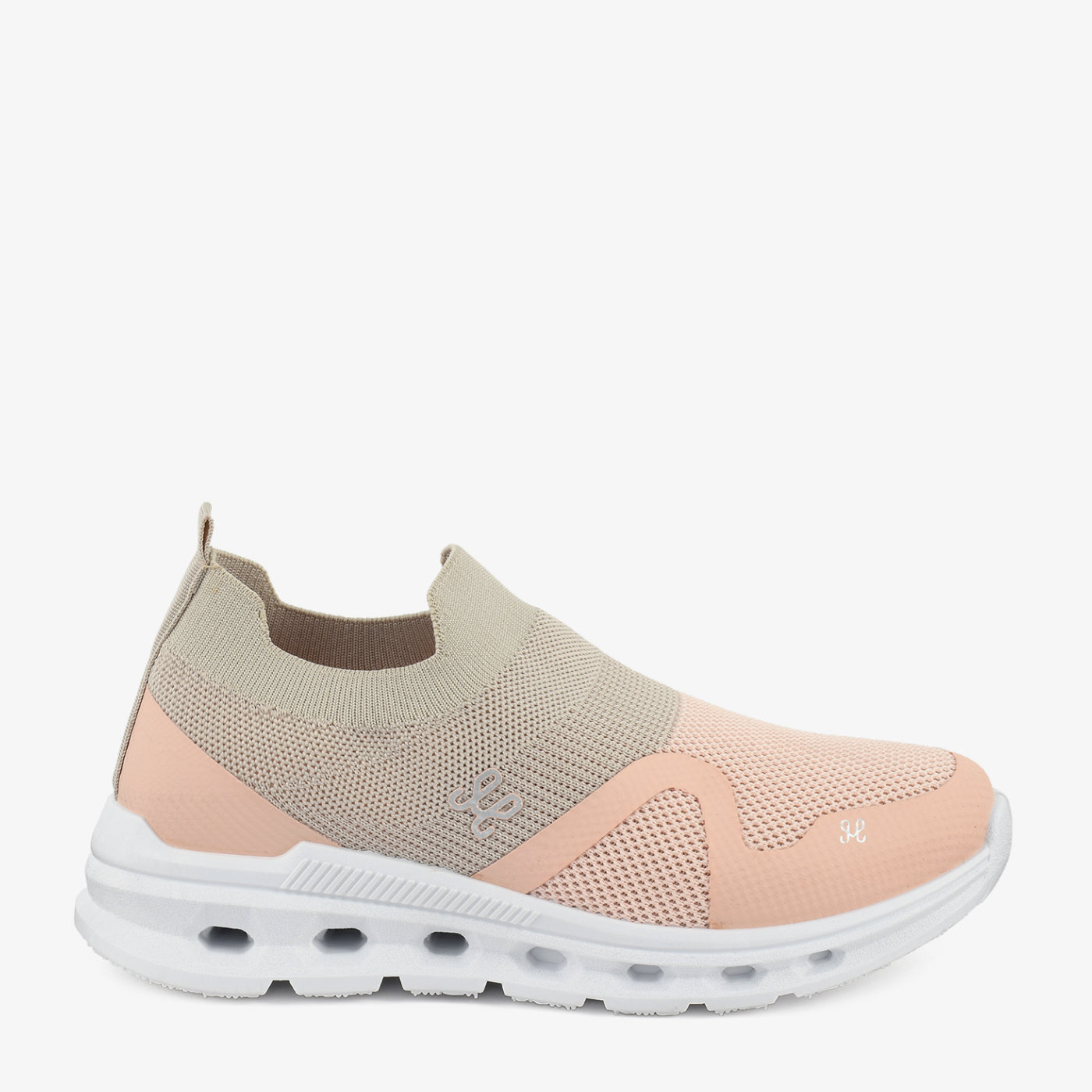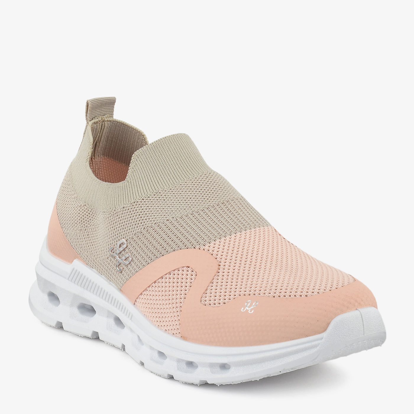 Designed for active comfort, this modern peach and beige slip-on blends style with performance. The breathable knit upper adapts to your movement, making it perfect for daily errands or walks. Lightweight cushioning keeps your steps soft and effortless all day. A chic essential for an on-the-go lifestyle.