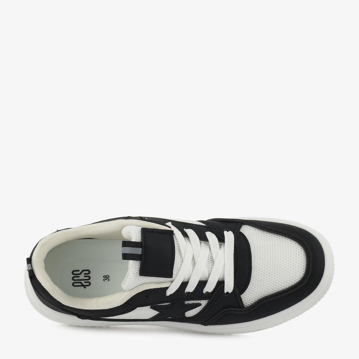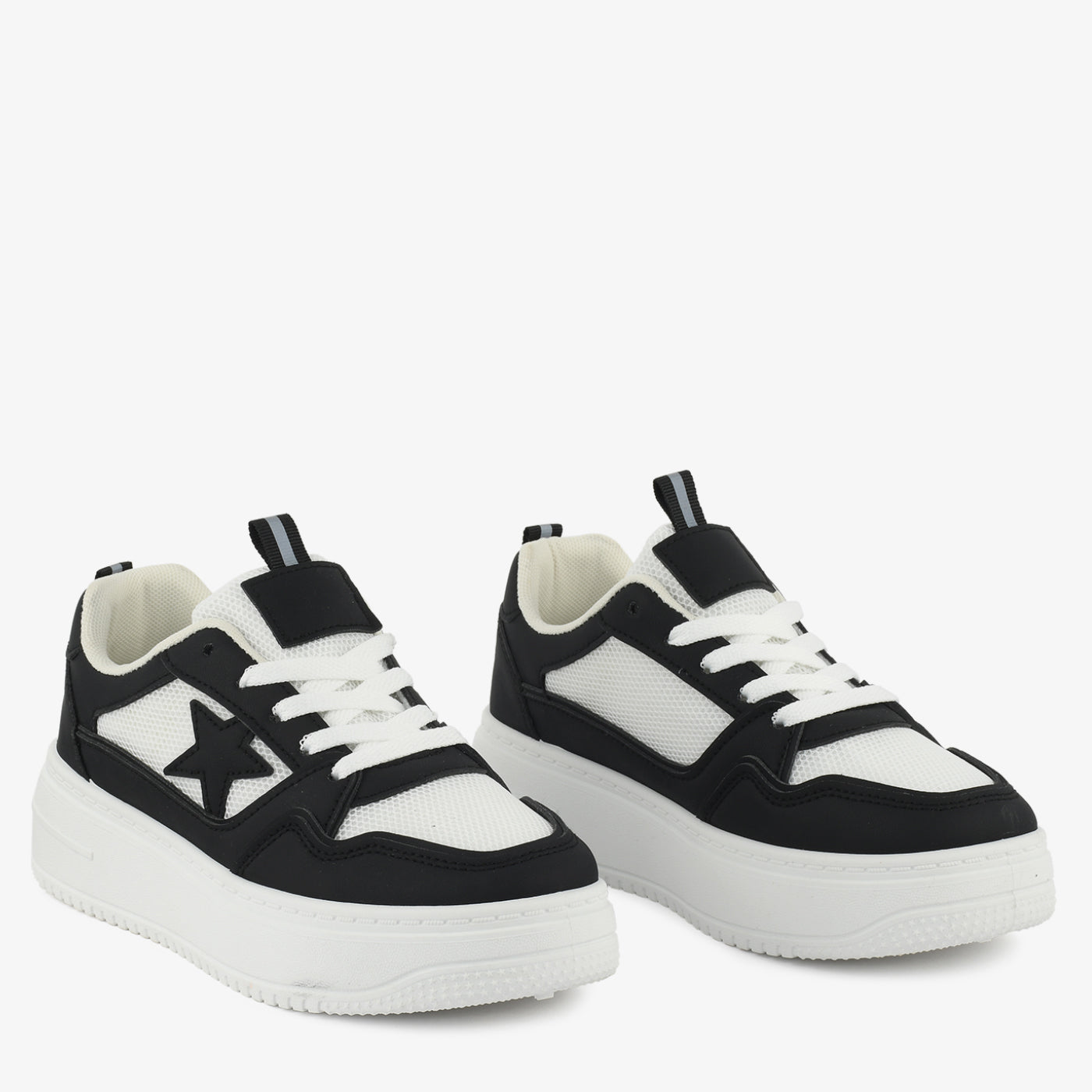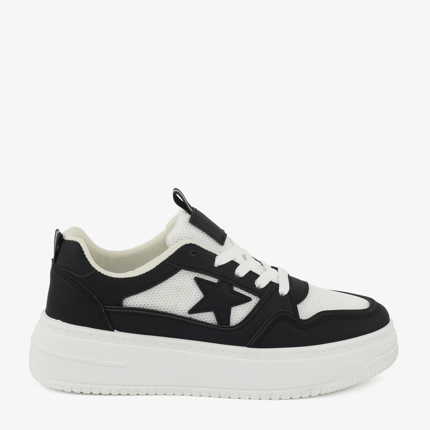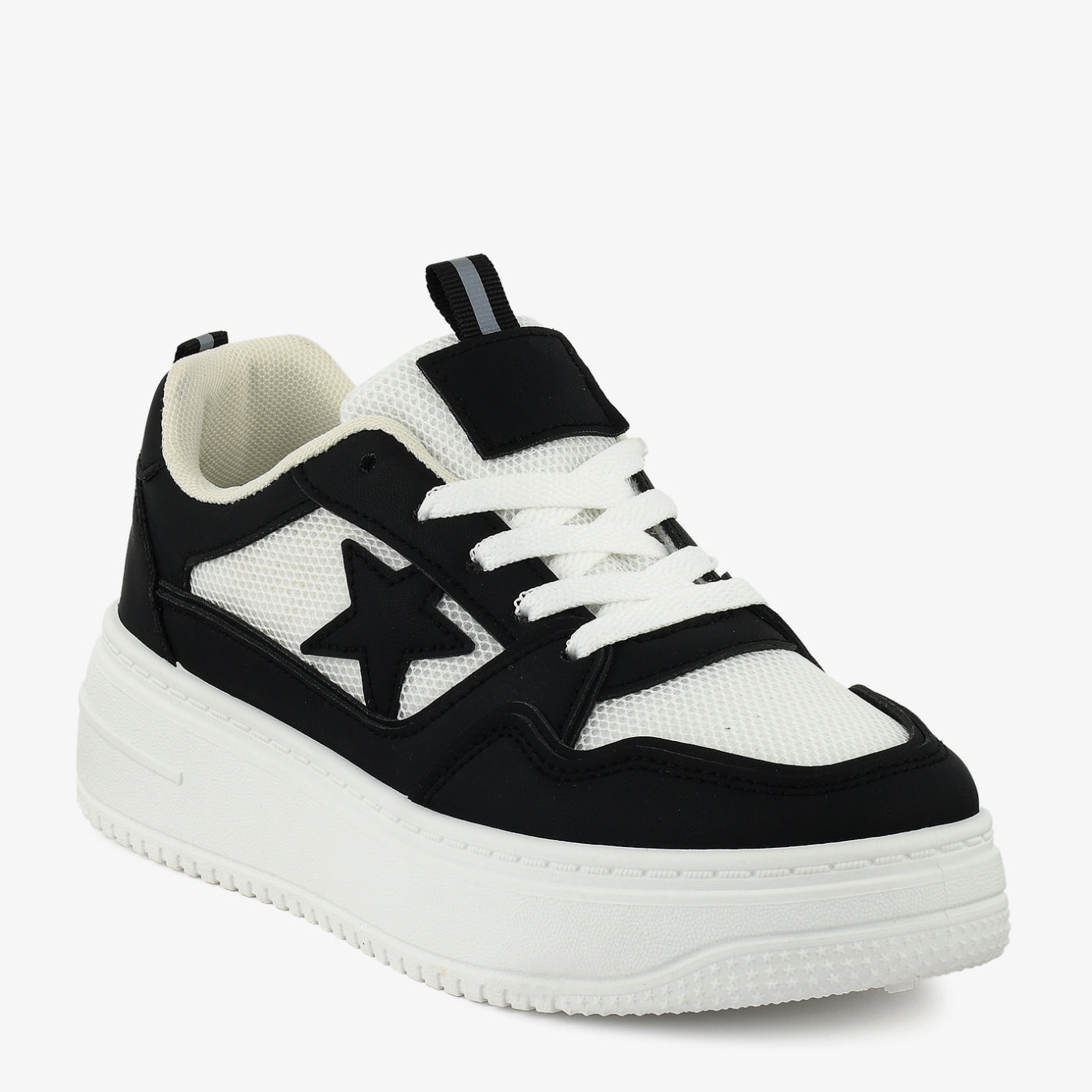 A trendy design combining sporty comfort with bold details. The raised sole provides added height and cushioning for active wear. Its star-accent design adds playful character while maintaining everyday versatility. Ideal for casual outings or weekend wear.