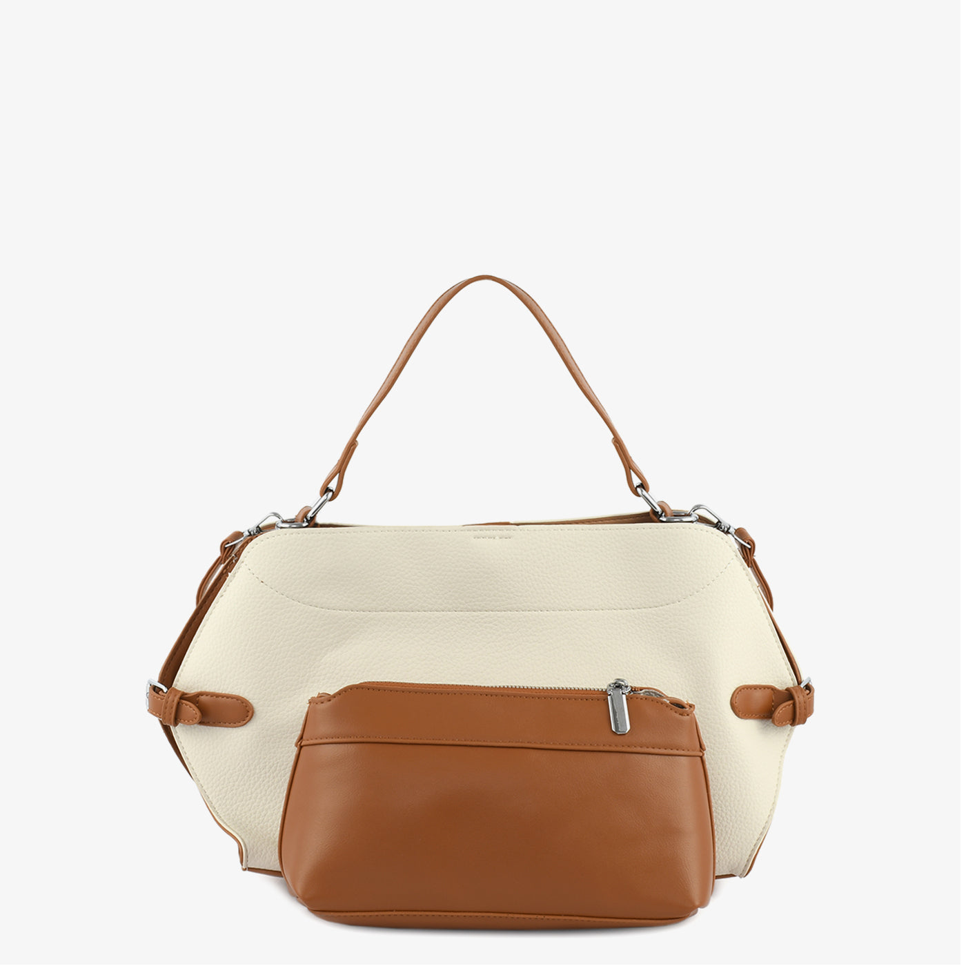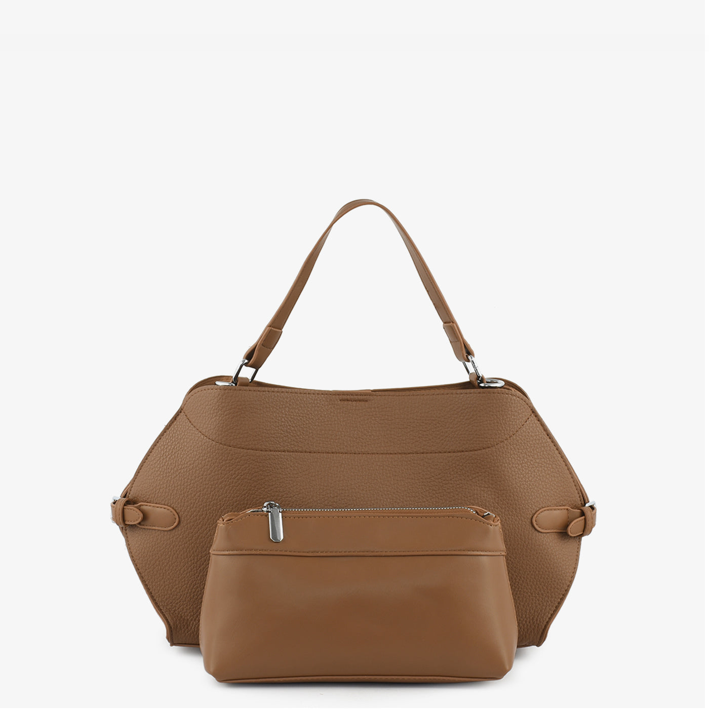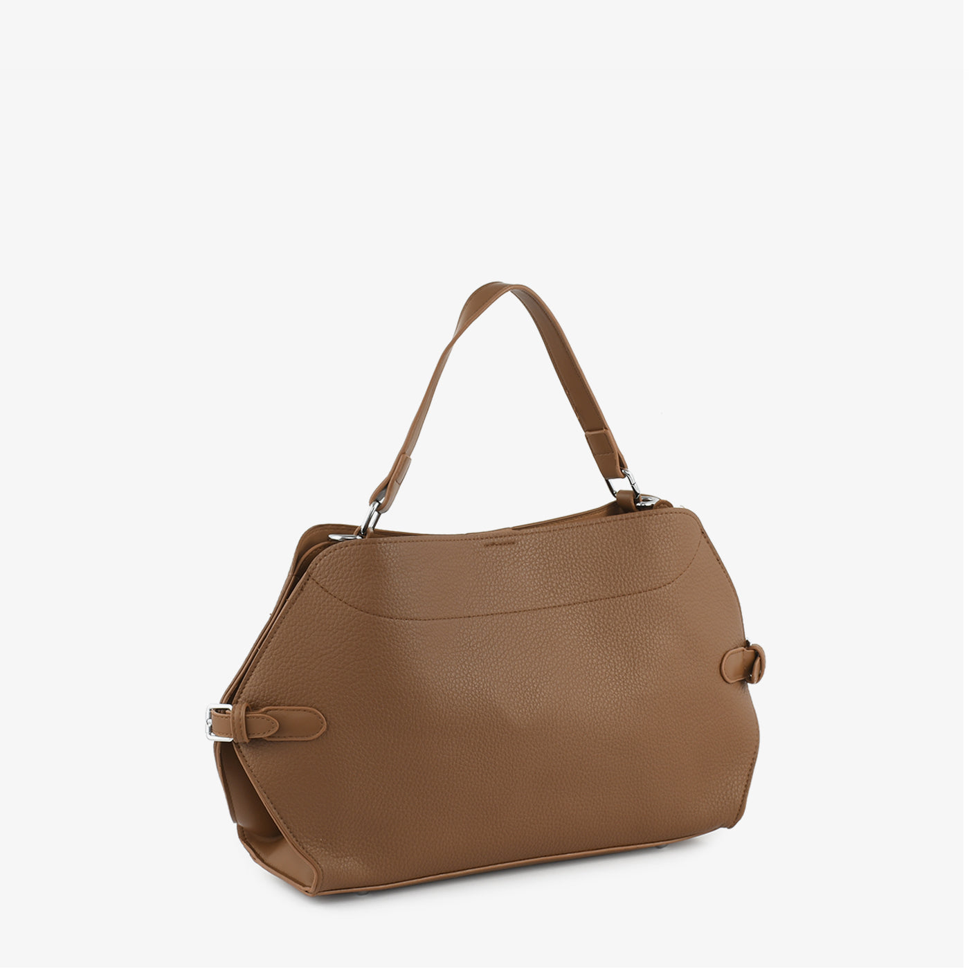 A sophisticated handbag featuring a sculpted silhouette designed for women who appreciate unique structures. Its spacious interior and sturdy handles make it practical for daily routines, while the clean finish ensures a polished, elegant appearance. Ideal for work, events, and refined modest fashion styling.