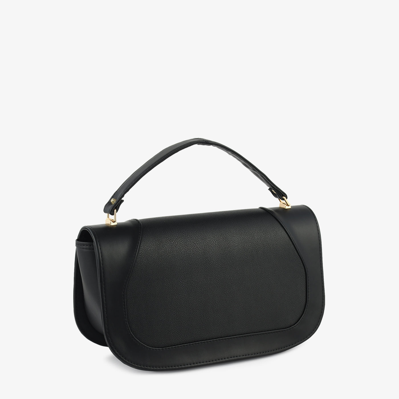 Sleek and versatile, the "Classic Handle" bag features a smooth black finish with a structured silhouette and top handle, perfect for everyday elegance.
