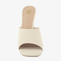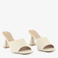 Step into contemporary elegance with the "Vira Block Heel Slipper." These stylish heeled slippers feature an open toe and a distinctive square block heel.