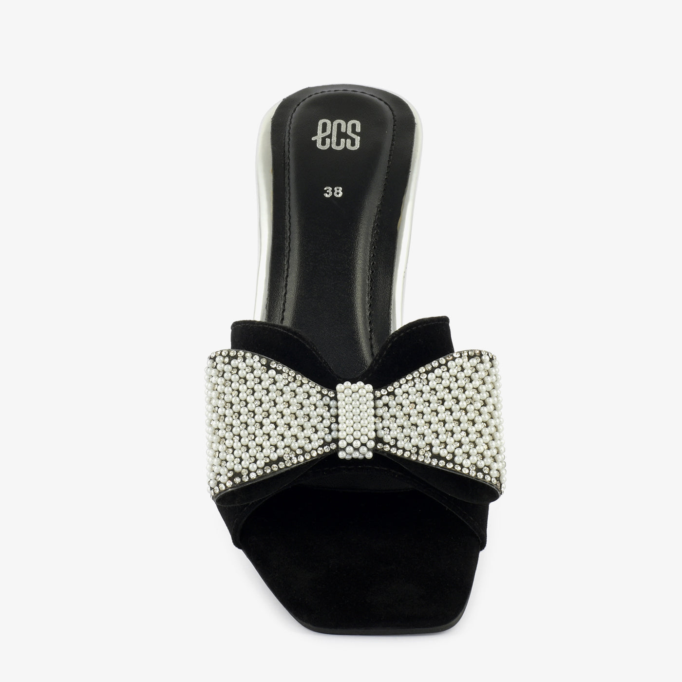 Styling Tip: These slippers are ideal for adding a chic touch to your evening ensembles or special occasion wear. Pair them with elegant dresses, tailored trousers, or festive attire to highlight their embellished bow detail. They are suitable for dinners, gatherings, or any event where you want to combine comfort with a touch of glamour.