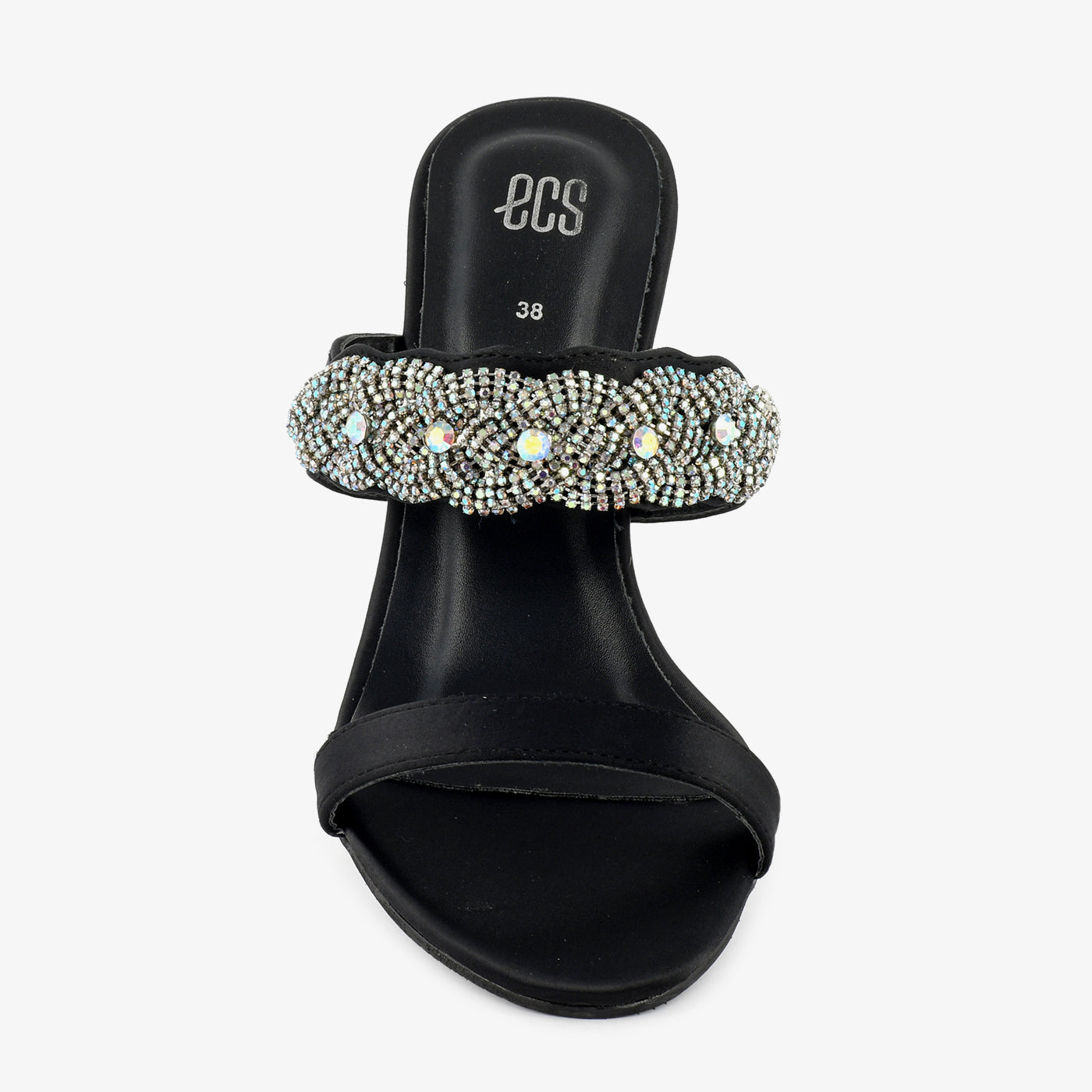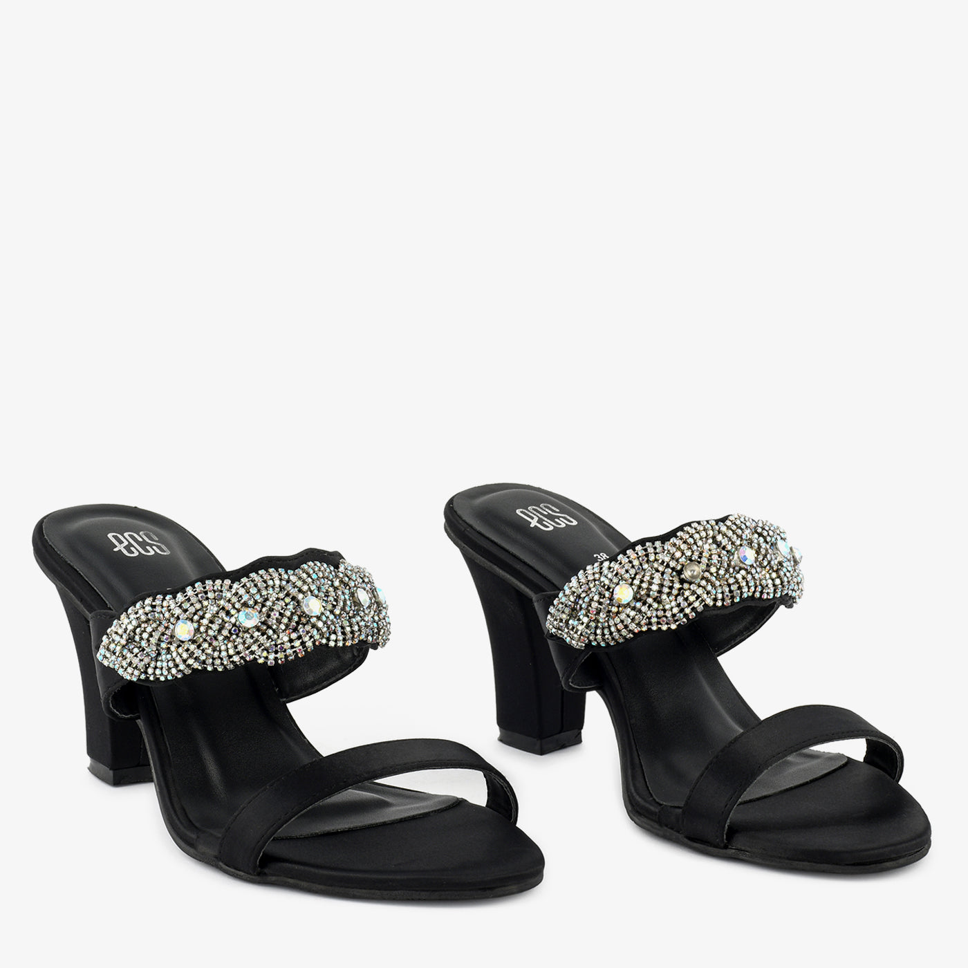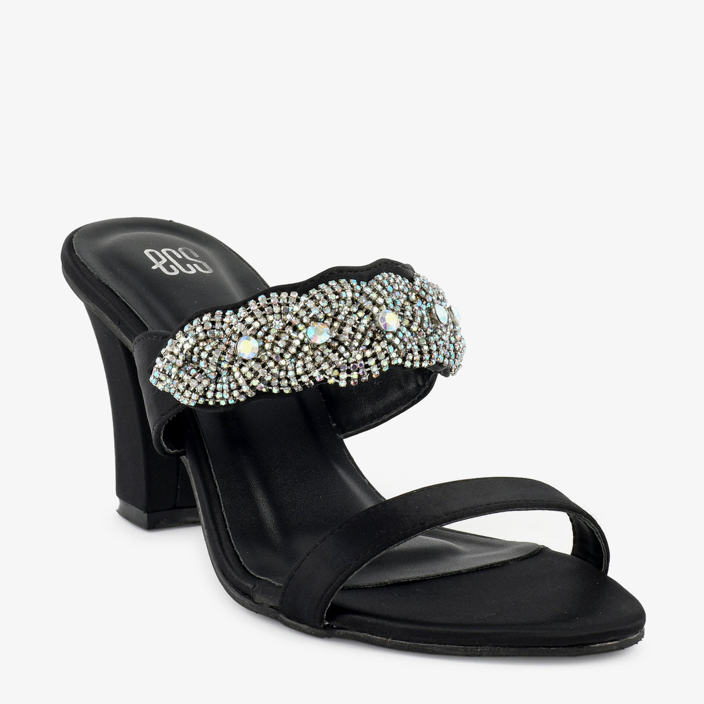 Shine effortlessly in these high-heel sandals featuring a crystal-embellished floral upper. The slender heel and double-strap design offer both glamour and secure fit.