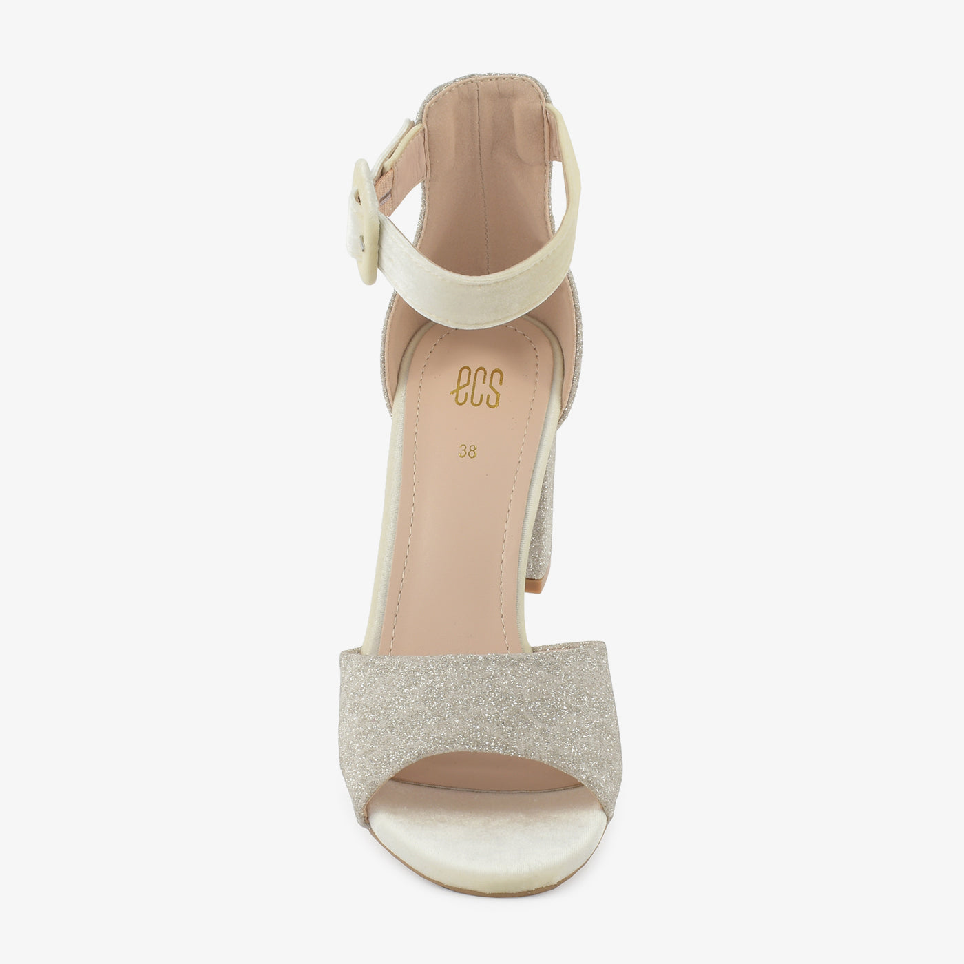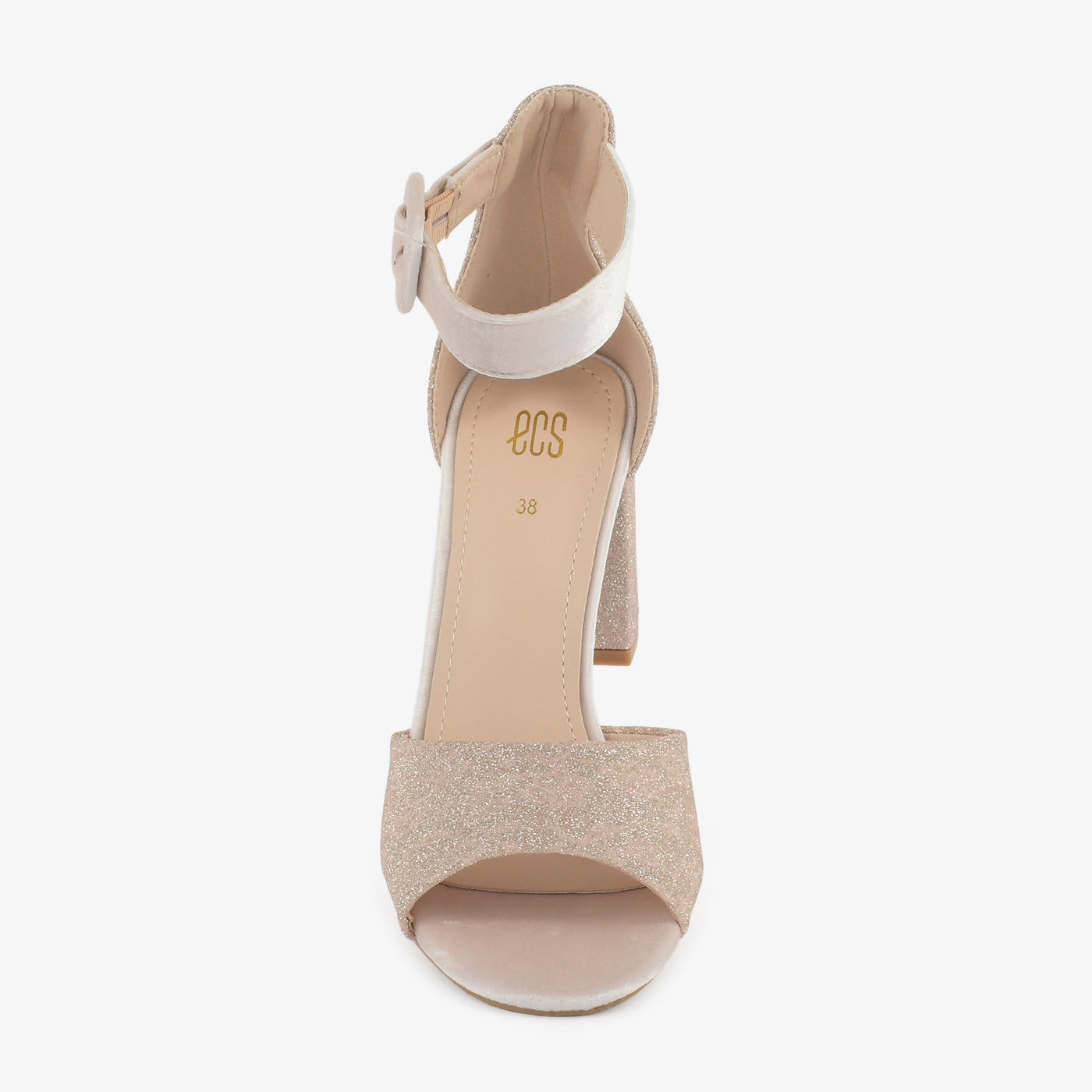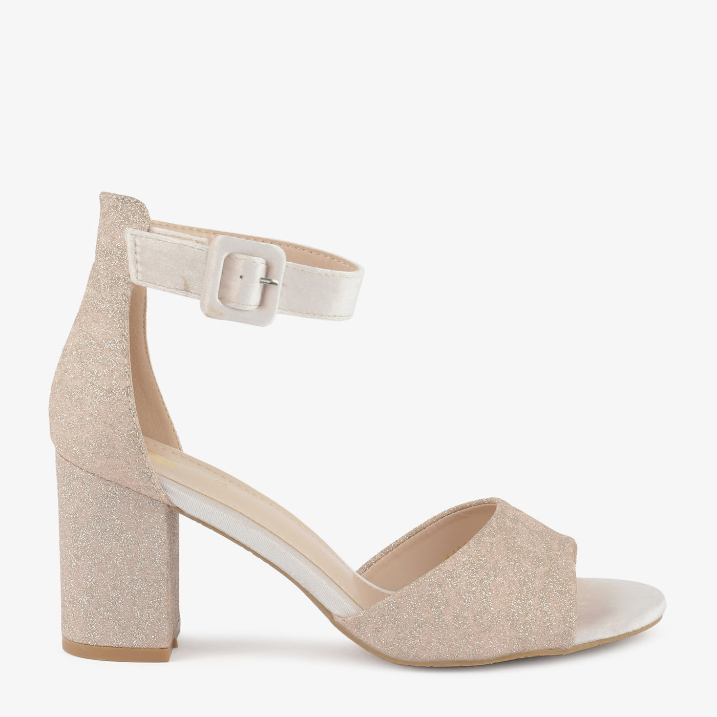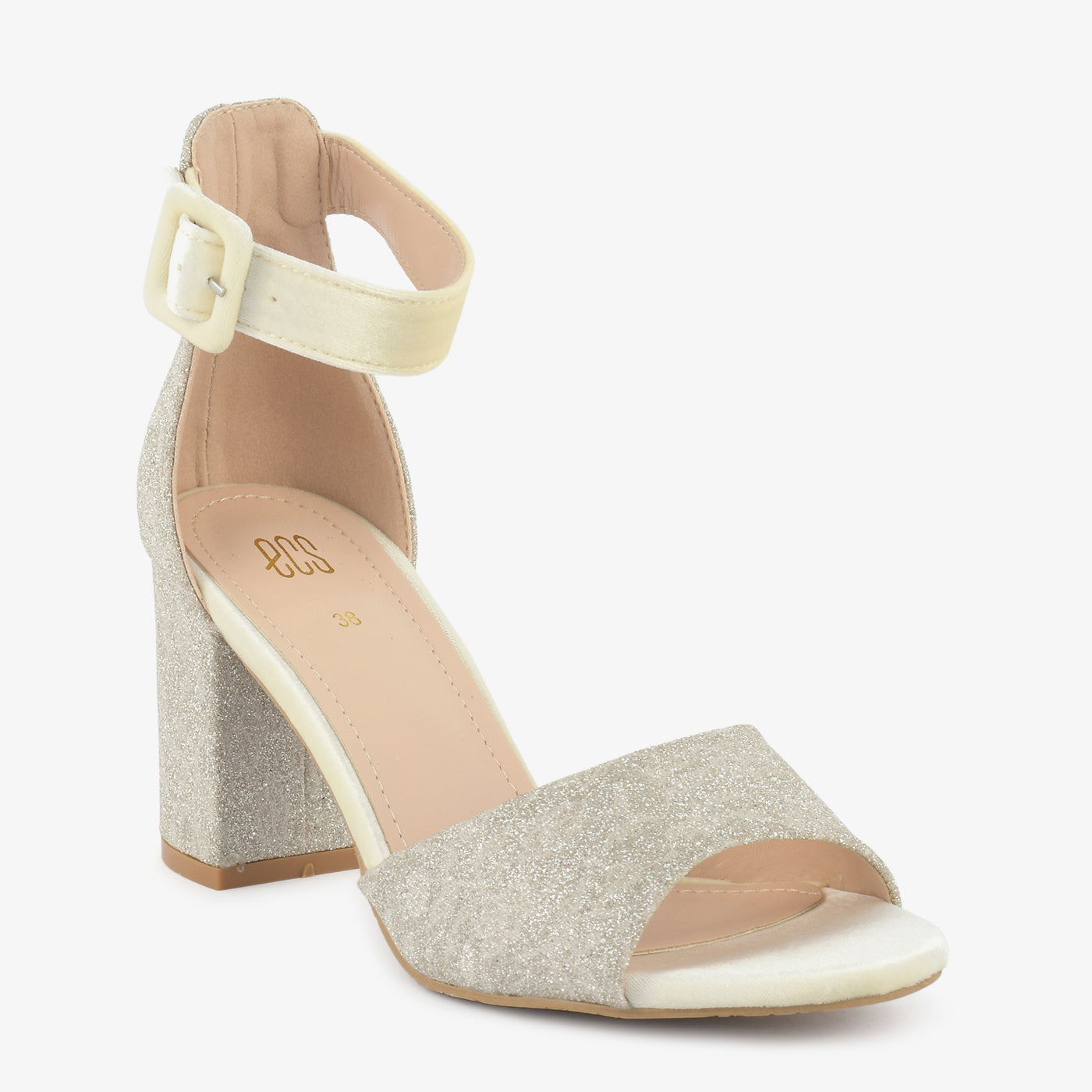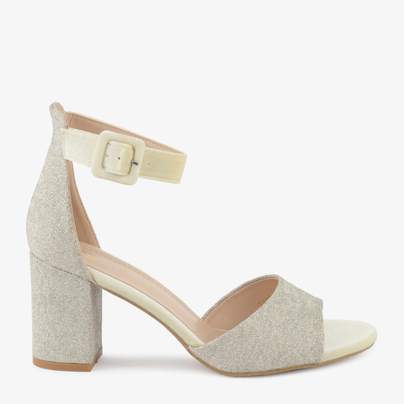 Step into dazzling elegance with the Shimmering Heels. These stylish heeled sandals feature a wide strap and block heel, both adorned with shimmering embellishments. The ankle strap with a buckle closure ensures a comfortable and secure fit for various occasions.